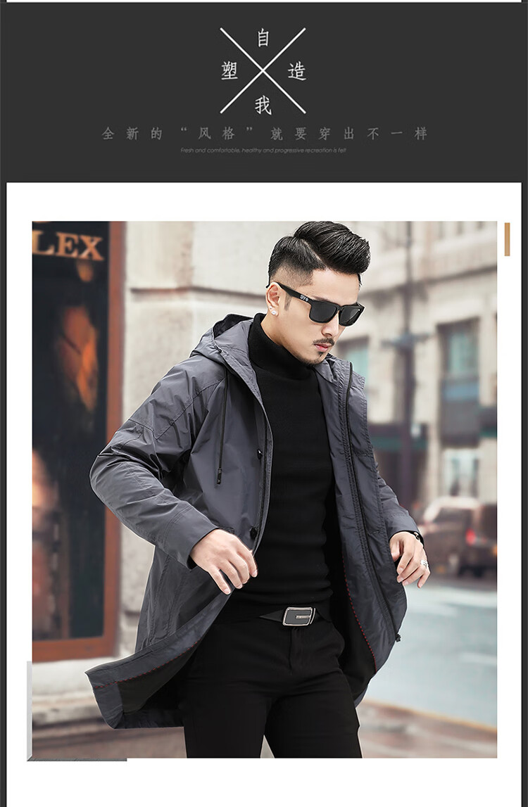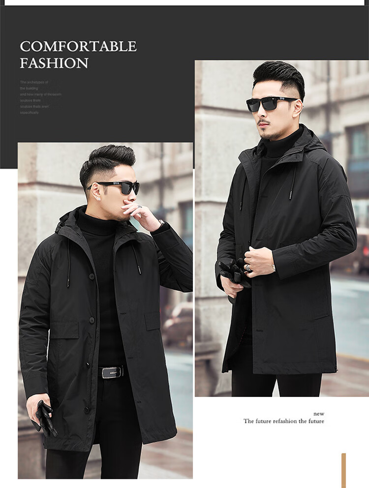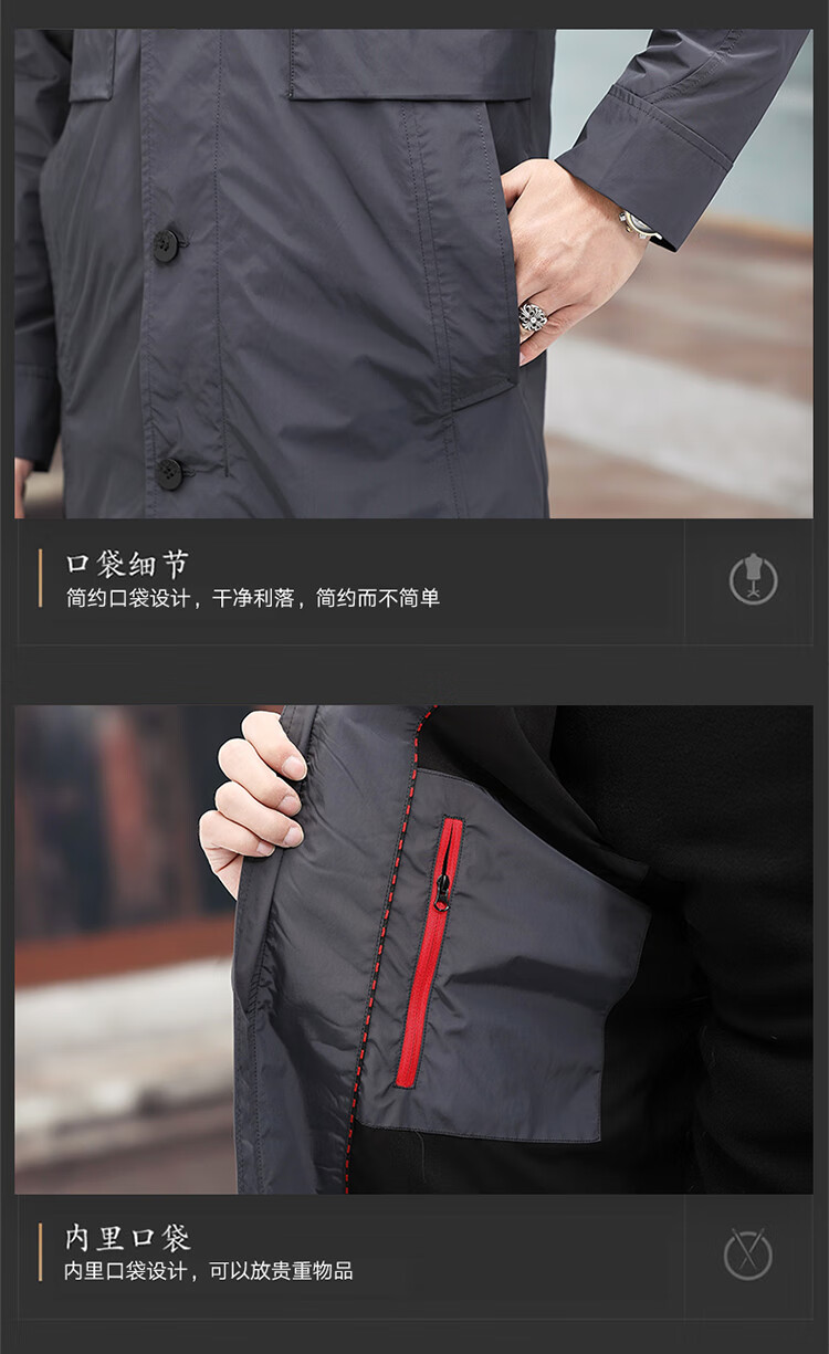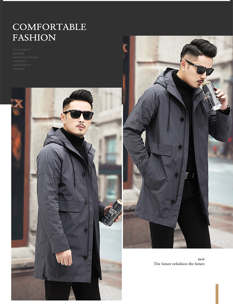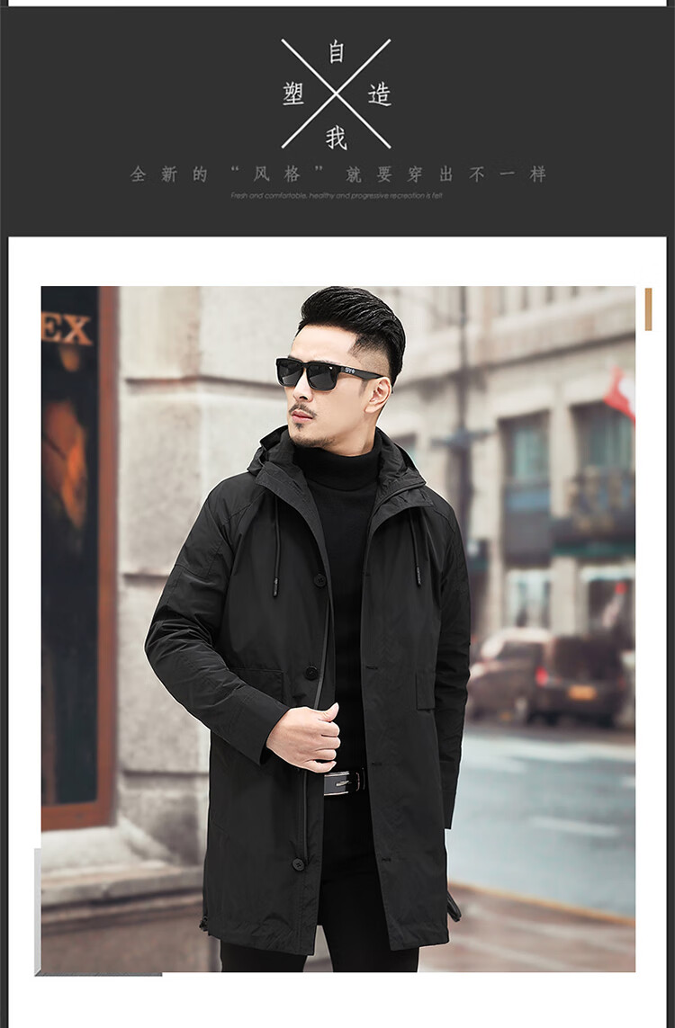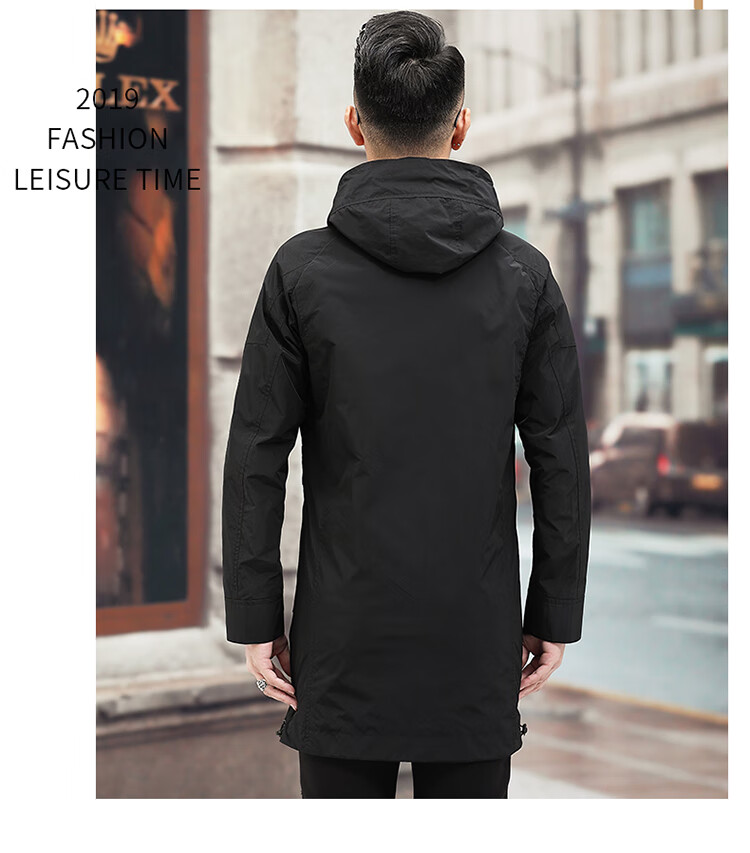 Luo Meng high-end windbreaker men's spring and autumn thickened warm business casual mid-length thickened down hooded winter coat FY192213 gray 175/L
