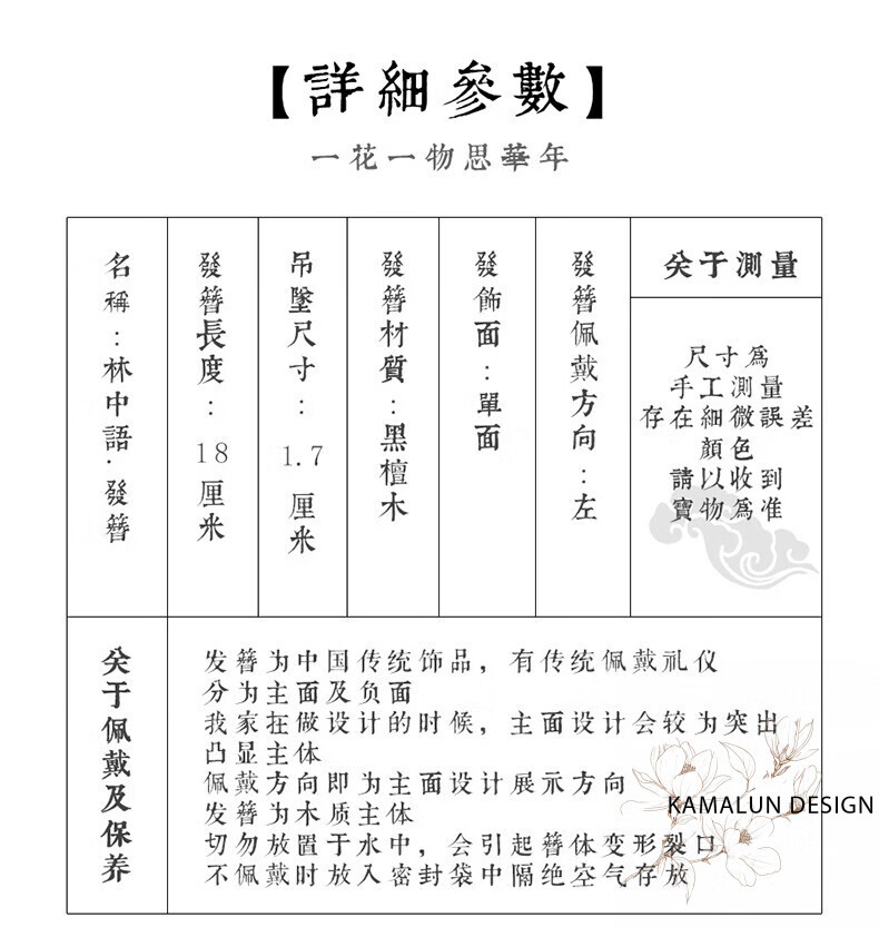 Kamalun (KAMALUN) Ebony Wood Hairpin Ancient Style Step Wooden Hairpin Hanfu Hairpin Artifact Hairpin Headgear for Girlfriend’s Birthday Gift Lin Zhongyu Hairpin + Brand Gift Box
