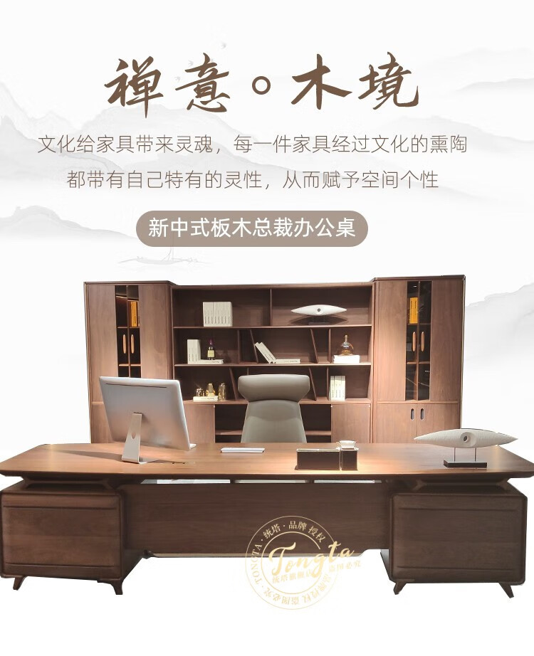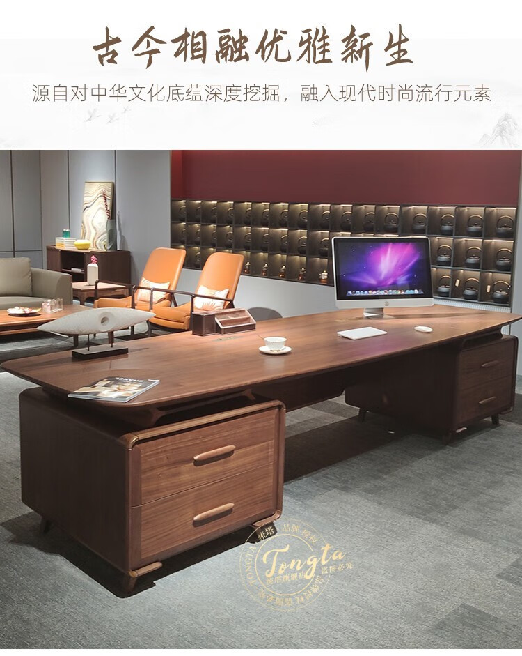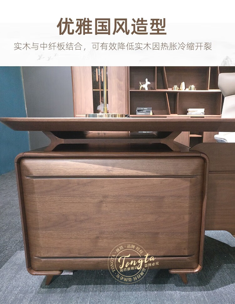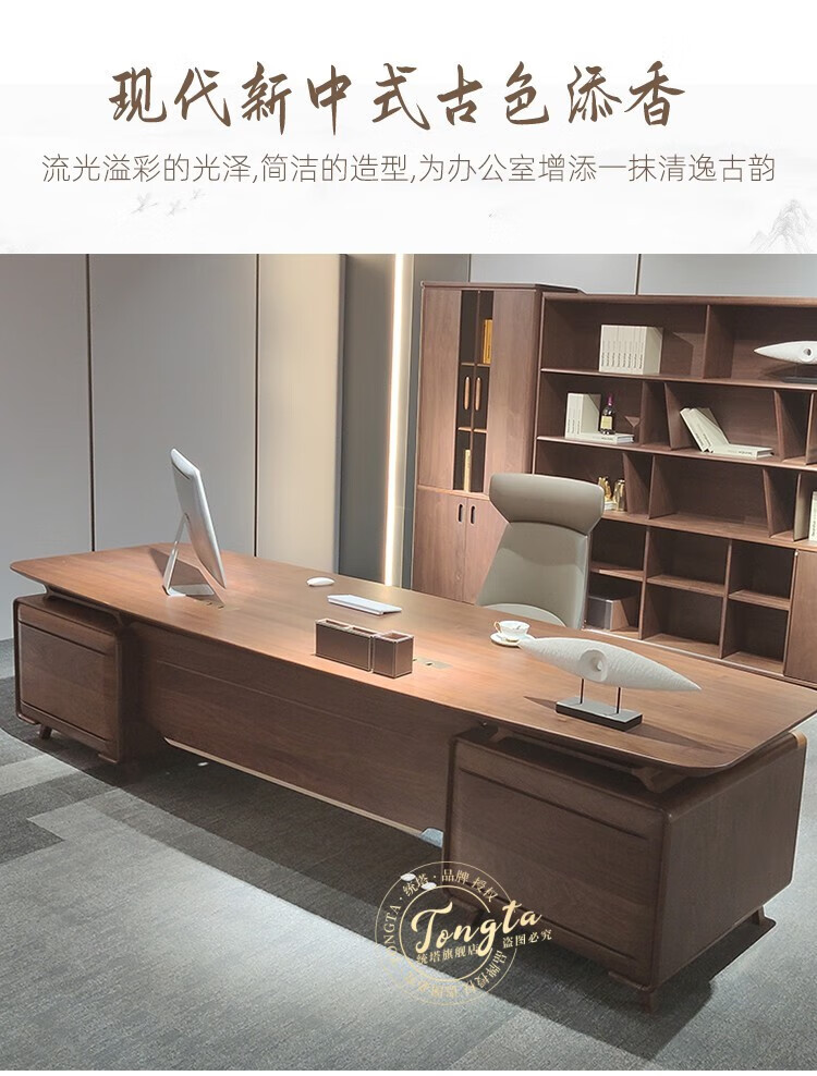 TONGTA light luxury simple modern new Chinese style solid wood boss desk high-end president leader manager desk office desk and chair 2.4m boss table