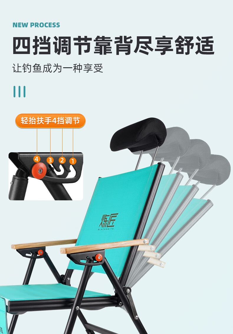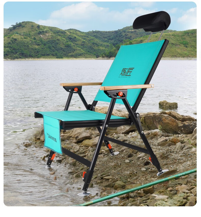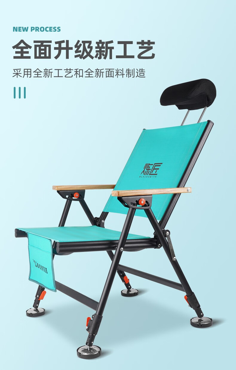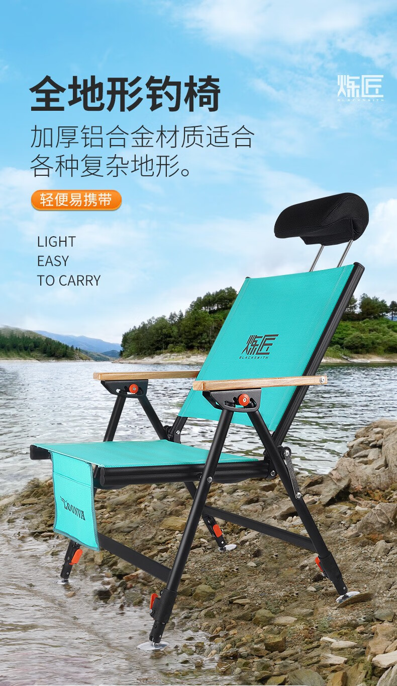 Dragon King Hen multifunctional aluminum alloy four-leg lift all-terrain fishing chair ultra-light folding reclining European style fishing chair outdoor lounge chair fishing chair + chair bag + three-piece set + headrest