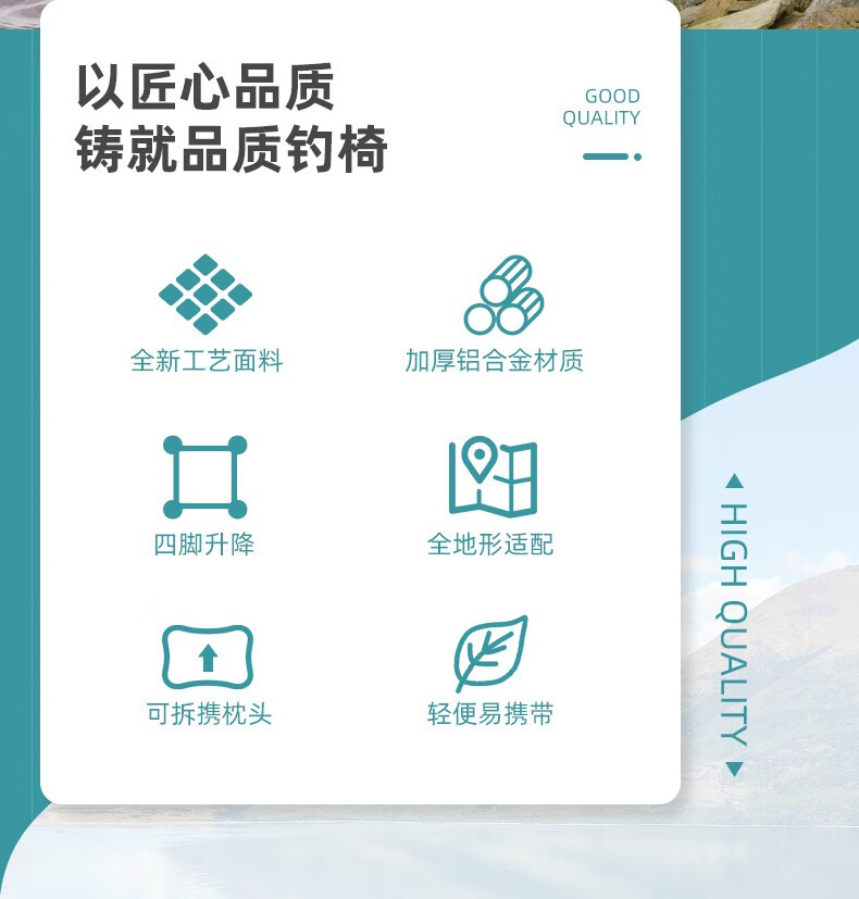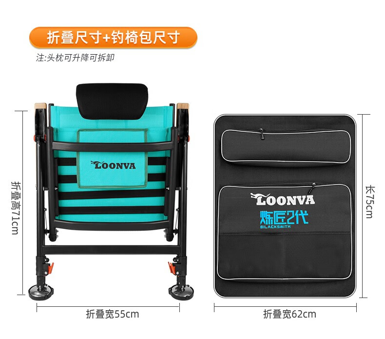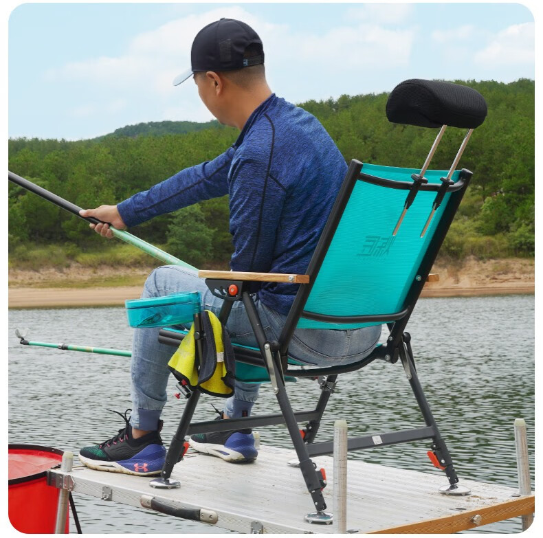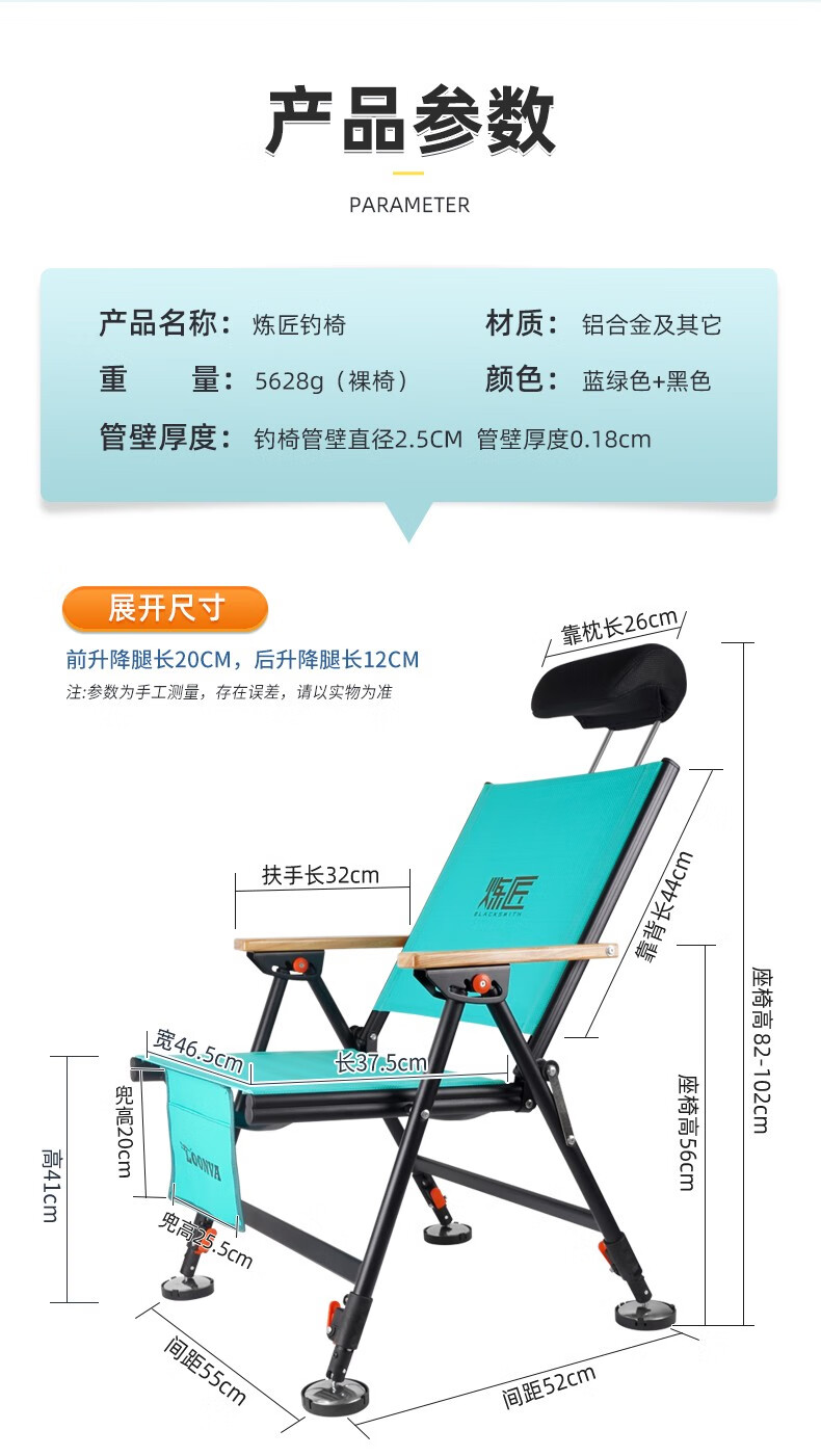 Dragon King Hen multifunctional aluminum alloy four-leg lift all-terrain fishing chair ultra-light folding reclining European style fishing chair outdoor lounge chair fishing chair + chair bag + three-piece set + headrest