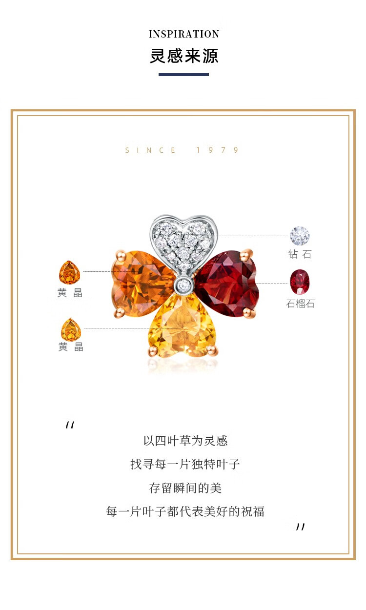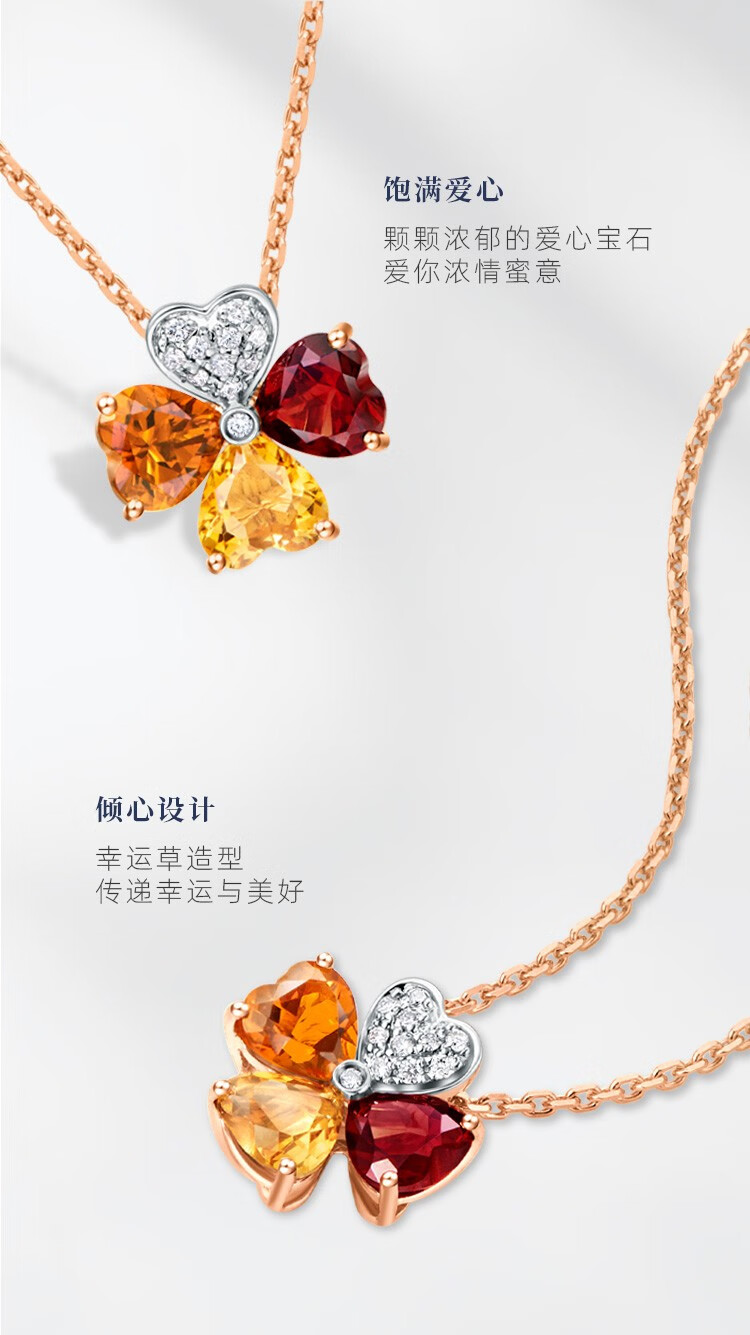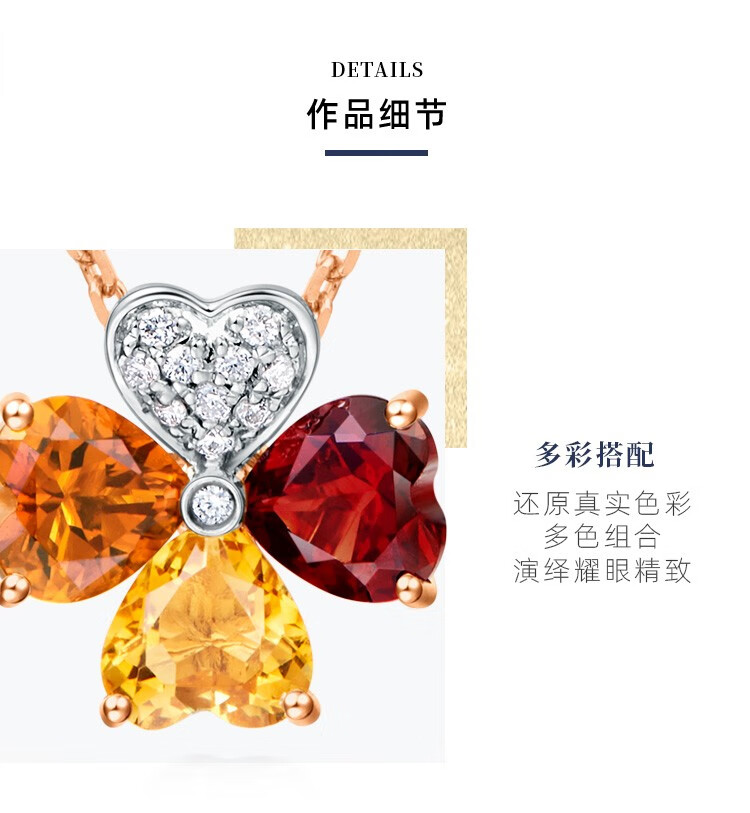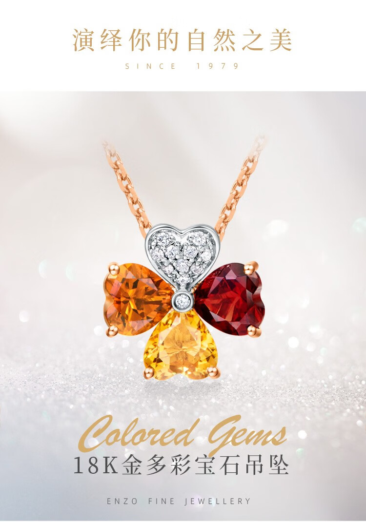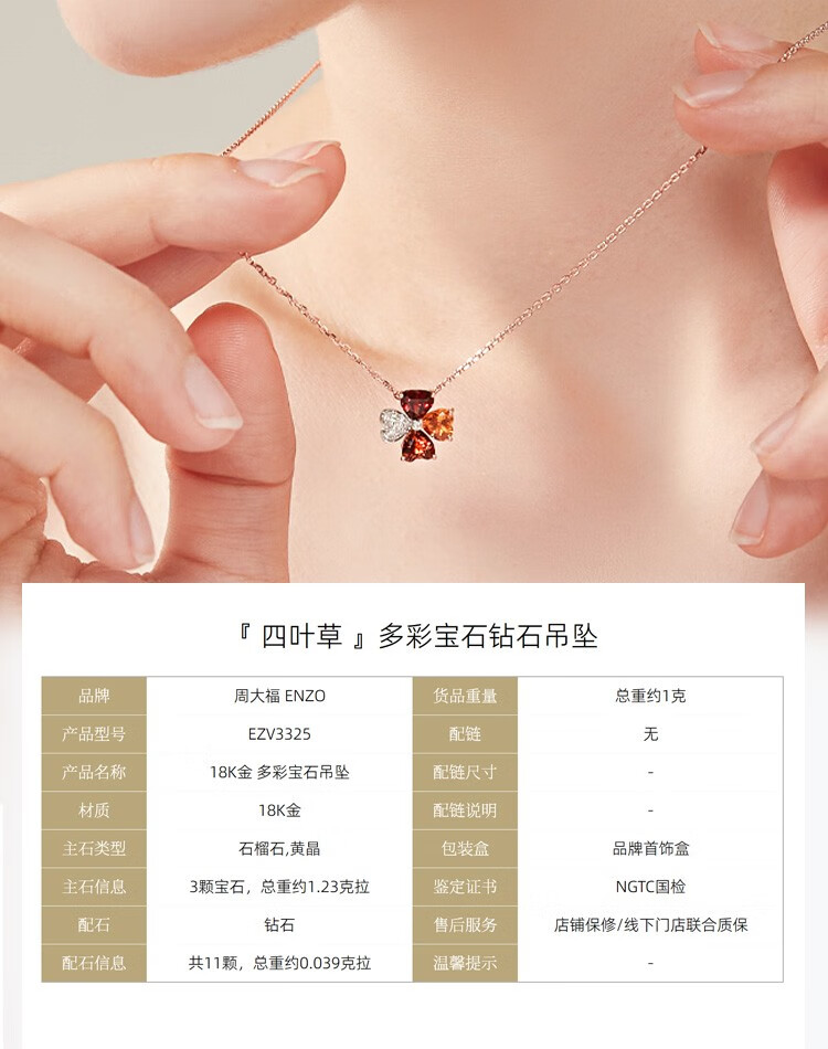 ENZO 18K gold topaz garnet diamond four-leaf clover pendant for women silver chain EZV3325 birthday gift 18K gold colorful gemstone pendant