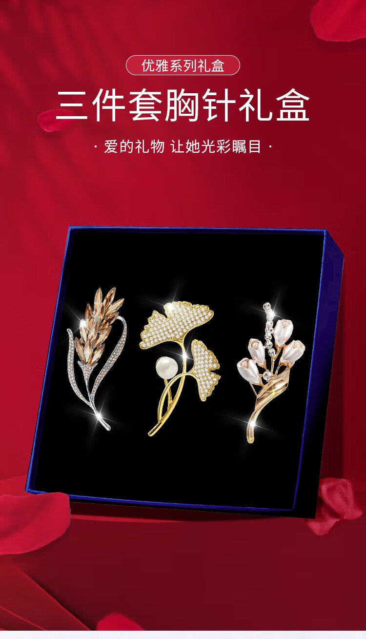 Dawn color brooch, high-end women's light and luxurious birthday gift, practical wheat ear flower corsage set, suit lapel pin gift, H115 selected brooch three-piece gift box