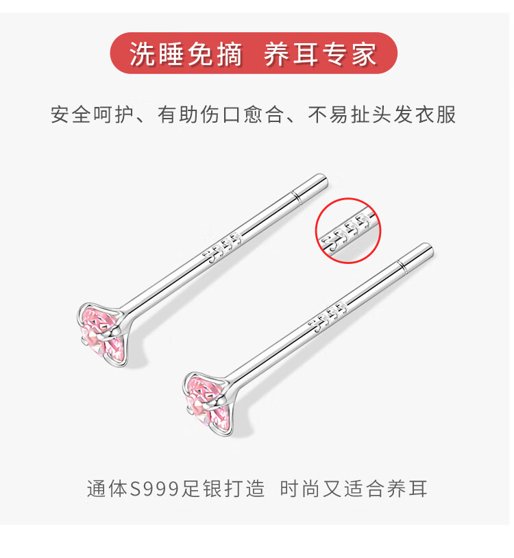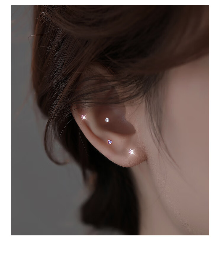 Lnieer999 Pure Silver Earrings Mini Super Flash Small Earrings Women's Ear Piercing Mini Invisible Anti-blocking Needle Ear Bone Nail Tremella Ear Stick Light Purple Super Flash Earrings S999 Pure Silver