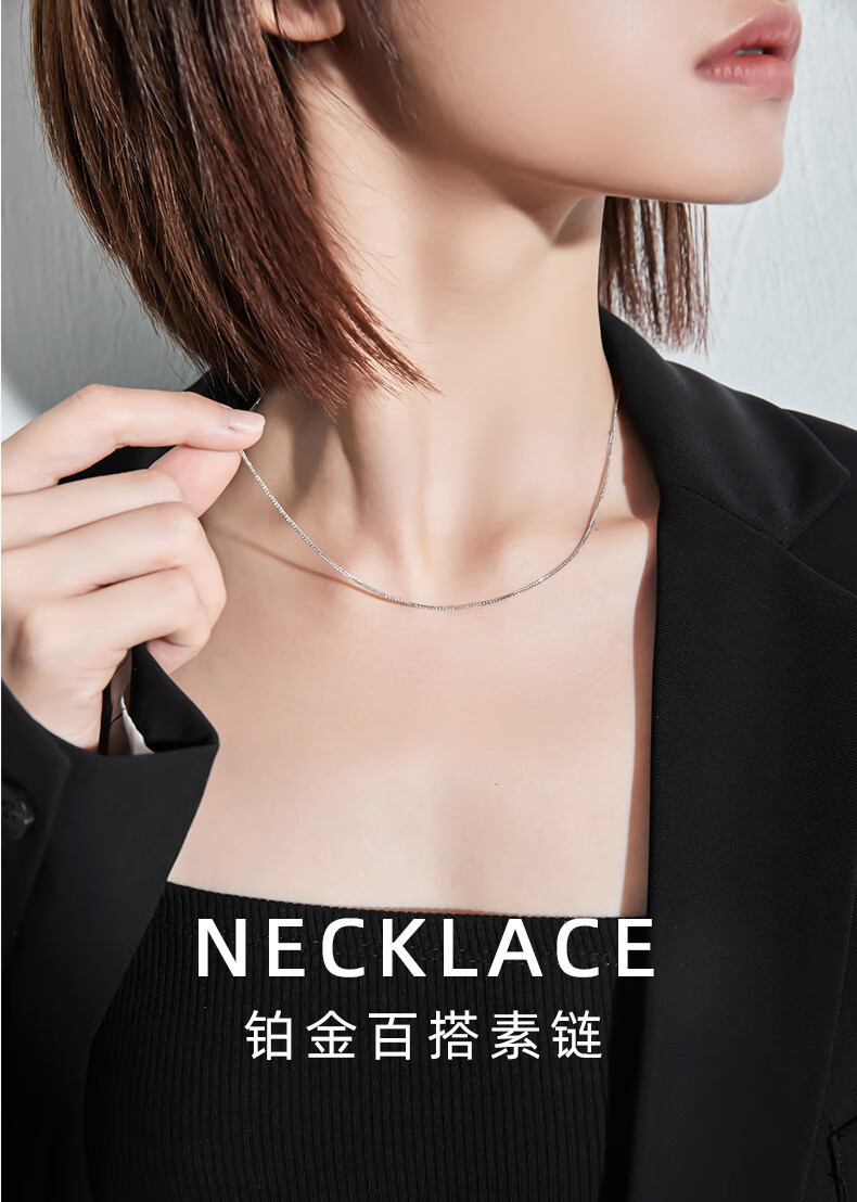 Century Edge Jewelry Platinum Chopard Necklace PT950 Fine Texture Adjustable Versatile Temperament Chain Gift for Girlfriend 2.48g Chain Length 42cm