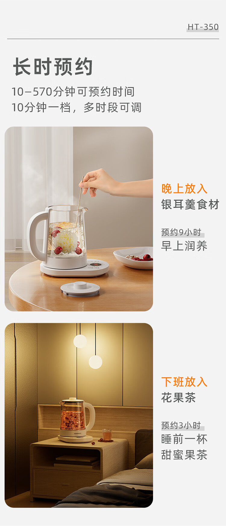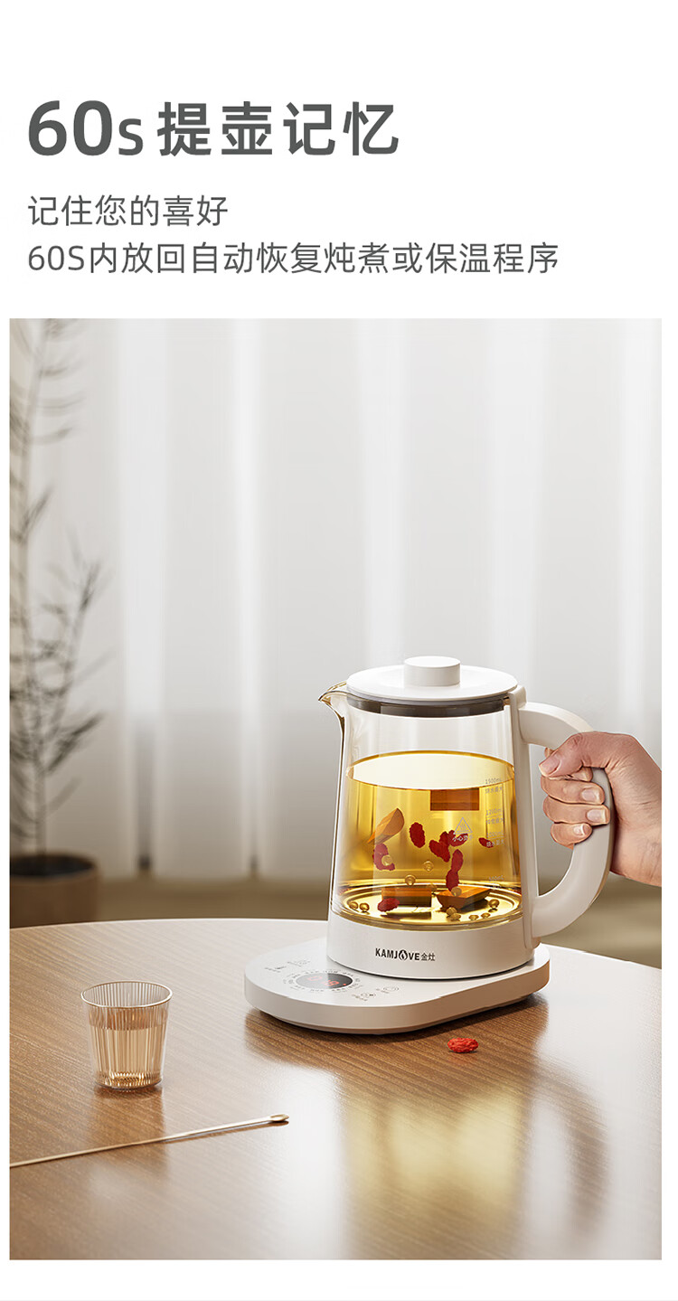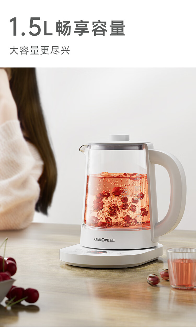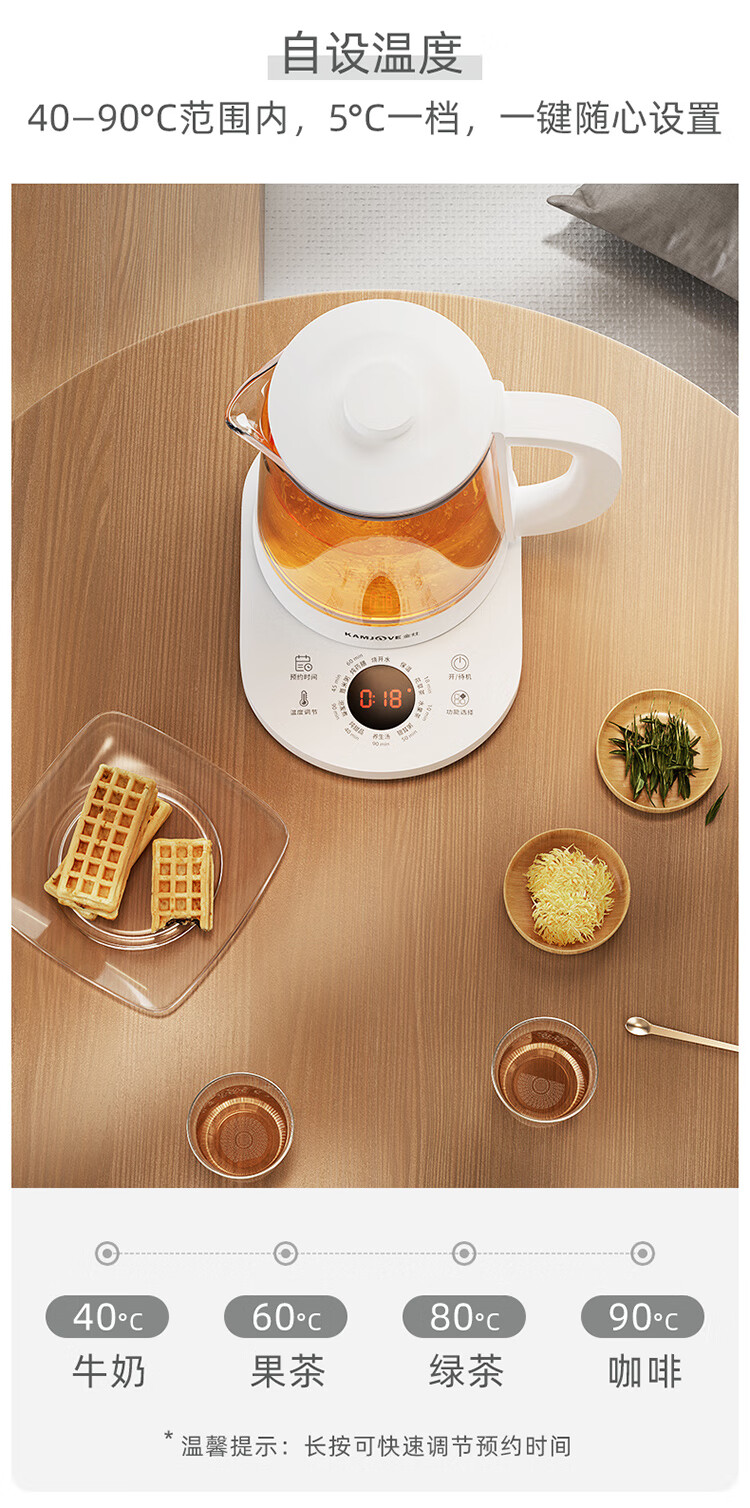 KAMJOVE multifunctional health pot large capacity household smart reservation 1.5L kettle boiling teapot boiling water and heat preservation integrated fully automatic constant temperature kettle flower teapot HT-350 small white pot 1.5L