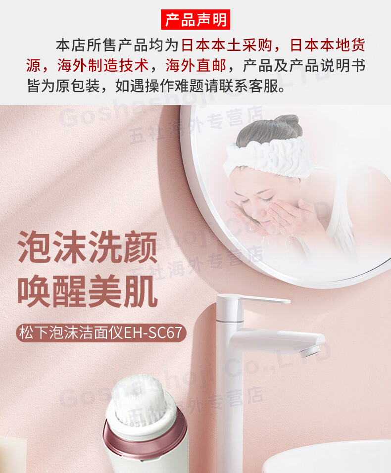 Panasonic Japan Direct Mail Facial Beauty Cleansing Device Multifunctional Cleansing Device for Cleaning Pores and Grease Facial Care Home and Travel Cleansing Device EH-SC67-P Pink