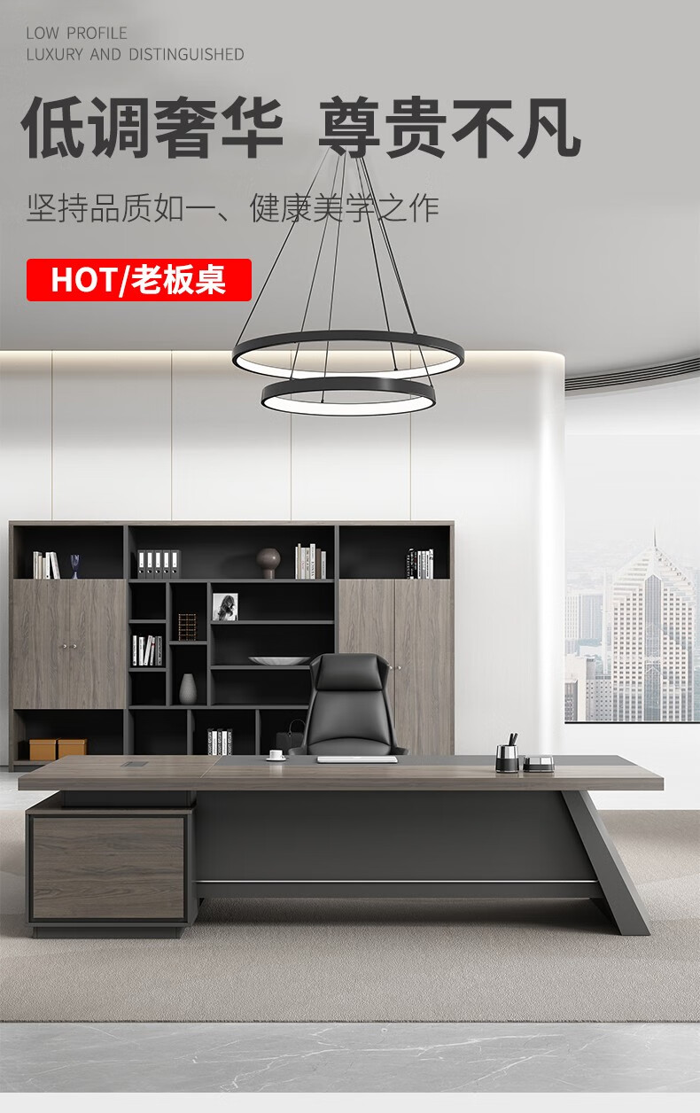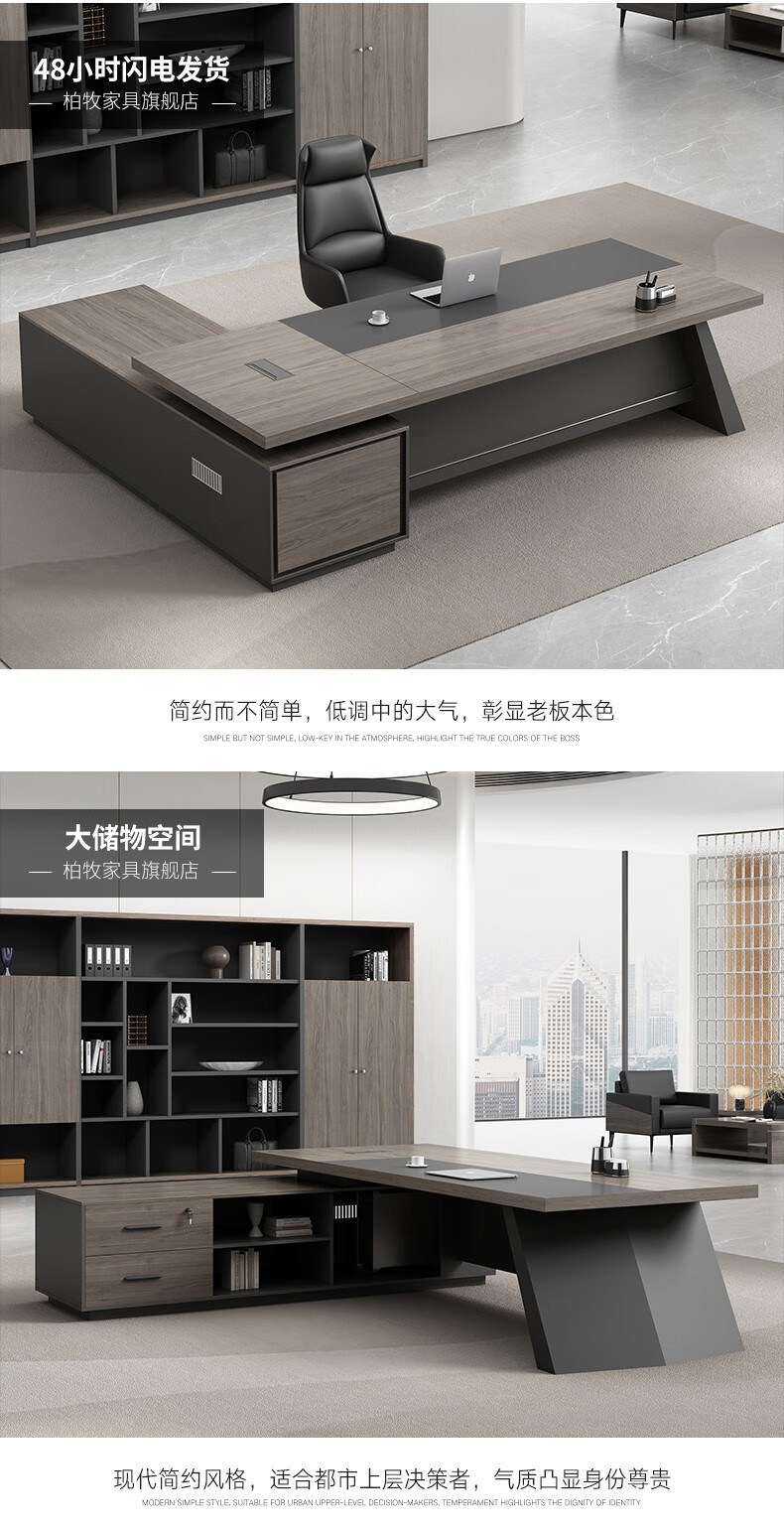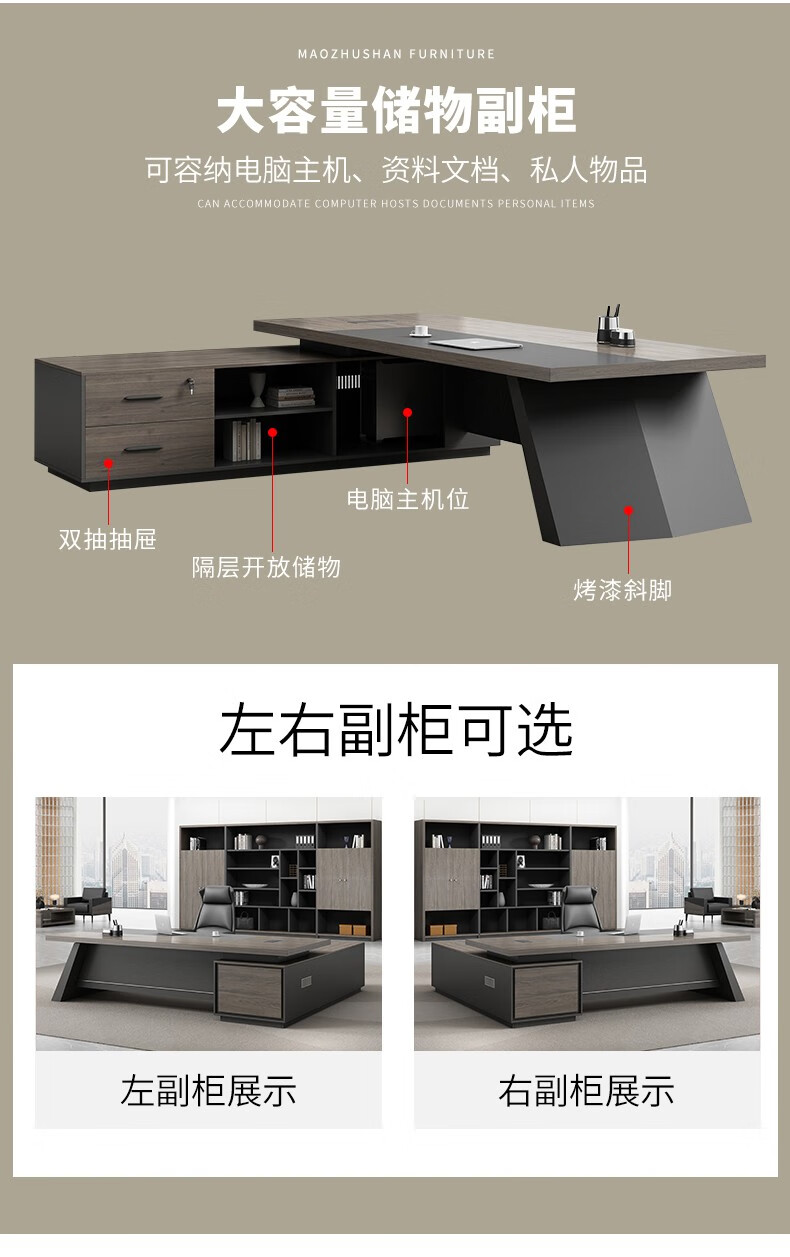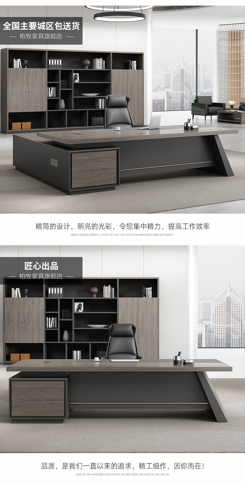 Guiqiu Luxurious and elegant boss desk and chair combination, simple and modern president's office, general manager single executive desk, chairman's office furniture 1.8m boss desk + side cabinet