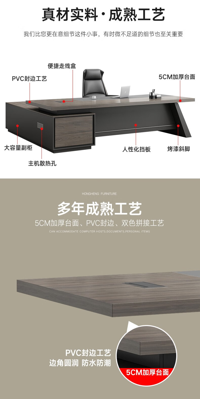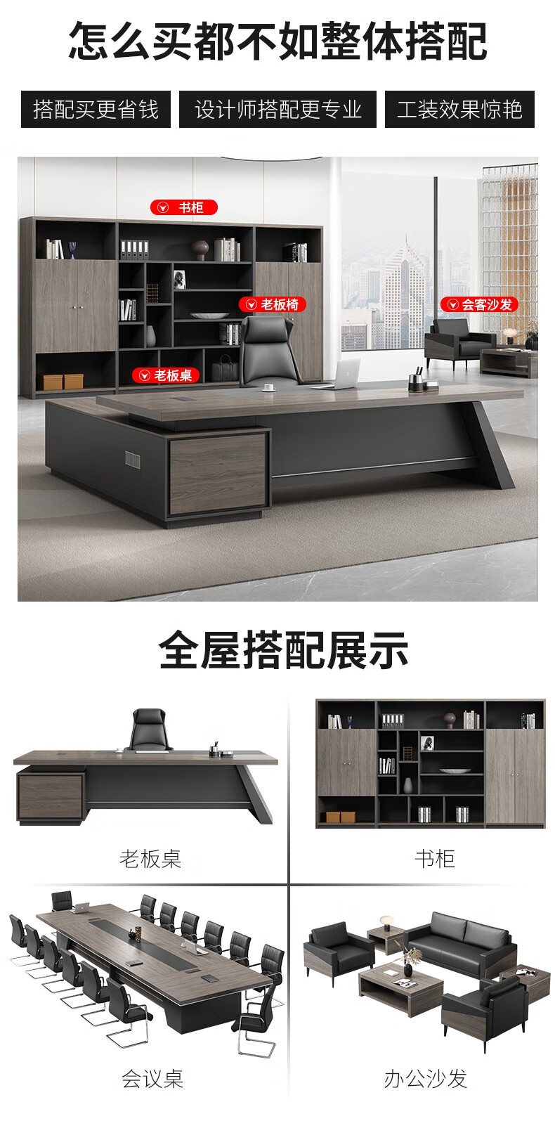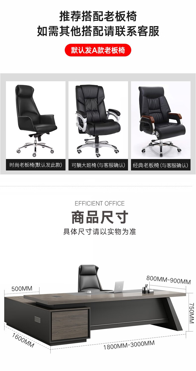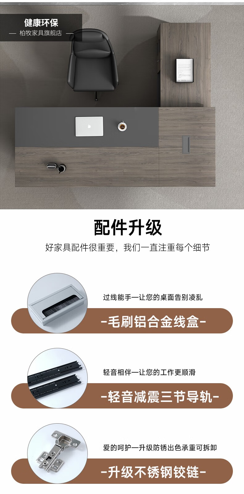 Guiqiu Luxurious and elegant boss desk and chair combination, simple and modern president's office, general manager single executive desk, chairman's office furniture 1.8m boss desk + side cabinet