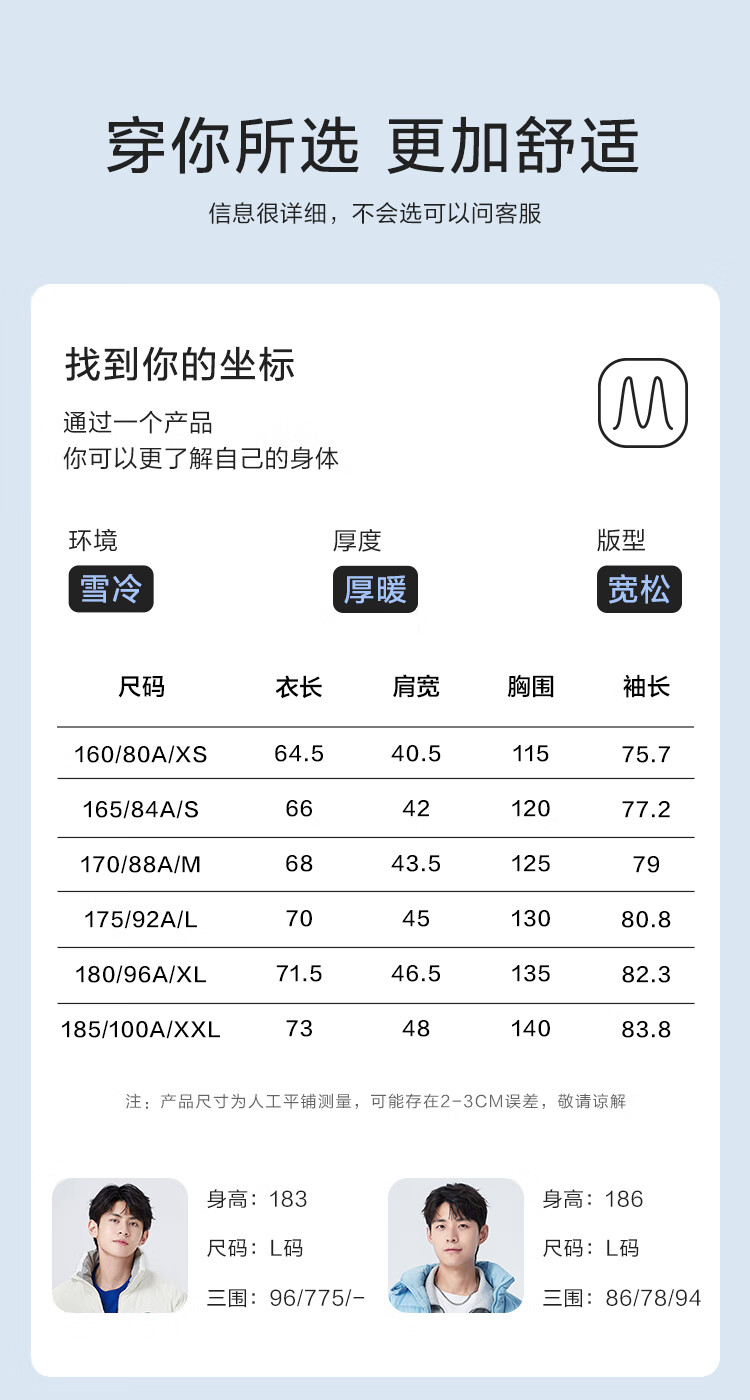 China (cm) 165 / 88-90 170 / 96-98 175 / 108-110 180 / 118-122 185 / 126-130