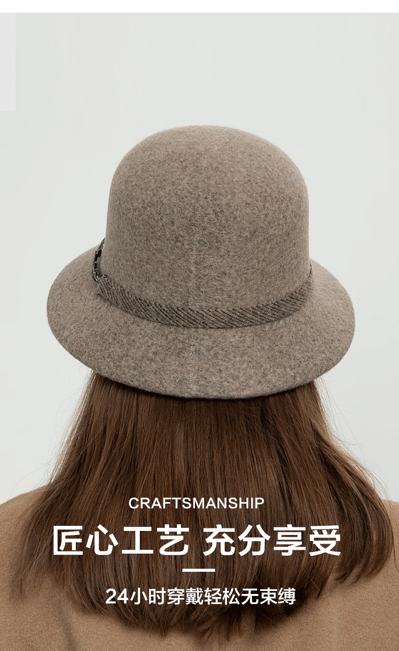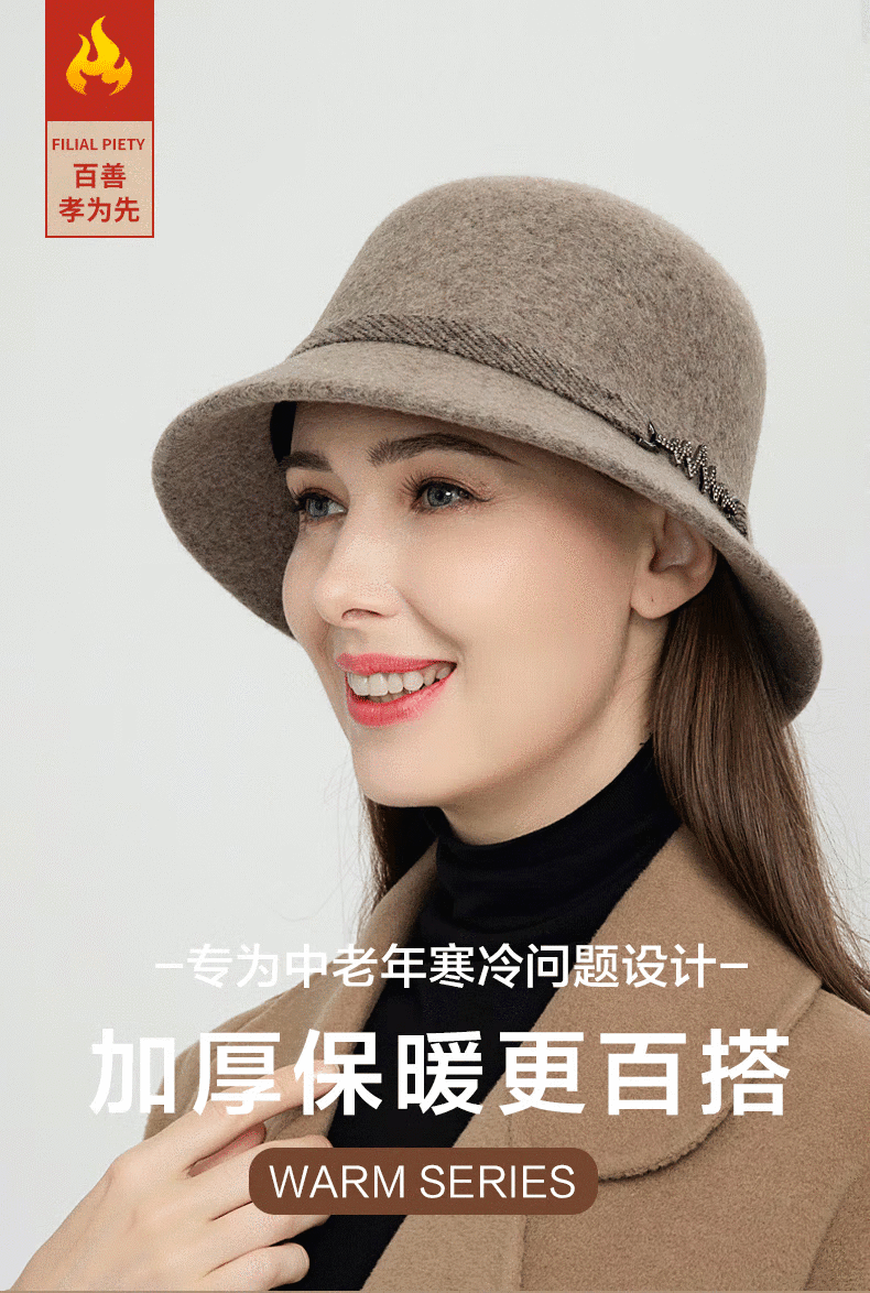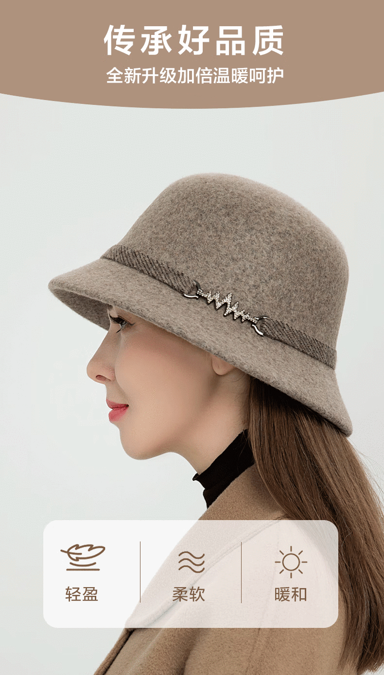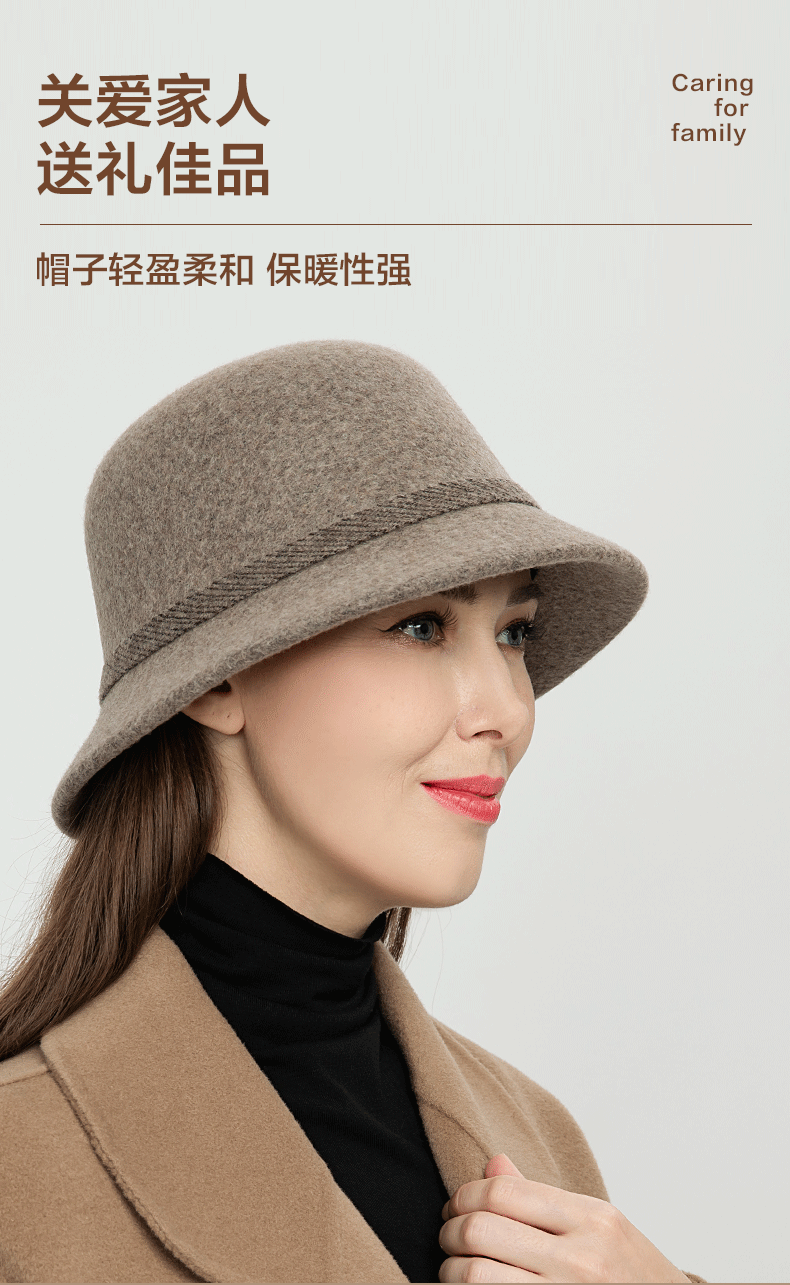 SOMUBAY Mom Hat Women's Autumn and Winter Woolen Basin Hat Winter Warm Fisherman Hat Versatile Elegant Western Style Hat Camel Default