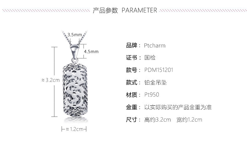 Pt.Charm platinum pendant men's pt950 platinum pendant men's pendant necklace pendant domineering necklace pendant for boyfriend spot 6.2-6.3g national inspection certificate