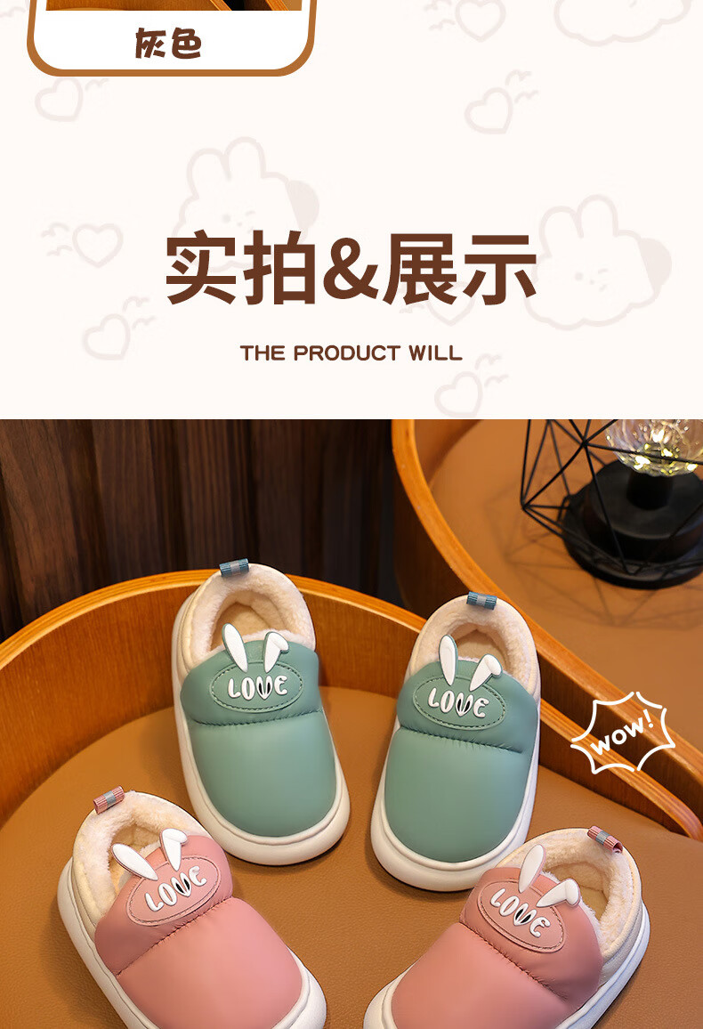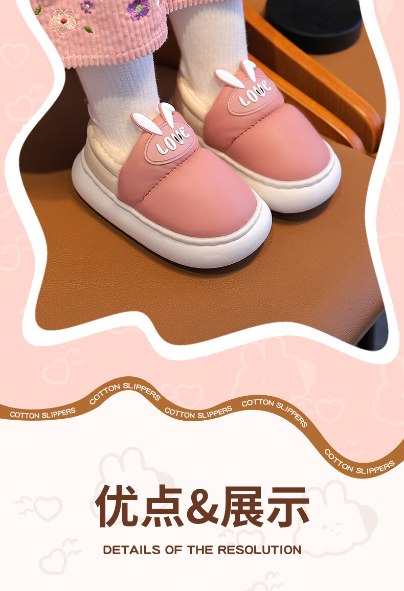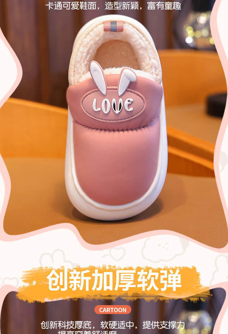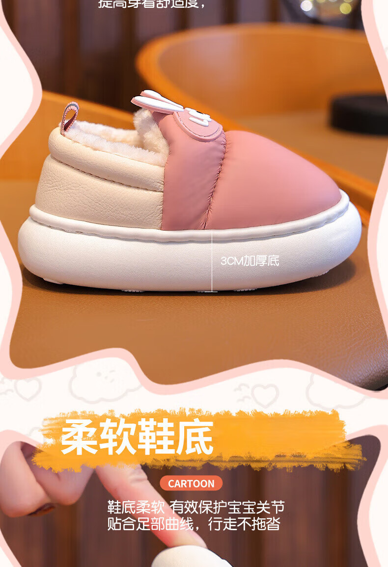 Xin Yueqing children's cotton slippers autumn and winter waterproof non-slip boys' bag heel cotton shoes girls warm home indoor baby slippers pink size 30-31 (inner length 20cm)