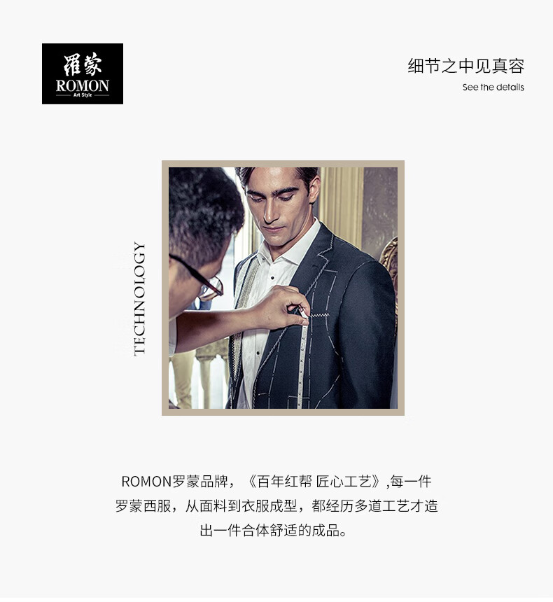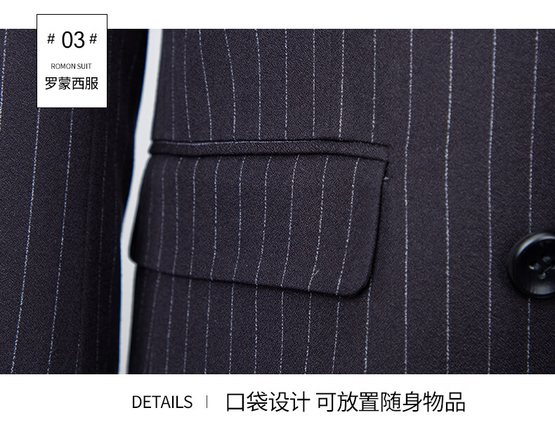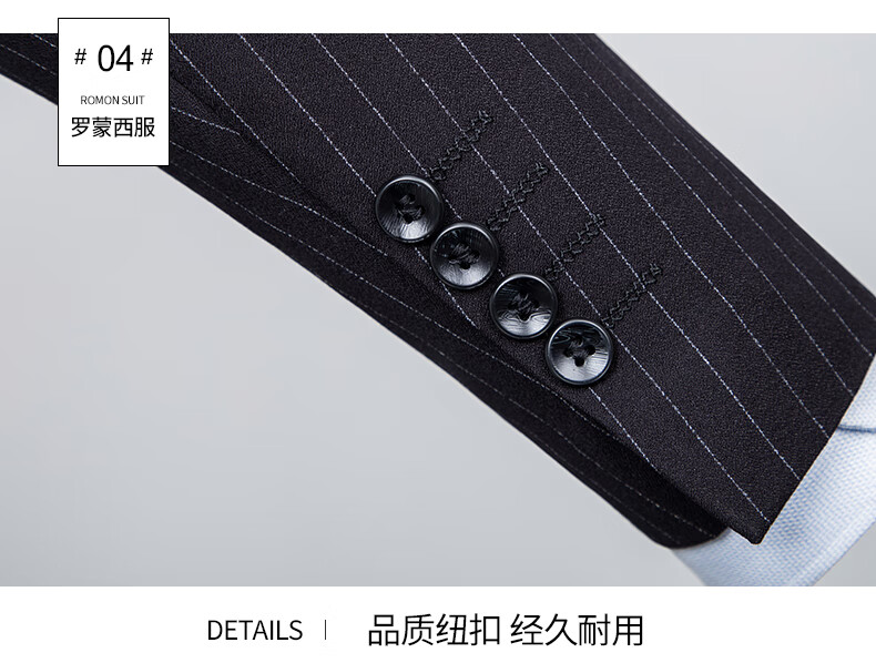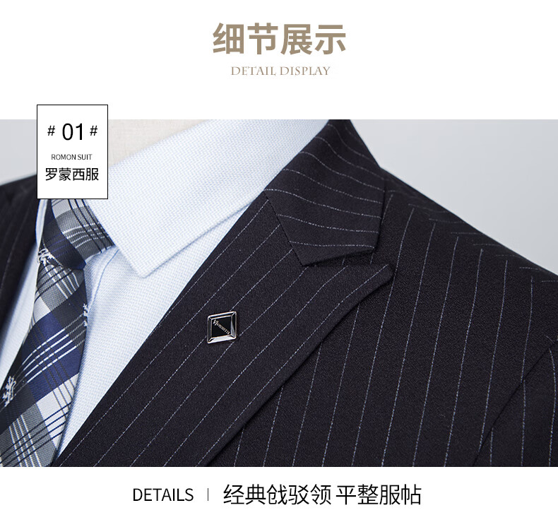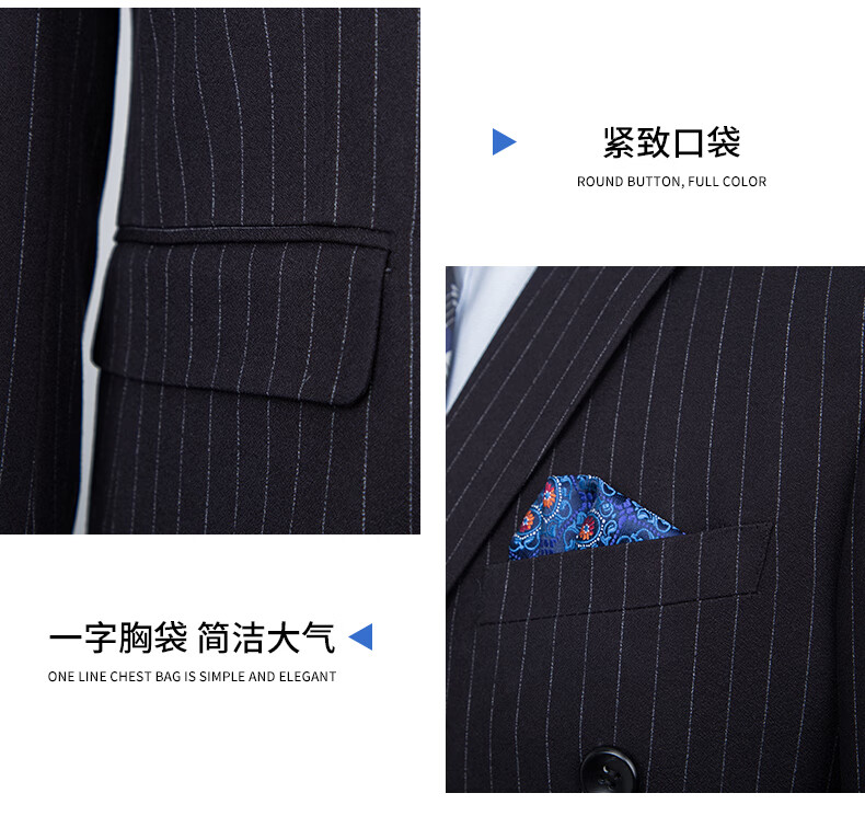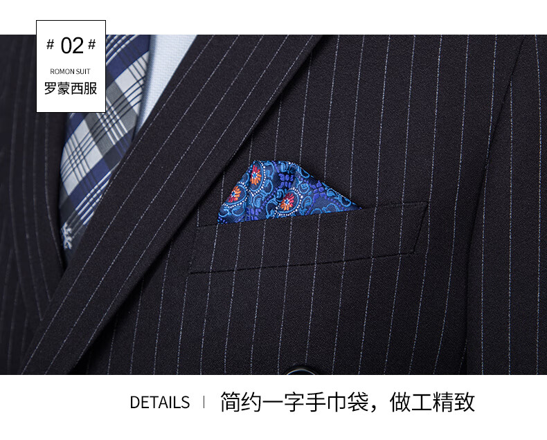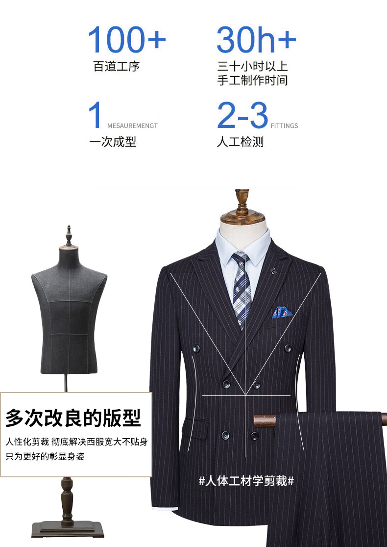 ROMON brand high-end suit suit men's double-breasted striped wedding British slim suit men's groom's wedding dress 1882 navy three-piece suit 180