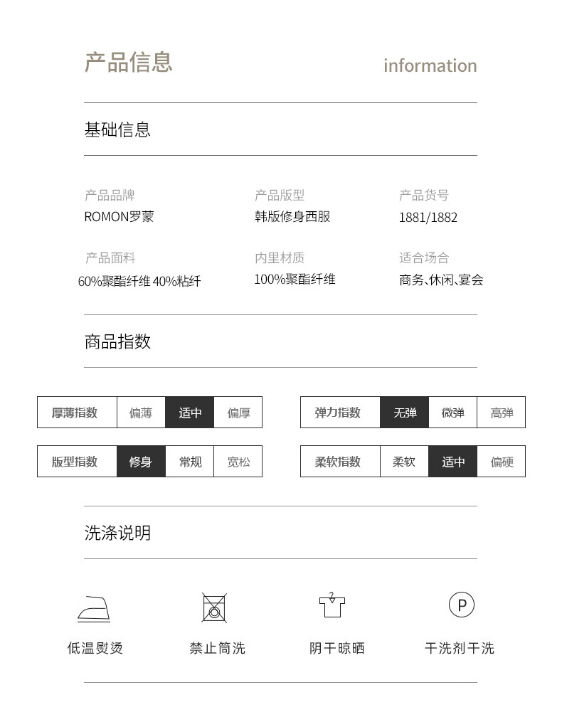 China (cm) 165 / 88-90 170 / 96-98 175 / 108-110 180 / 118-122 185 / 126-130