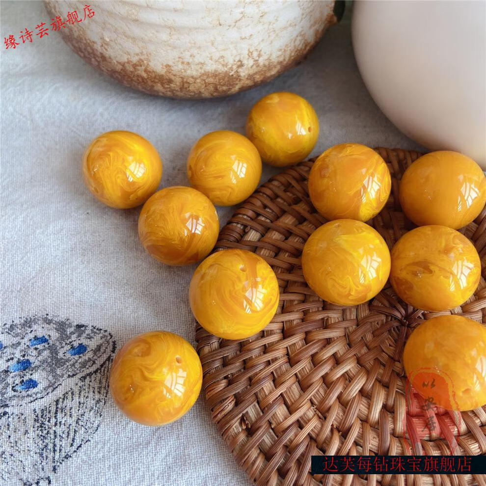 Dahemeng National Day Beeswax Amber Old Beeswax Single Beads Gold Twist Old Wax Single Beads Bracelet Top Beads Loose Beads 20mm Single Beads