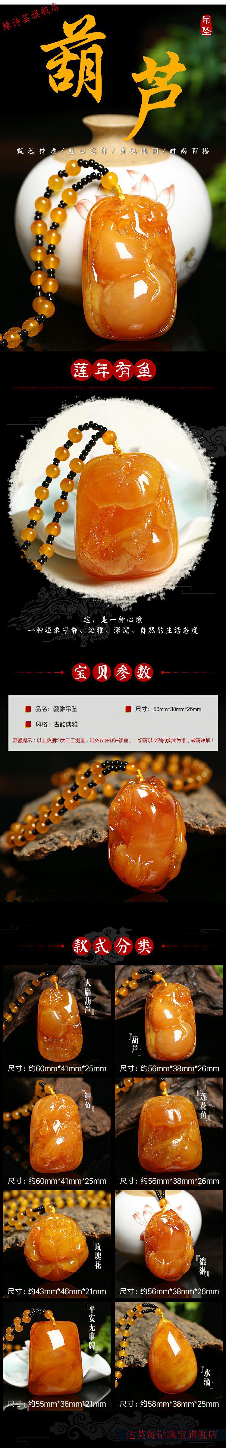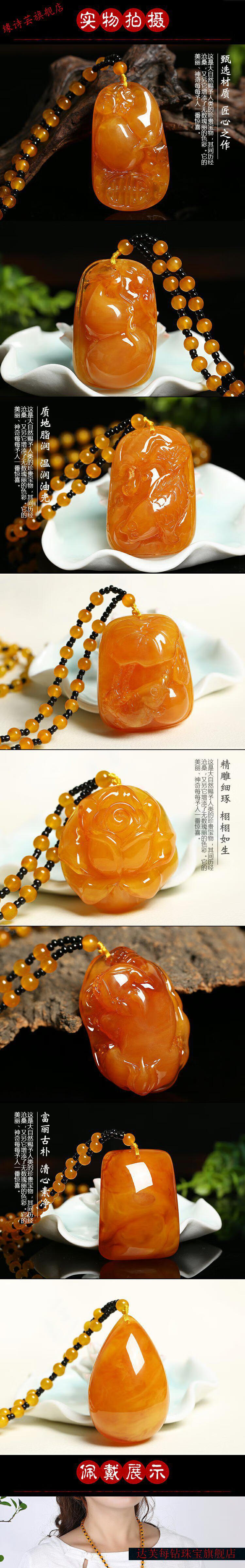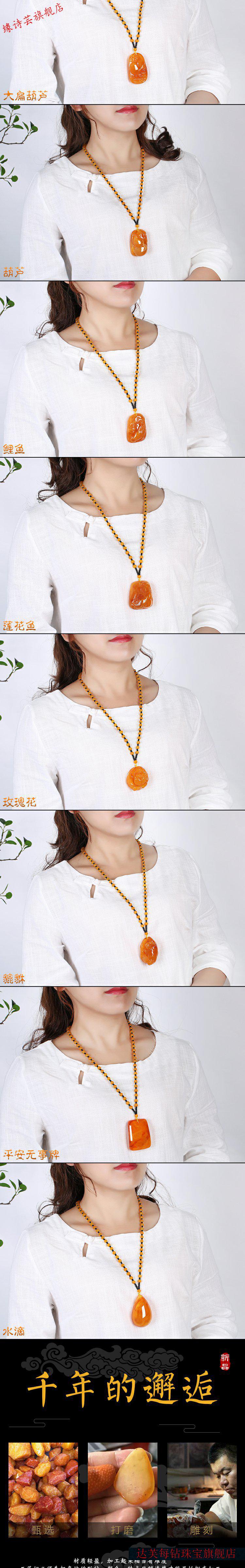 Dahemeng National Day old beeswax pendant sweater chain for men and women chicken fat yellow amber 2nd generation beeswax necklace long ethnic D style/Ruyi gourd (Laomi lanyard style)