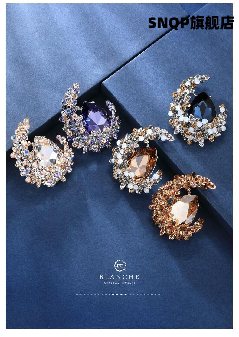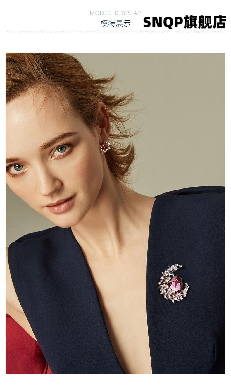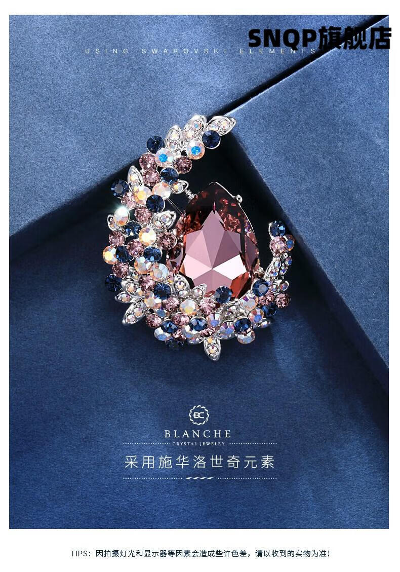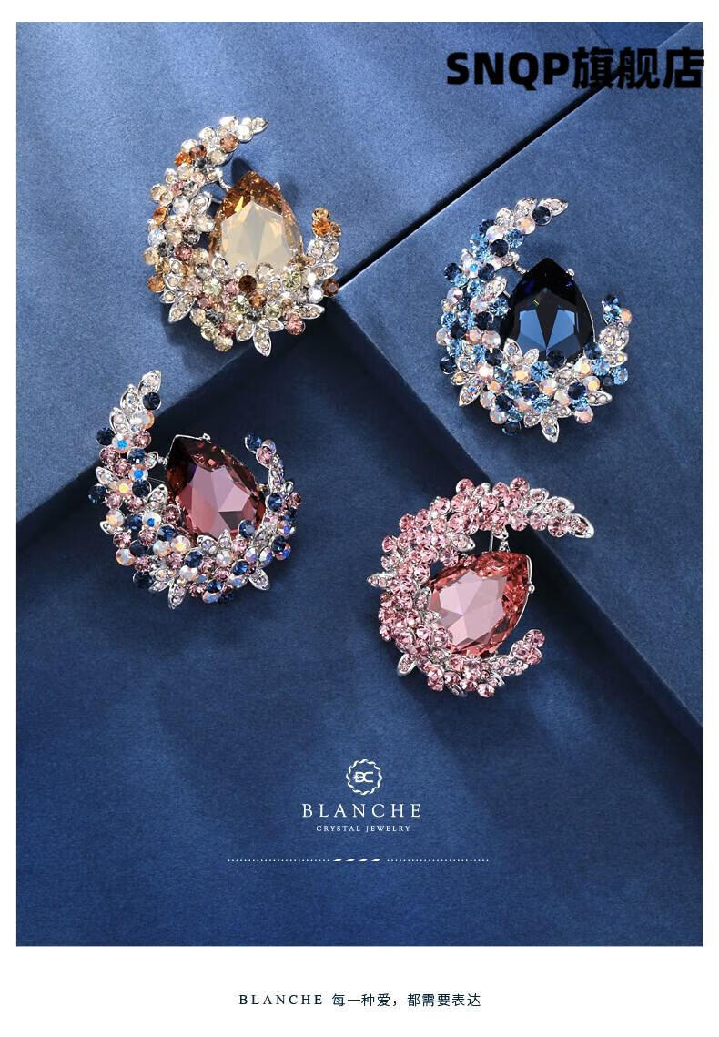 SNQP Swarovski Zirconium Valentine's Day Gift 2025 New Moon Crystal Breast High-End Luxury Brooch Dark Blue
