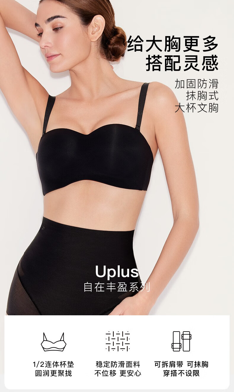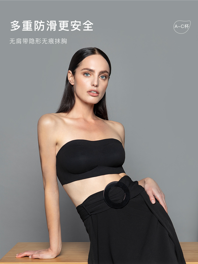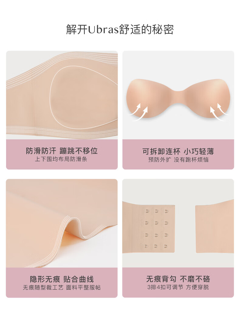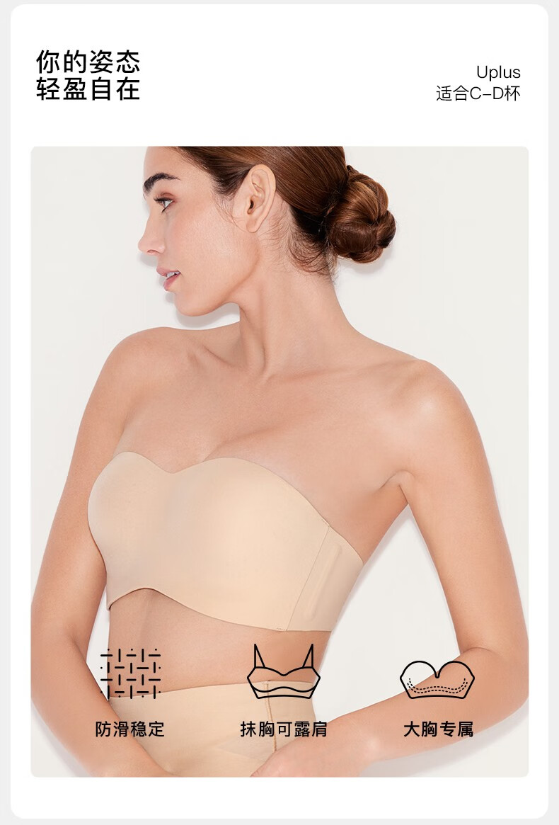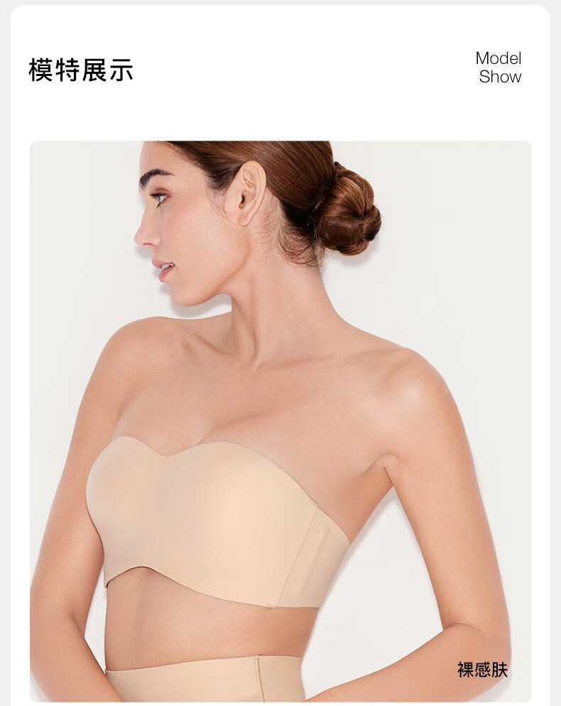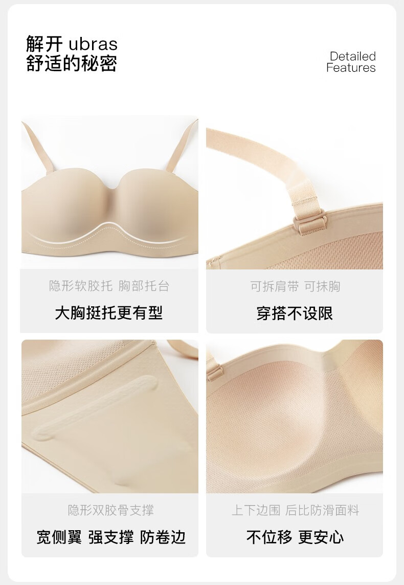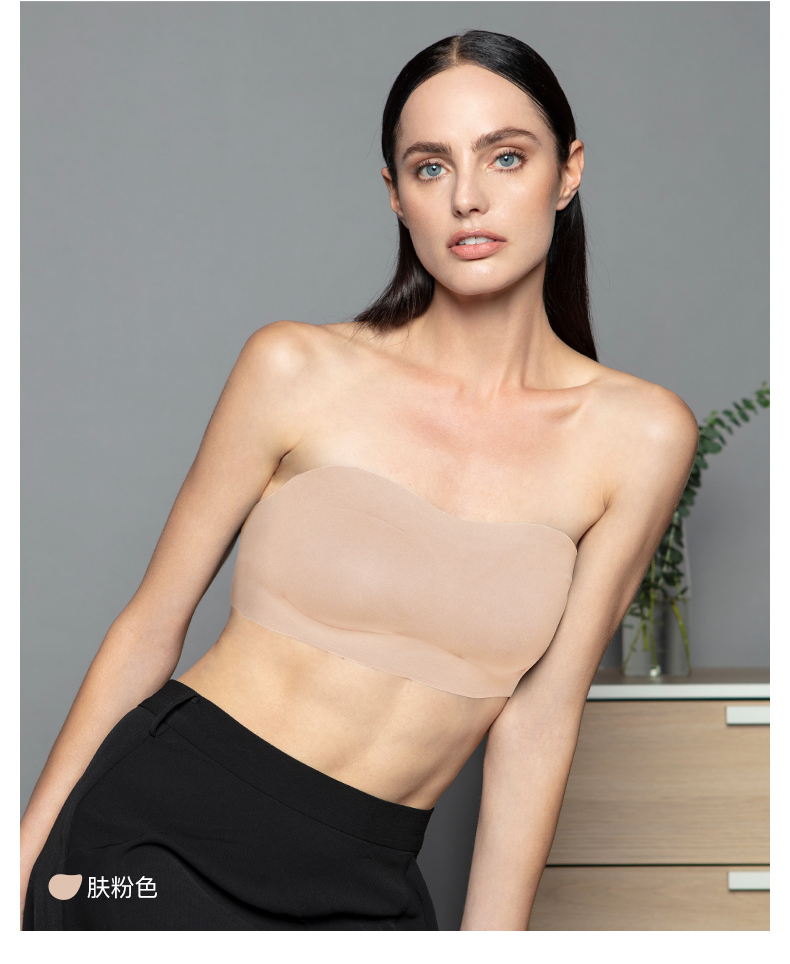 Ubras strapless big breast underwear for women, invisible, seamless tube top, no rims, anti-exposure, thin breasts, non-slip, nude skin tone - fixed cup S
