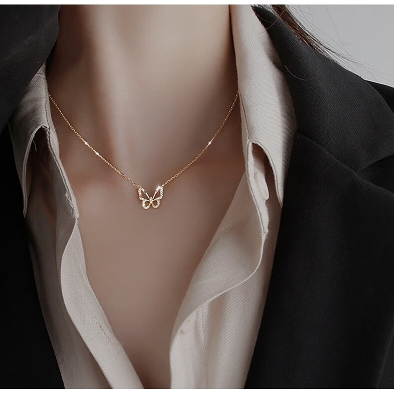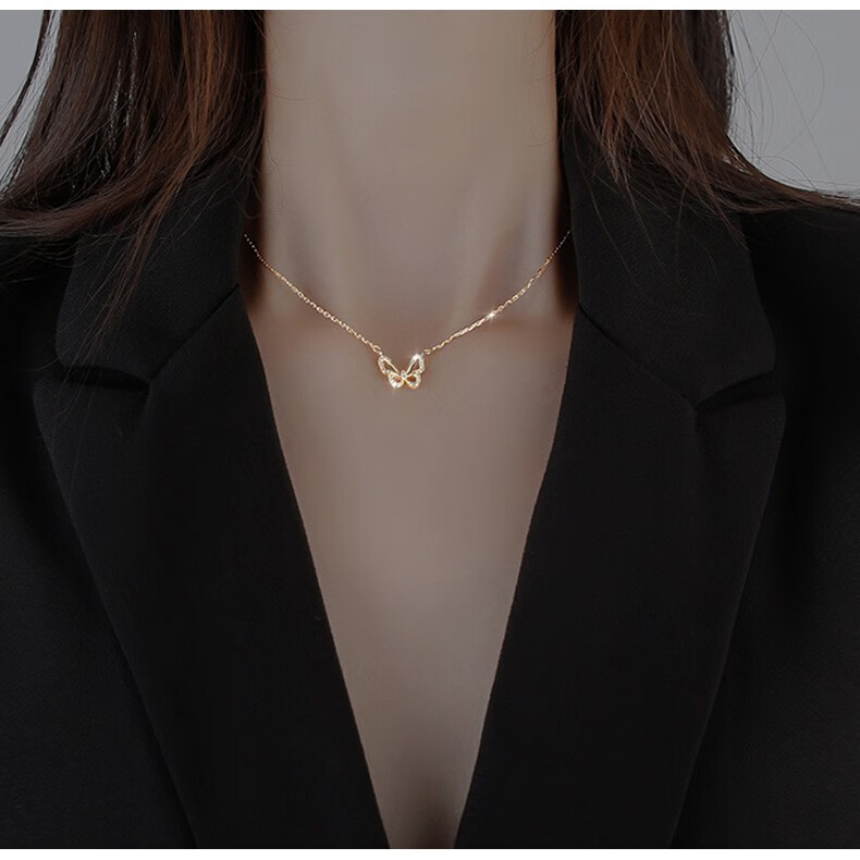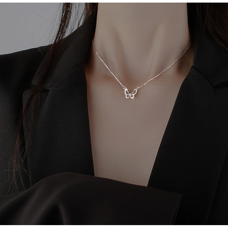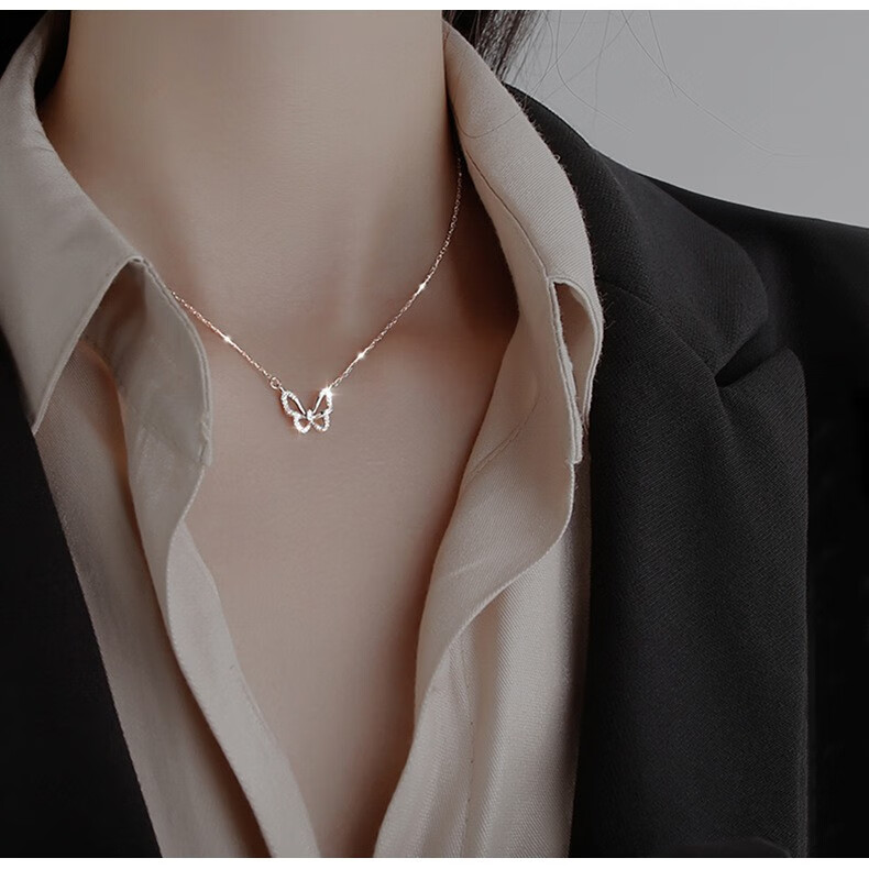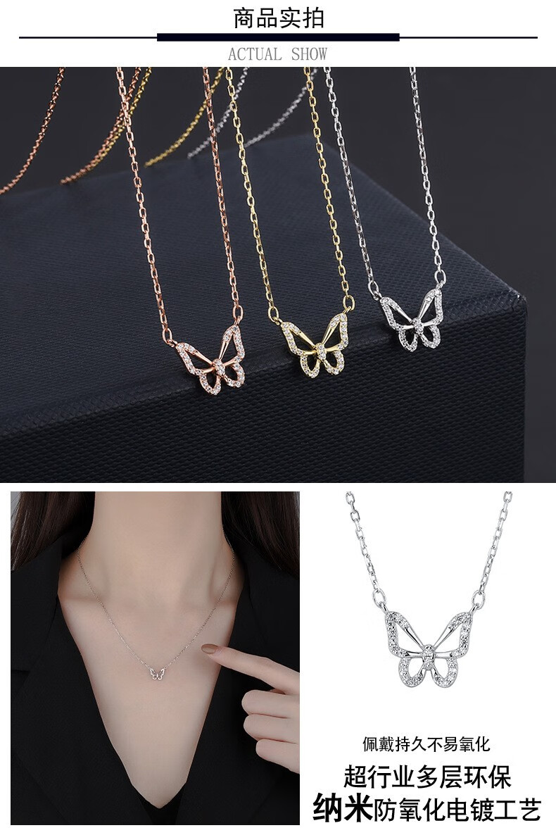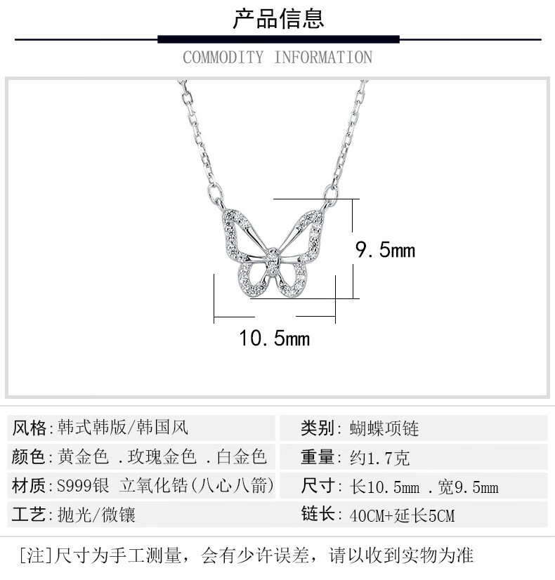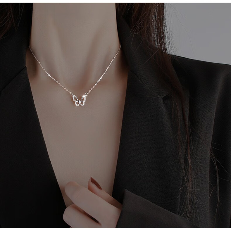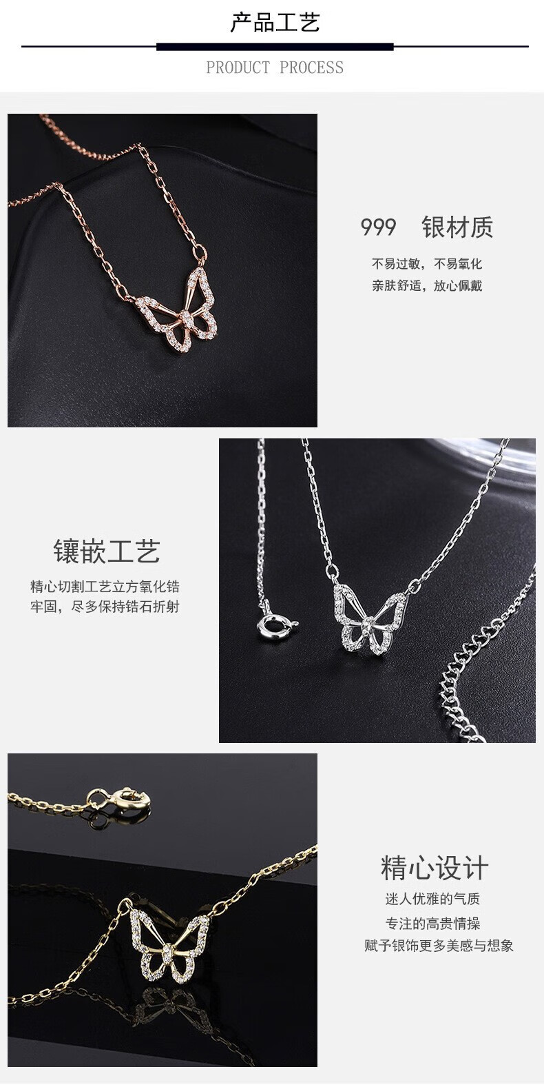 VTLs999 Pure Silver Butterfly Necklace Women's Clavicle Chain Accessories Temperament Clavicle Chain as a New Year's Valentine's Day Gift for Your Girlfriend S999 Pure Silver Necklace + Silver
