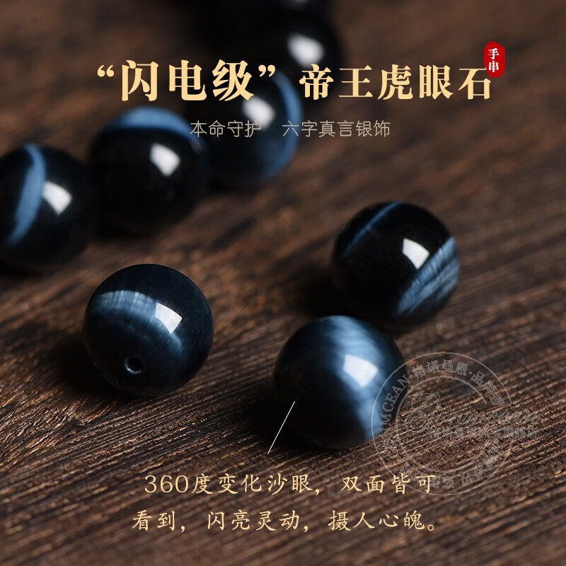 GONMCEAN Blue Tiger Eye Stone Bracelet Men's Zodiac Year Collection Lightning Pattern Zodiac Year Bracelet Gift Zodiac Dog/Pig 14mm Bead Diameter (Men's Model)
