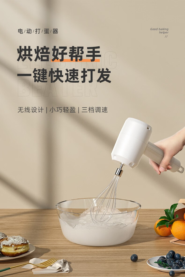 MRF egg beater electric household small egg whipping cream whipper cake machine semi-automatic baking tool stirring sky blue egg white stick + charging cable