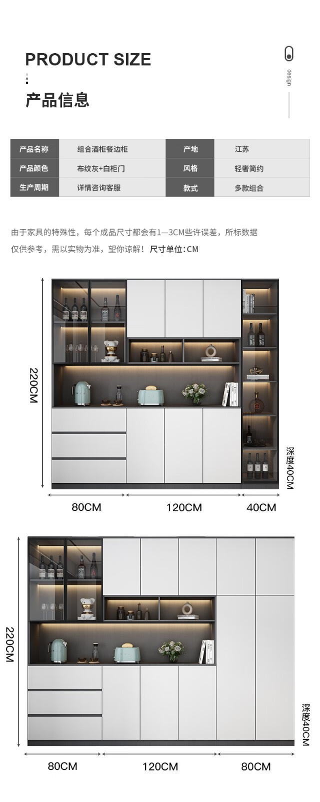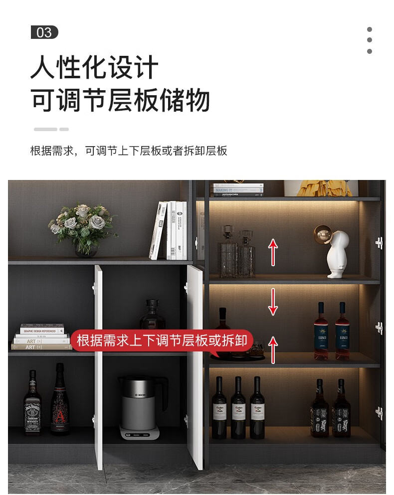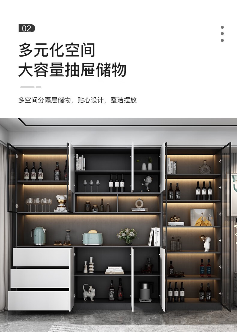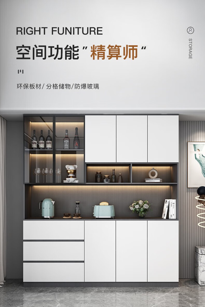 Muxituo Sideboard Light Luxury Modern Simple Living Room Storage Cabinet Cupboard Kitchen Storage Cabinet Wine Cabinet Home Tea Cabinet Style 7 200*40*220 Comes with Sensor Light