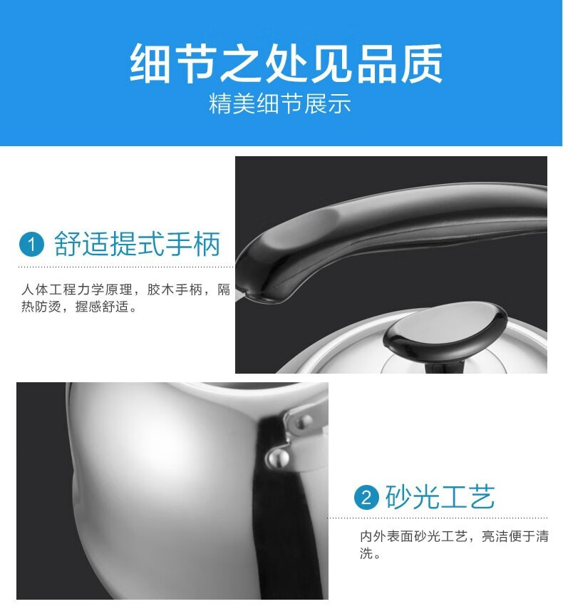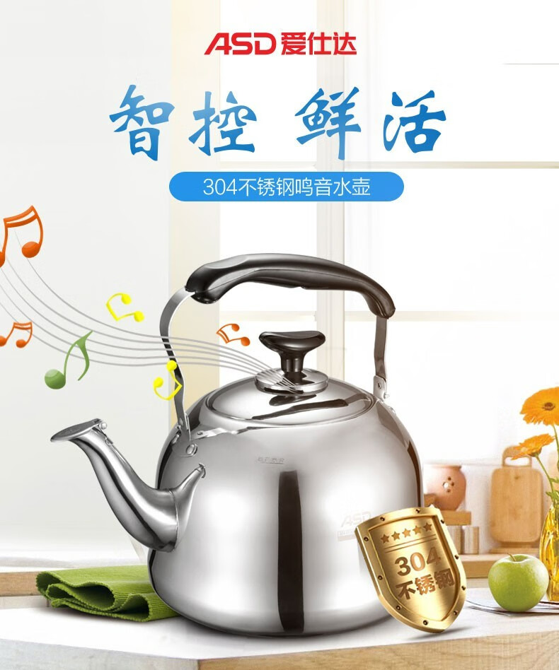 ASD kettle 304 stainless steel fashionable sound kettle gas gas induction cooker universal kettle thickened kettle 6L upgraded thickened 304 stainless steel sound kettle