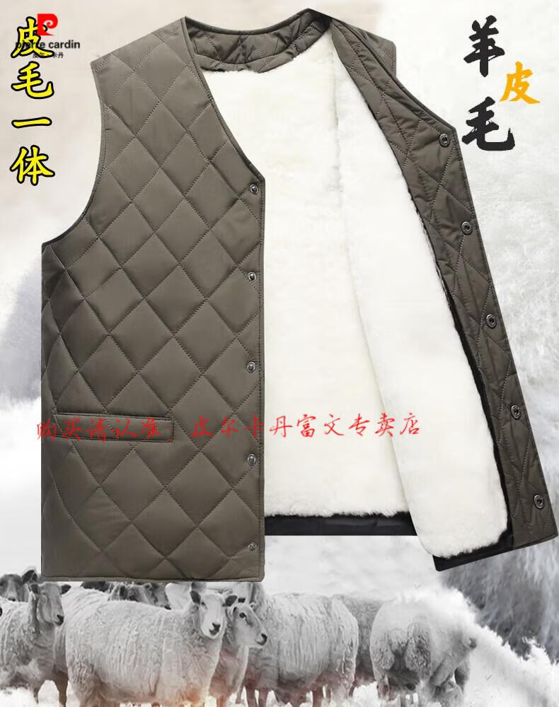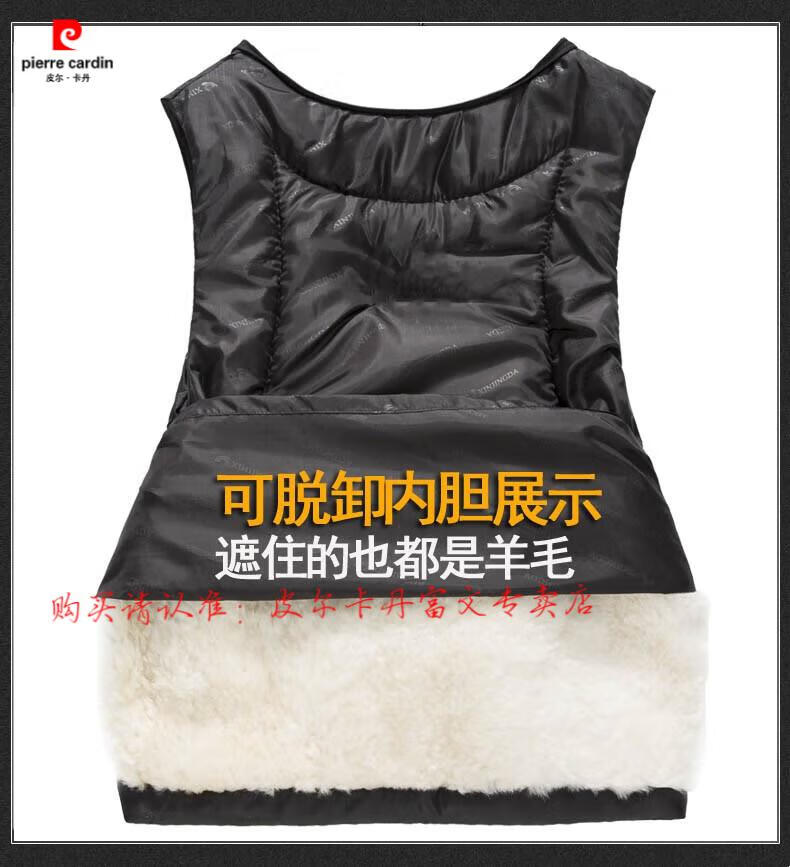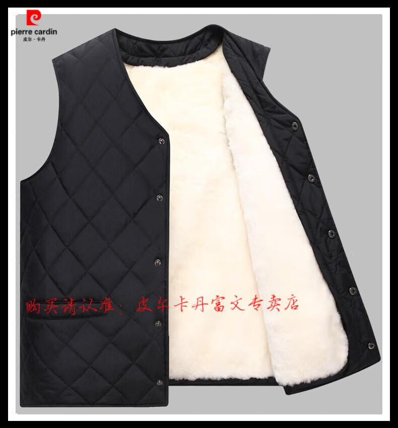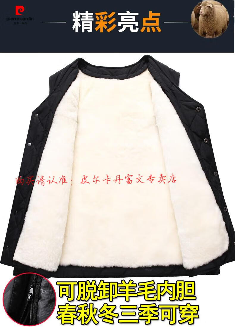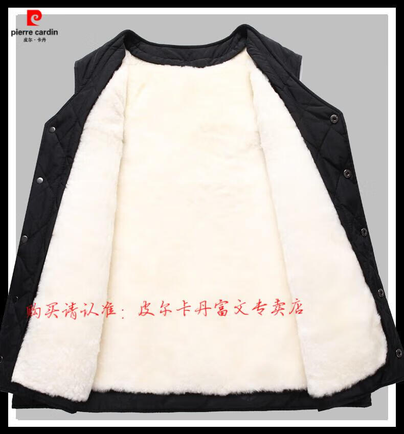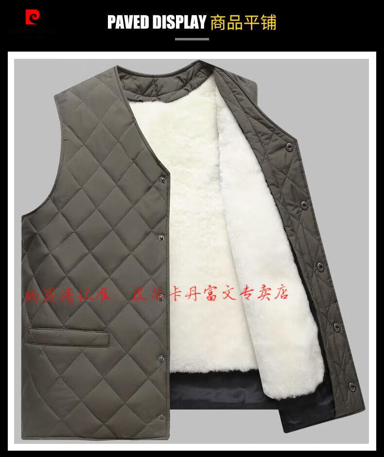 皮尔卡丹高档品牌男装秋冬季皮毛一体羊毛马甲男爸爸加厚真皮保暖棉背心 卡其色 XL