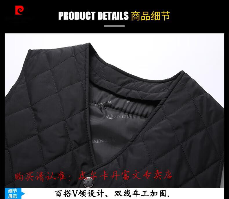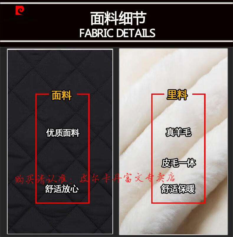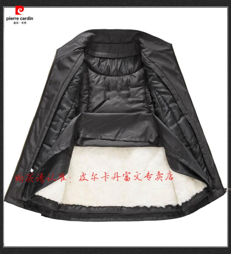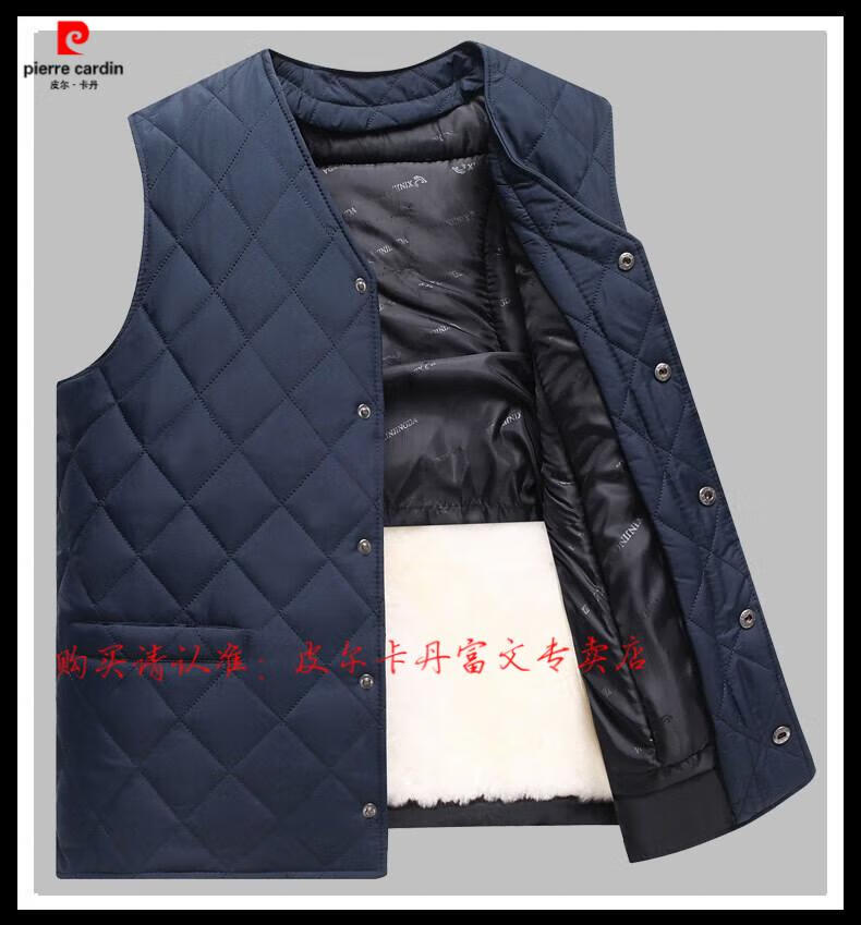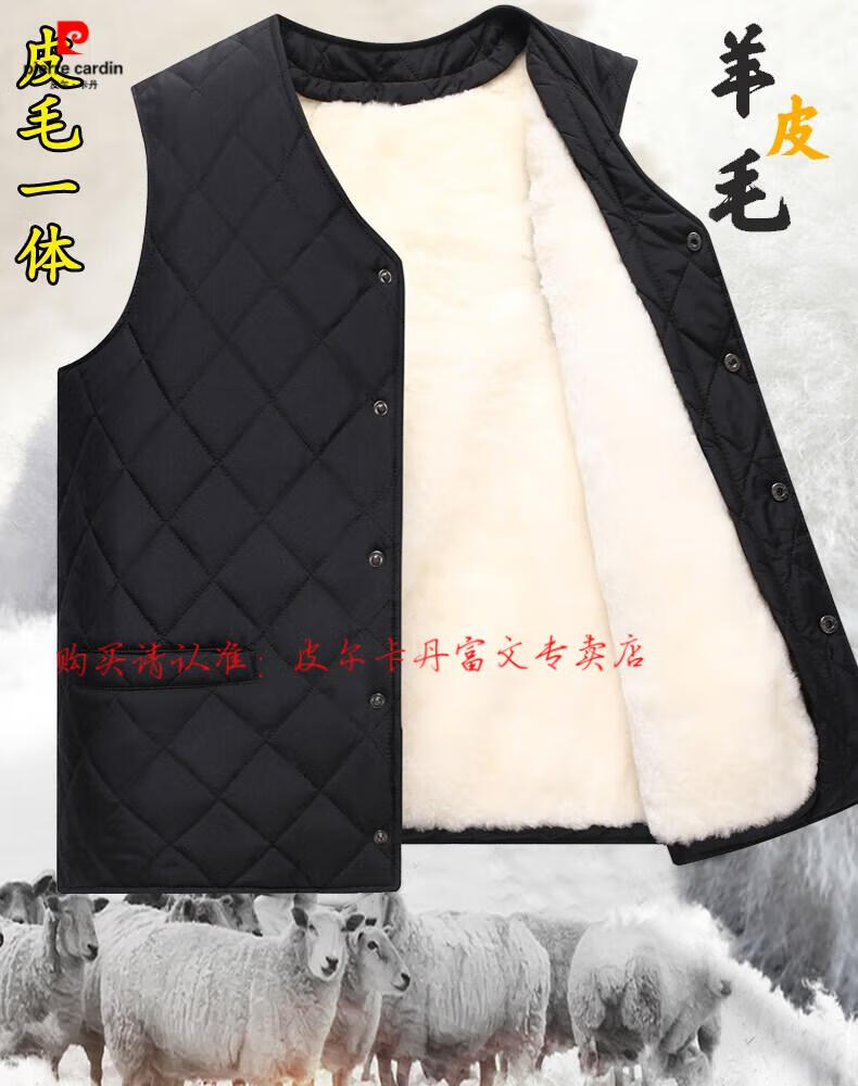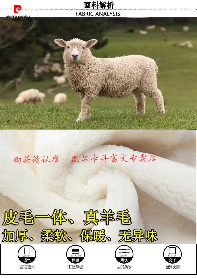 皮尔卡丹高档品牌男装秋冬季皮毛一体羊毛马甲男爸爸加厚真皮保暖棉背心 卡其色 XL