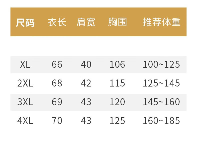 China (cm) 165 / 88-90 170 / 96-98 175 / 108-110 180 / 118-122 185 / 126-130