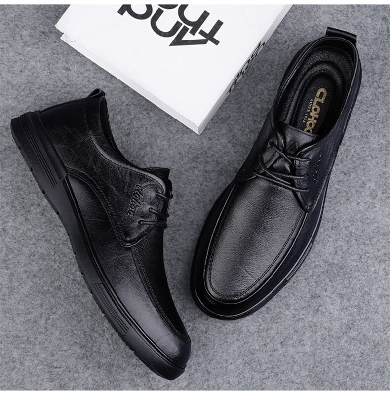 CLOHOO business casual leather shoes for men in spring and autumn, comfortable and trendy formal shoes, versatile, breathable, work and driving soft-soled shoes, black, leather shoe size 40