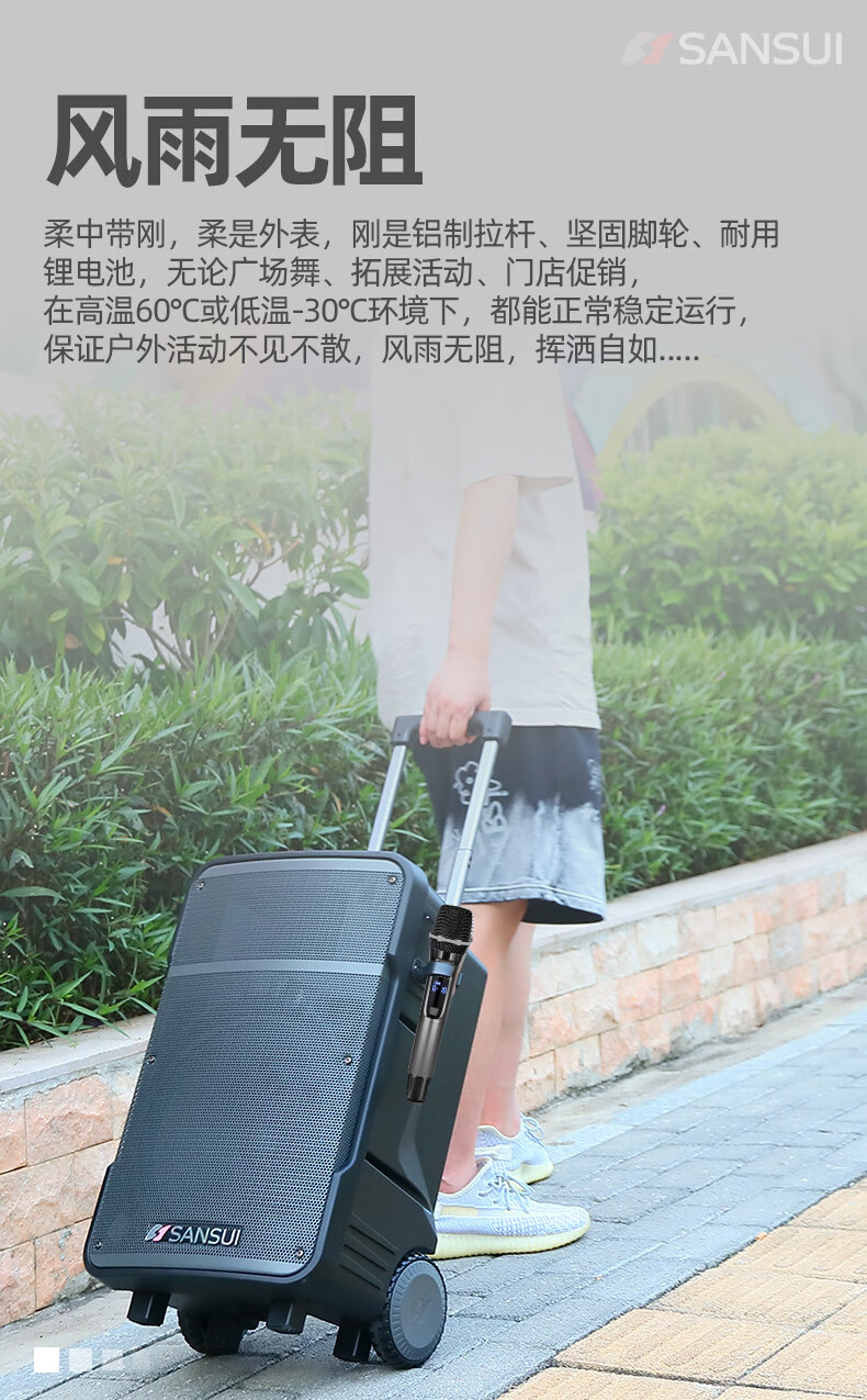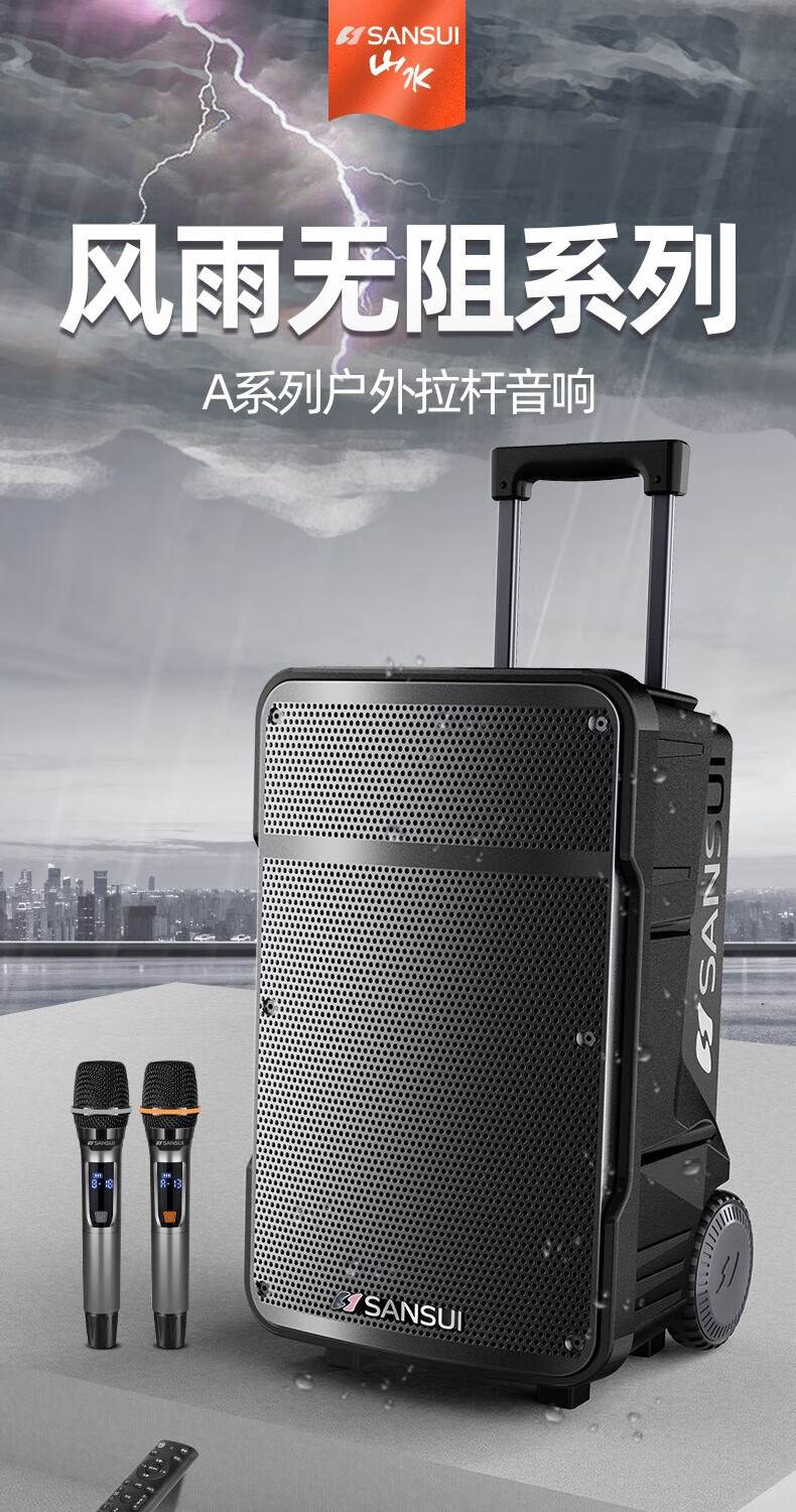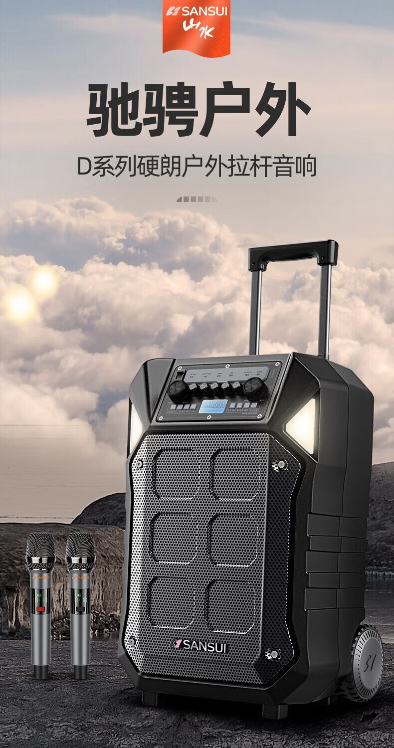 SANSUI A12-inch outdoor 12-inch mobile karaoke high-power singing square dance trolley speaker Bluetooth outdoor performance heavy bass all-in-one machine high-volume training shop audio SANSUI D15+ dual microphones