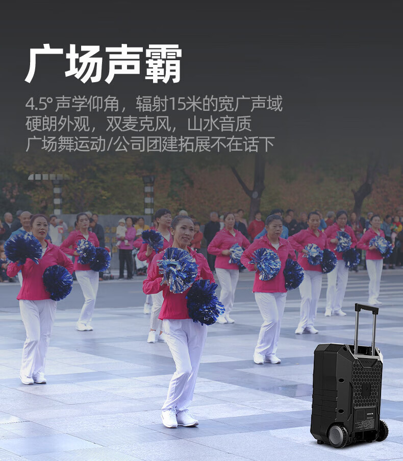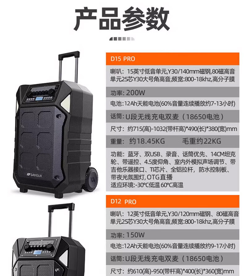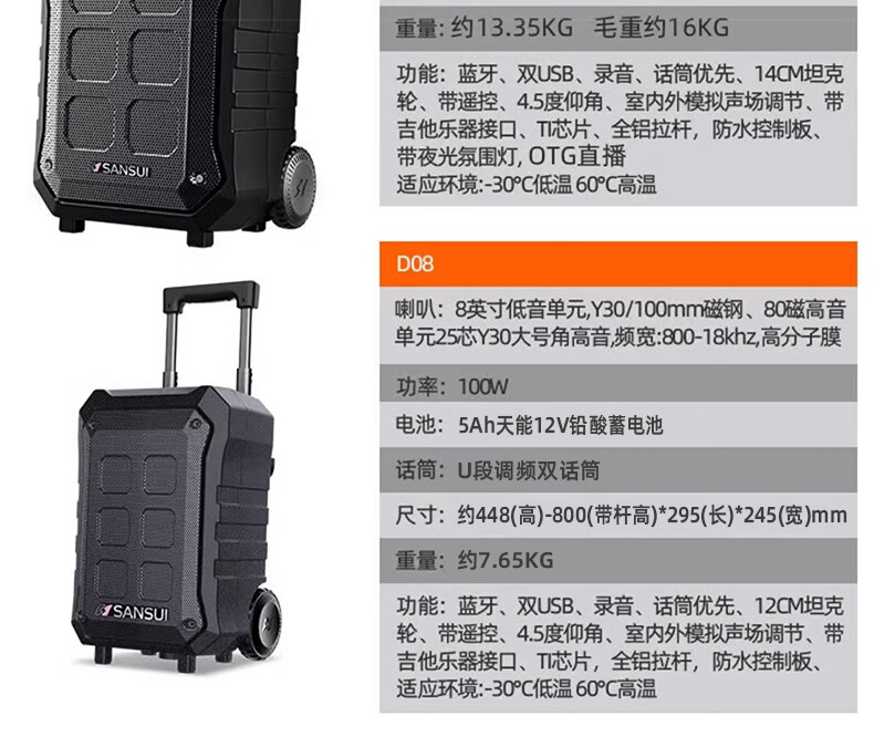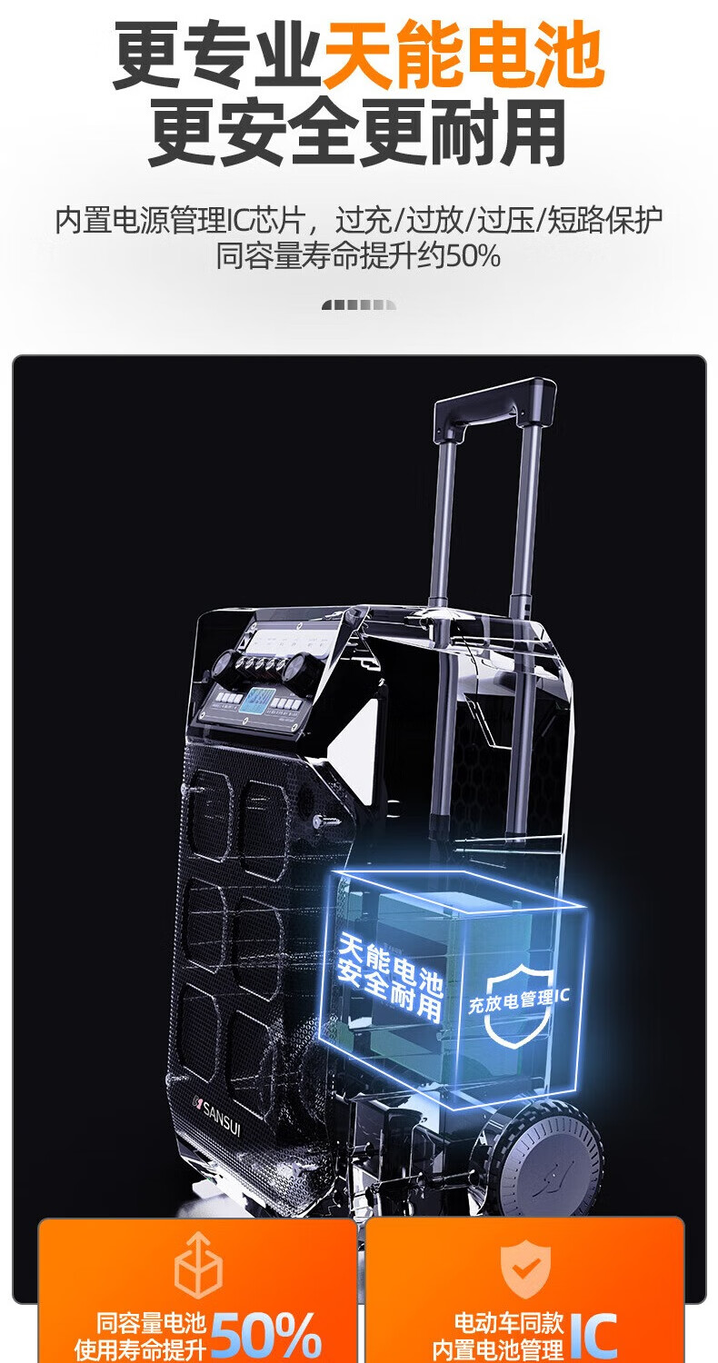 SANSUI A12-inch outdoor 12-inch mobile karaoke high-power singing square dance trolley speaker Bluetooth outdoor performance heavy bass all-in-one machine high-volume training shop audio SANSUI D15+ dual microphones