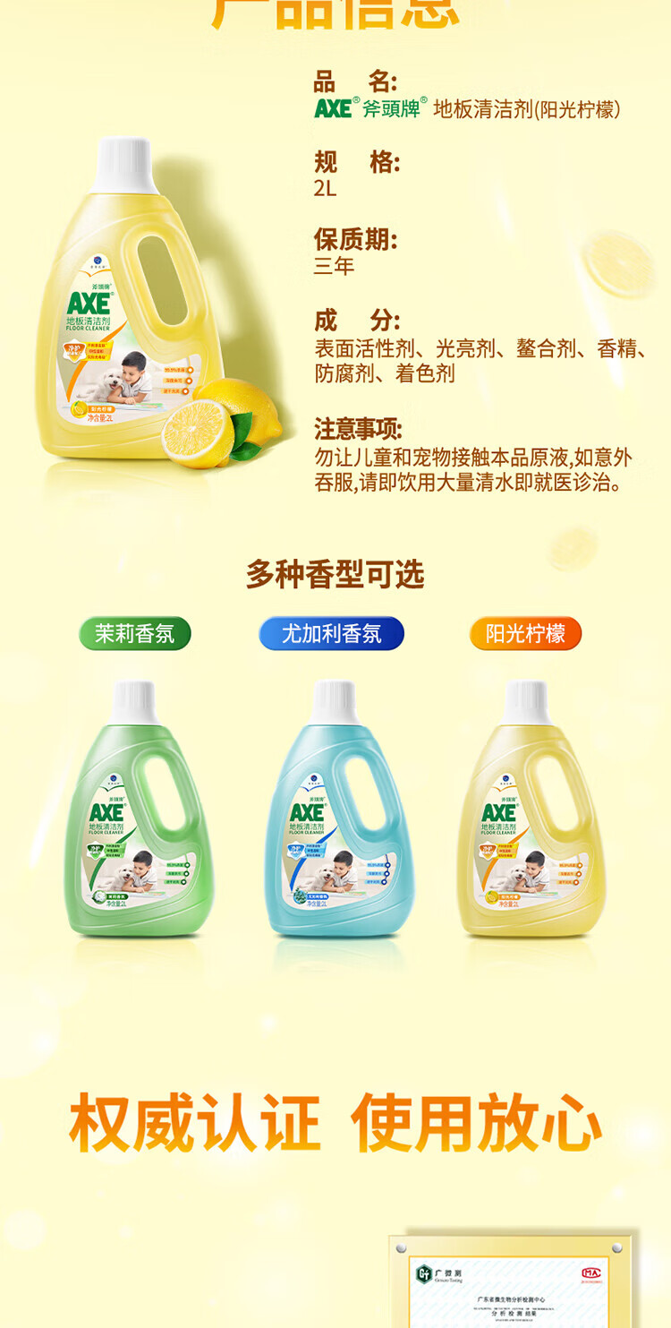 AX floor cleaner, antibacterial floor water, tiles, wooden boards, marble general decontamination floor cleaning liquid, mopping liquid, jasmine fragrance 2L