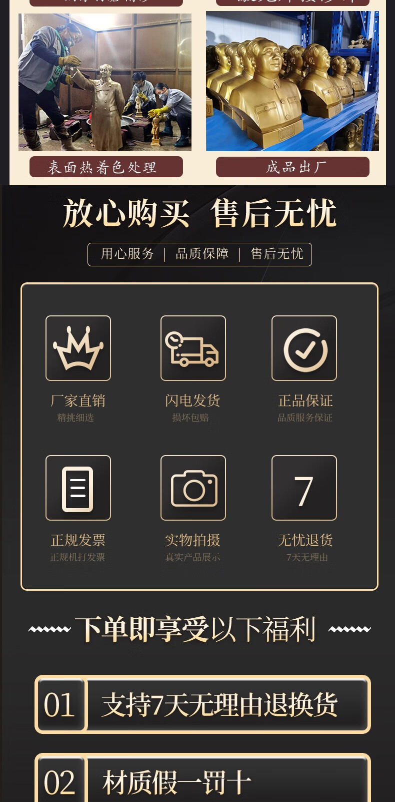 Shaoxingwang Chairman Mao bronze statue ornaments windbreaker pure copper leader living room statue sculpture office home decoration brass 35.8 cm windbreaker