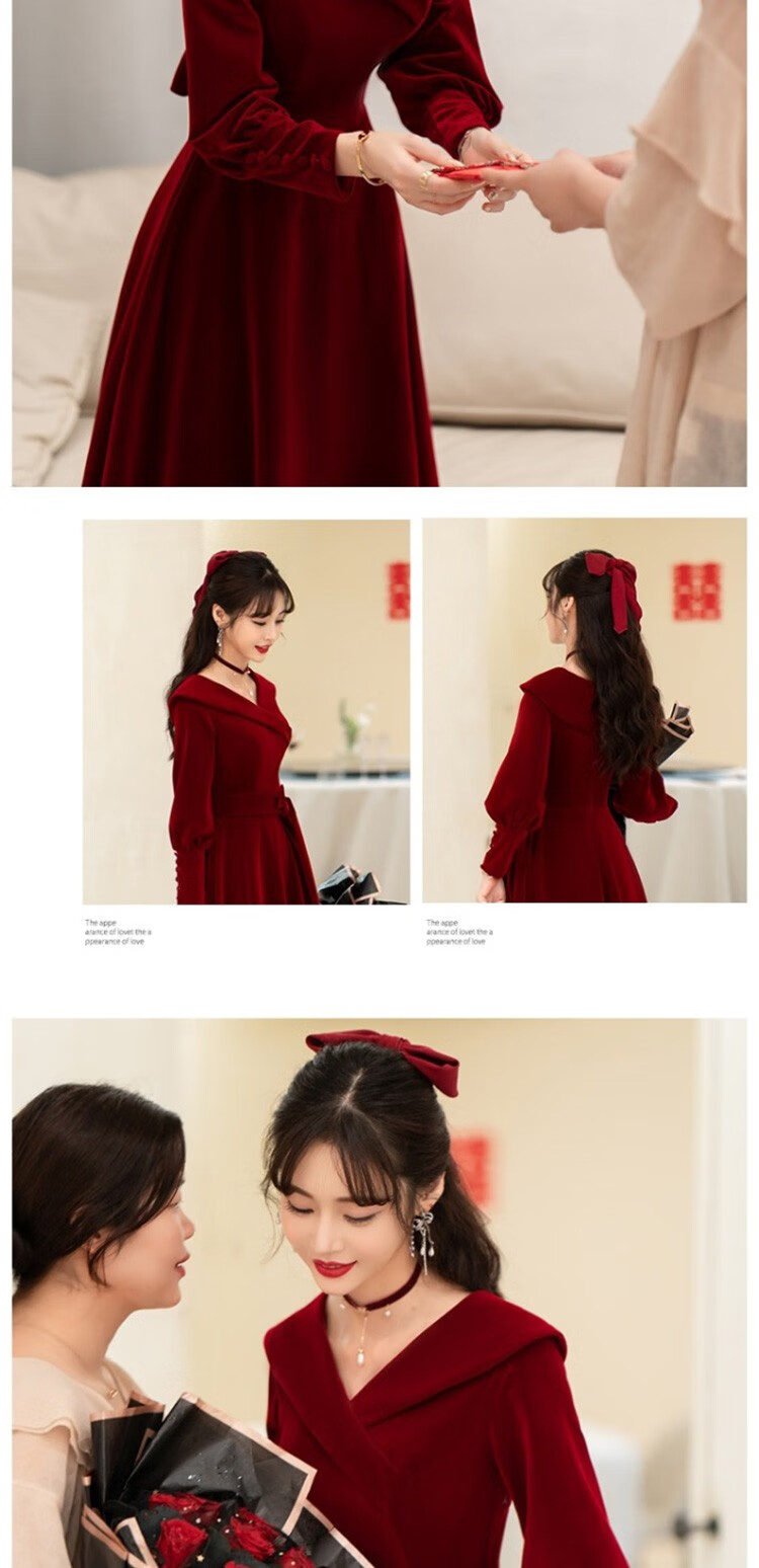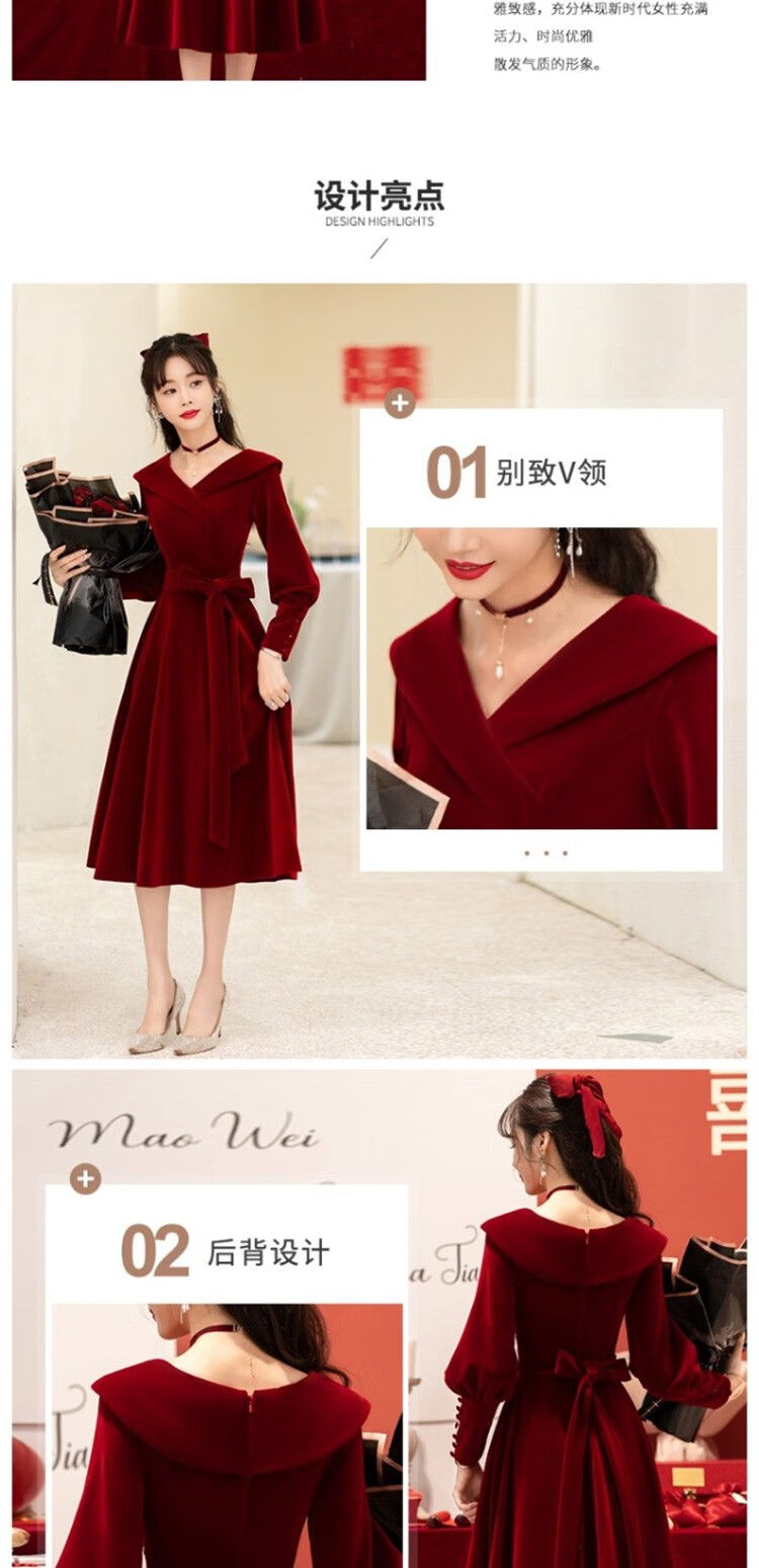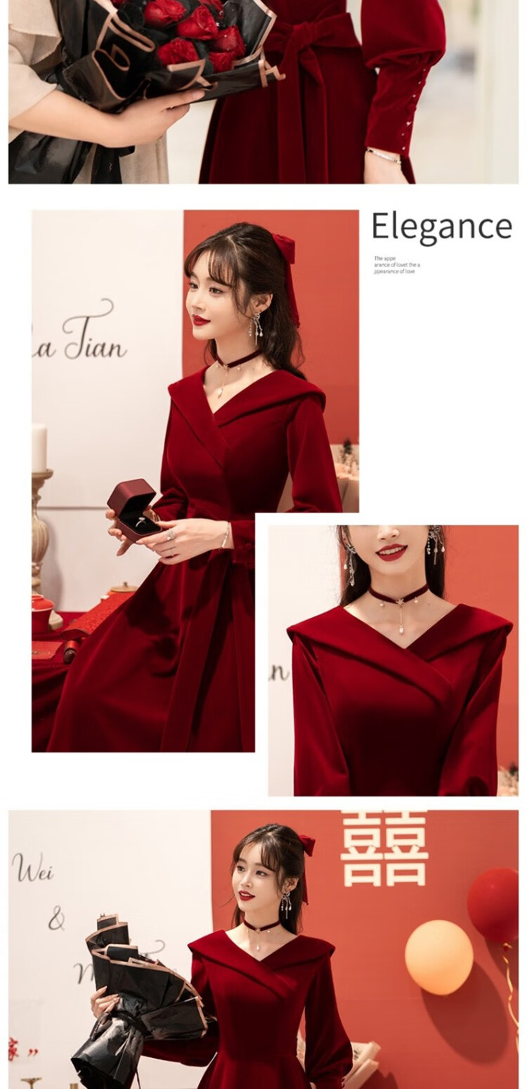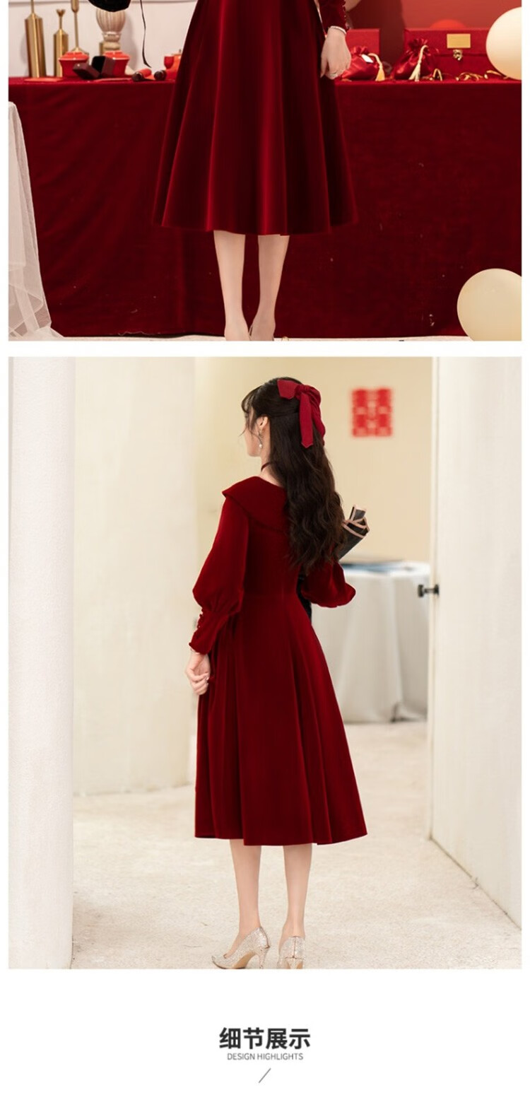 Seidler Toast Wear Bridal 2025 New Burgundy Engagement Dress Out-of-Pavilion Dress Back Home Winter Women Burgundy M