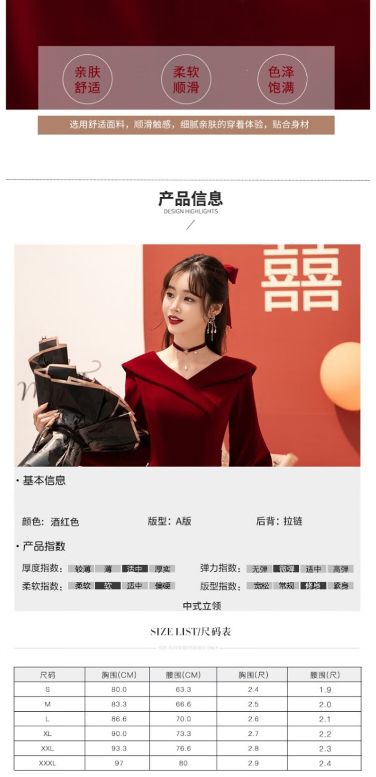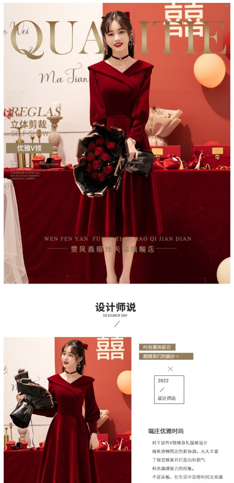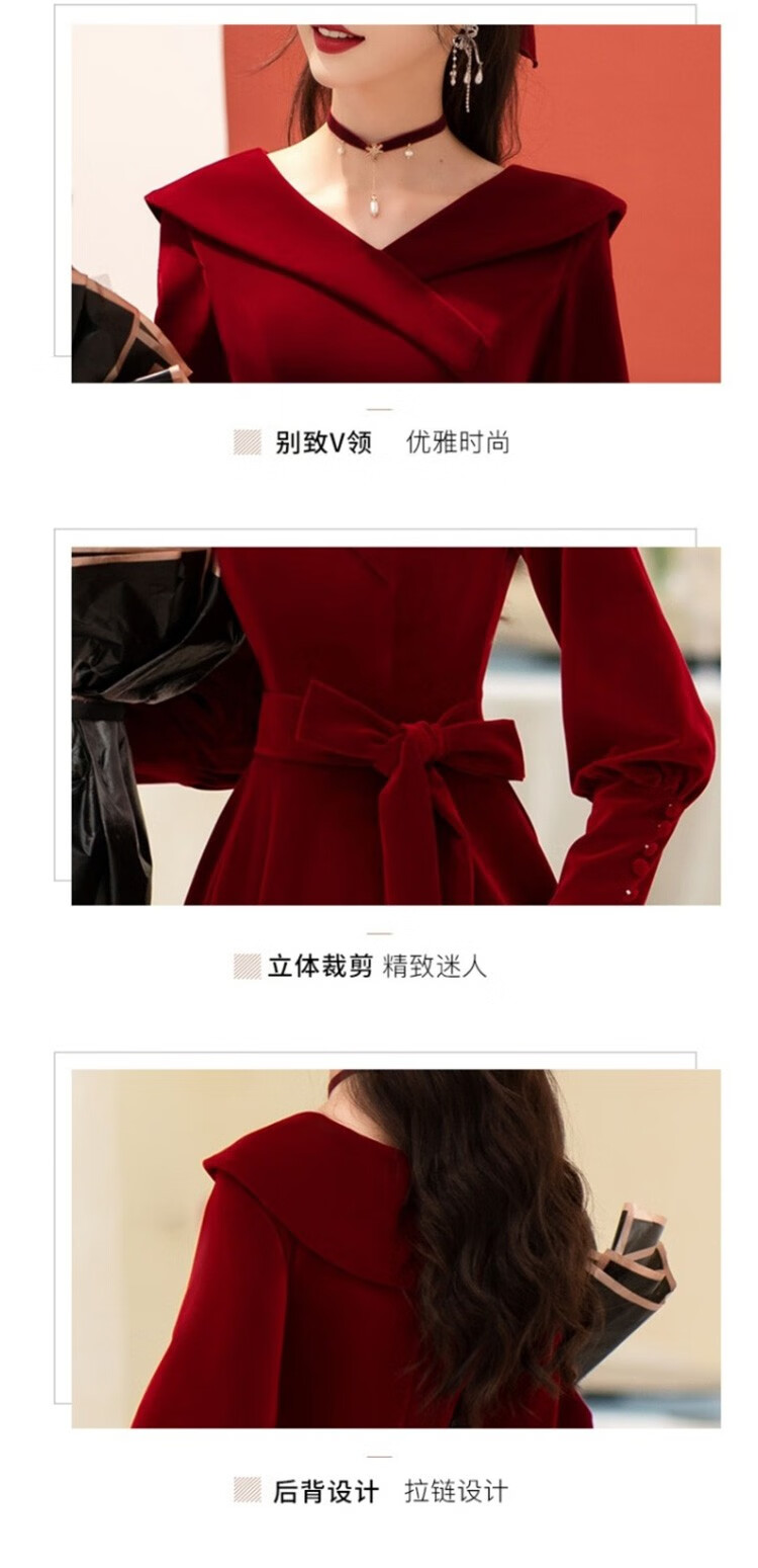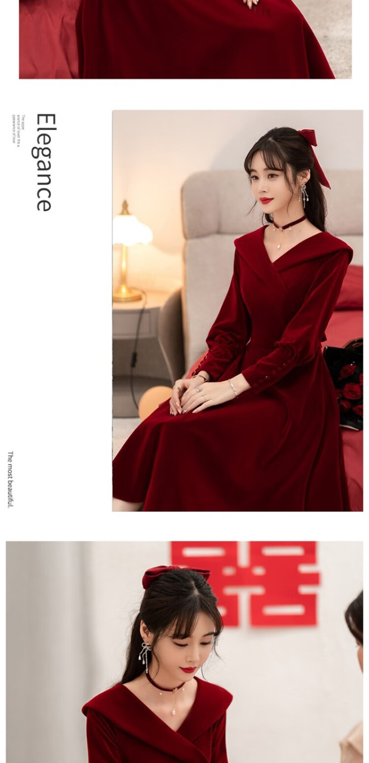 Seidler Toast Wear Bridal 2025 New Burgundy Engagement Dress Out-of-Pavilion Dress Back Home Winter Women Burgundy M