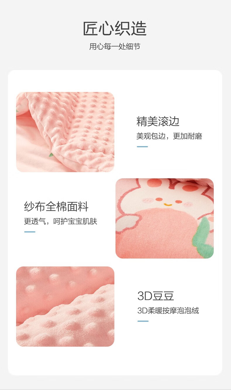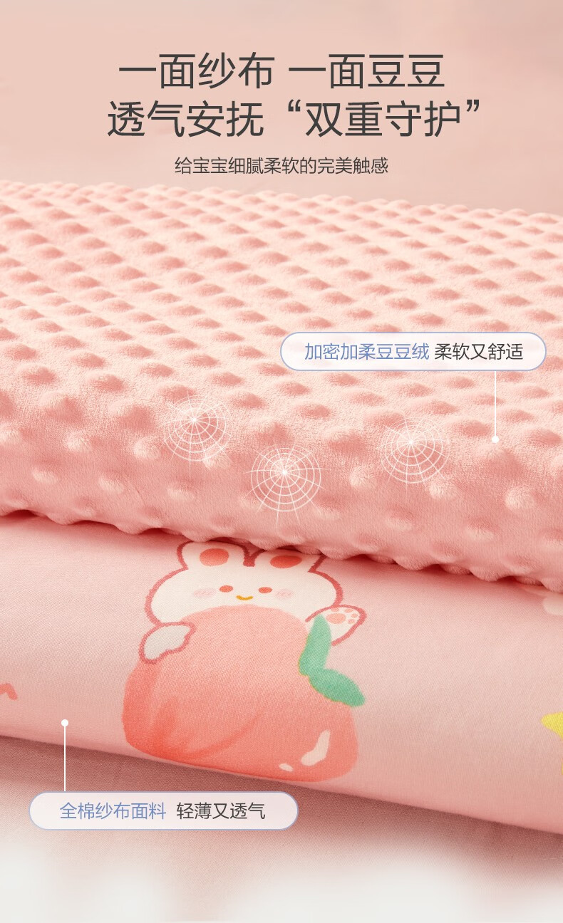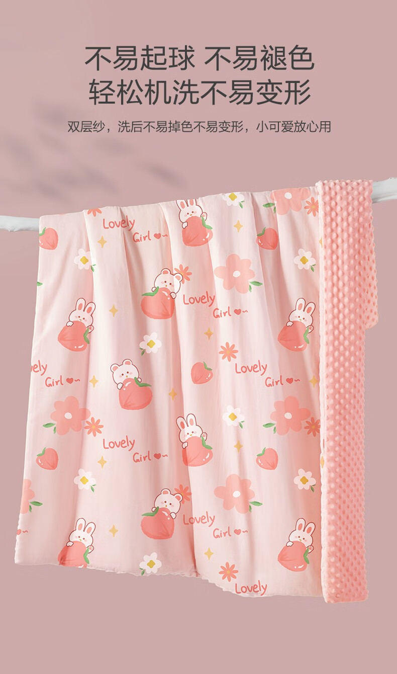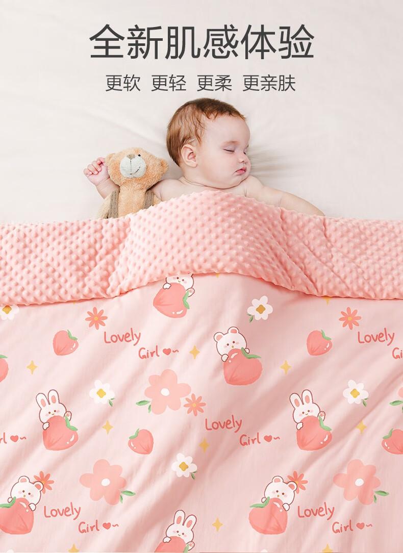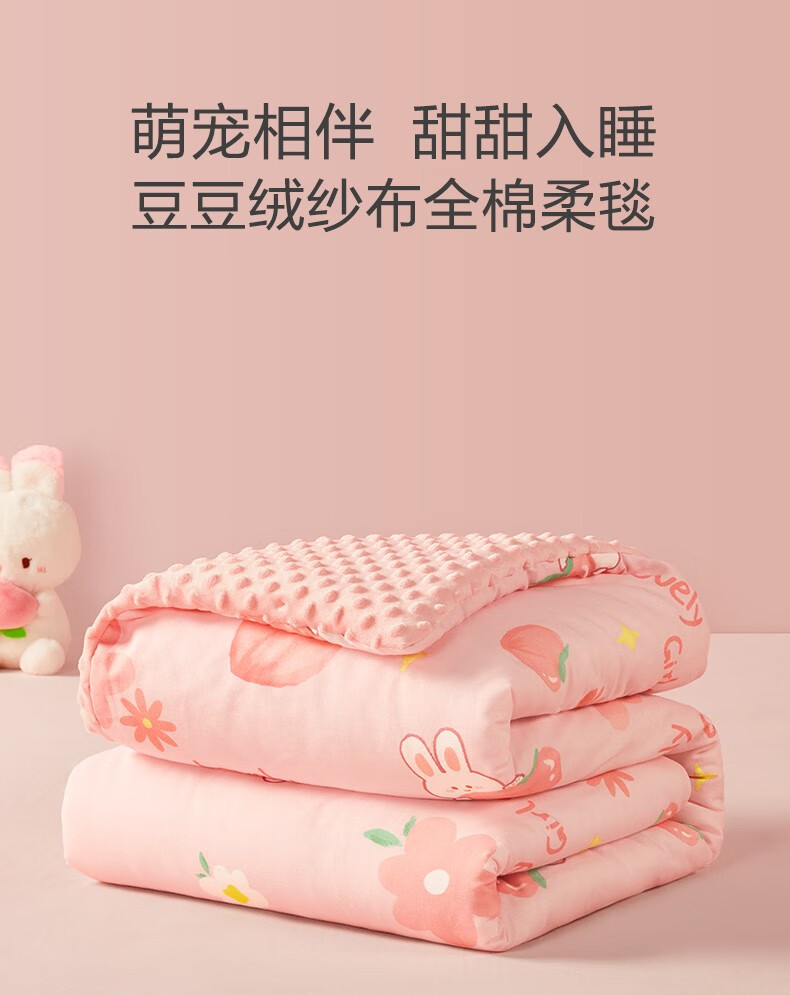 Boyang Baby (Beyond Kids) baby beanie velvet cotton gauze baby blanket bedding newborn small quilt kindergarten beanie velvet gauze blanket thick quilted pink rabbit peach 110*140cm