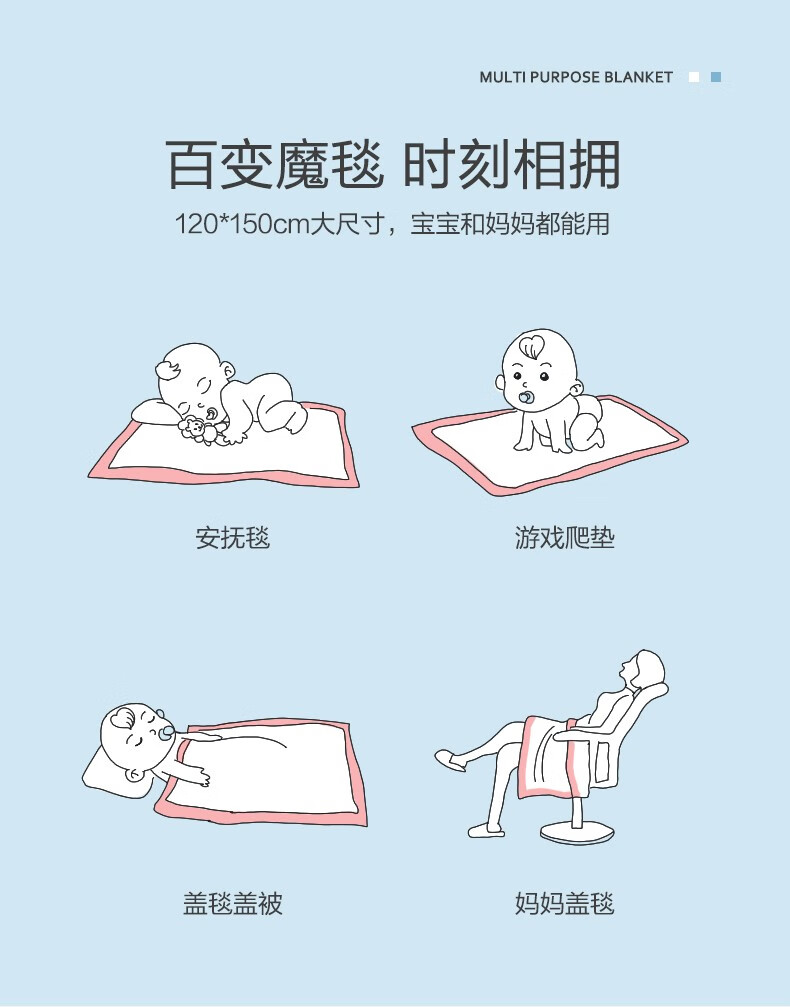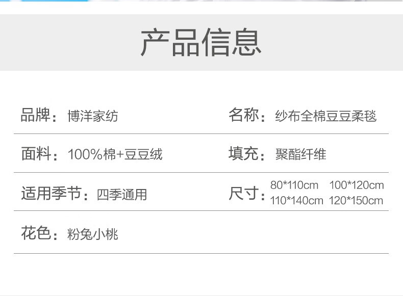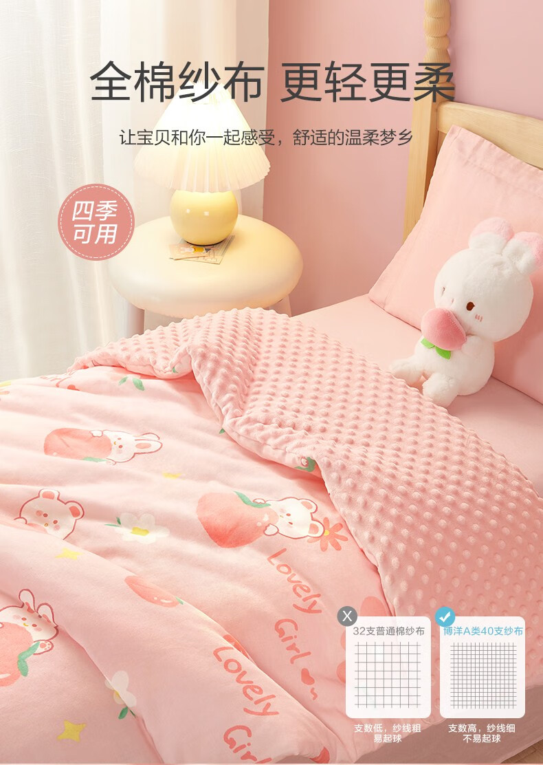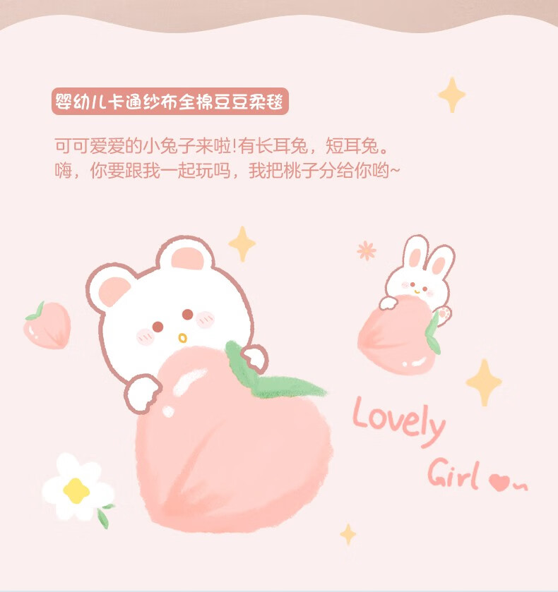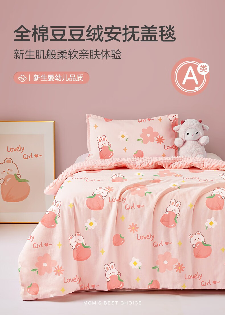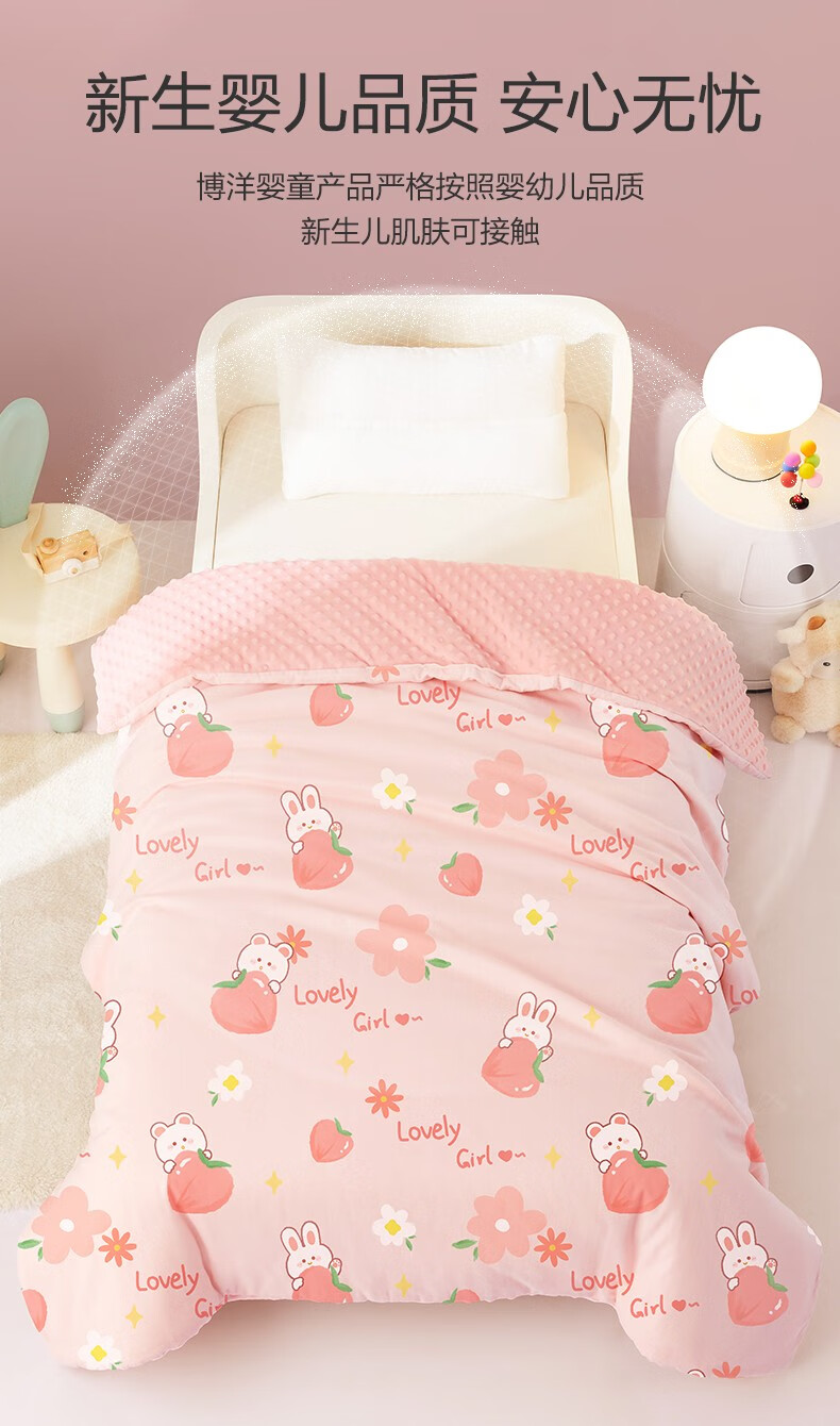 Boyang Baby (Beyond Kids) baby beanie velvet cotton gauze baby blanket bedding newborn small quilt kindergarten beanie velvet gauze blanket thick quilted pink rabbit peach 110*140cm
