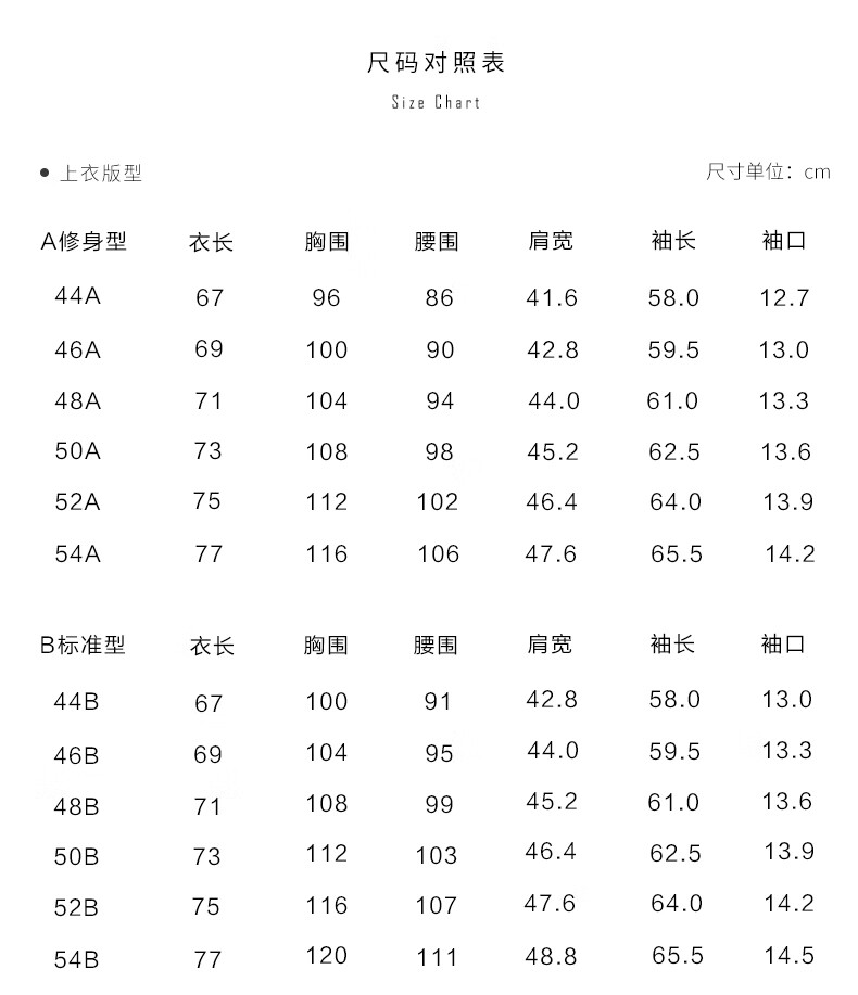 China (cm) 160-165/84-86 165-170 / 88-90 167-172 / 92-96 168-173 / 98-102 170-176 / 106-110
