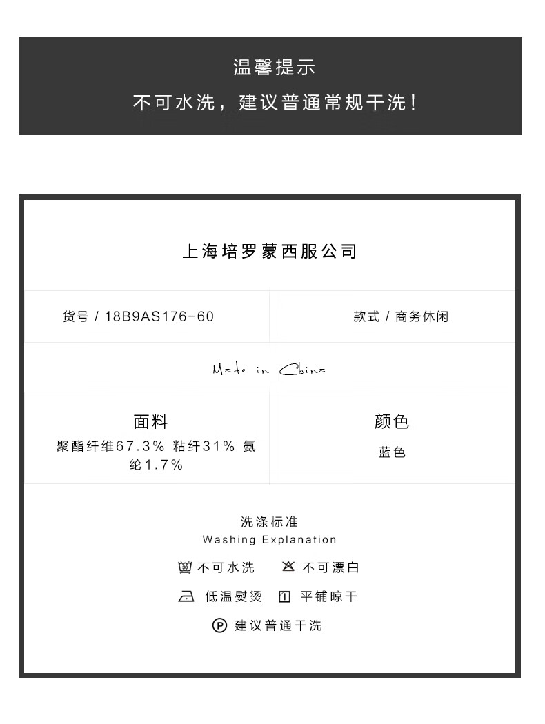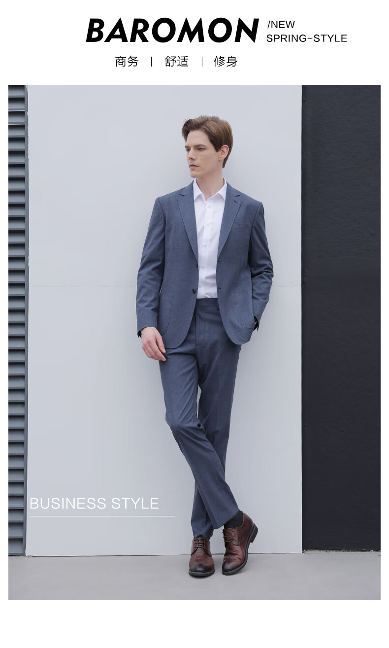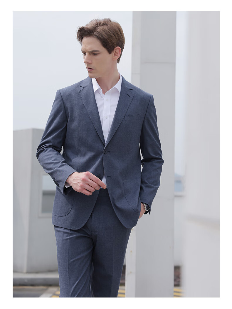 BAROMON micro-elastic-anti-wrinkle suit for men and gentlemen, light business formal attire, professional attire, men's suit, blue 180C - single top