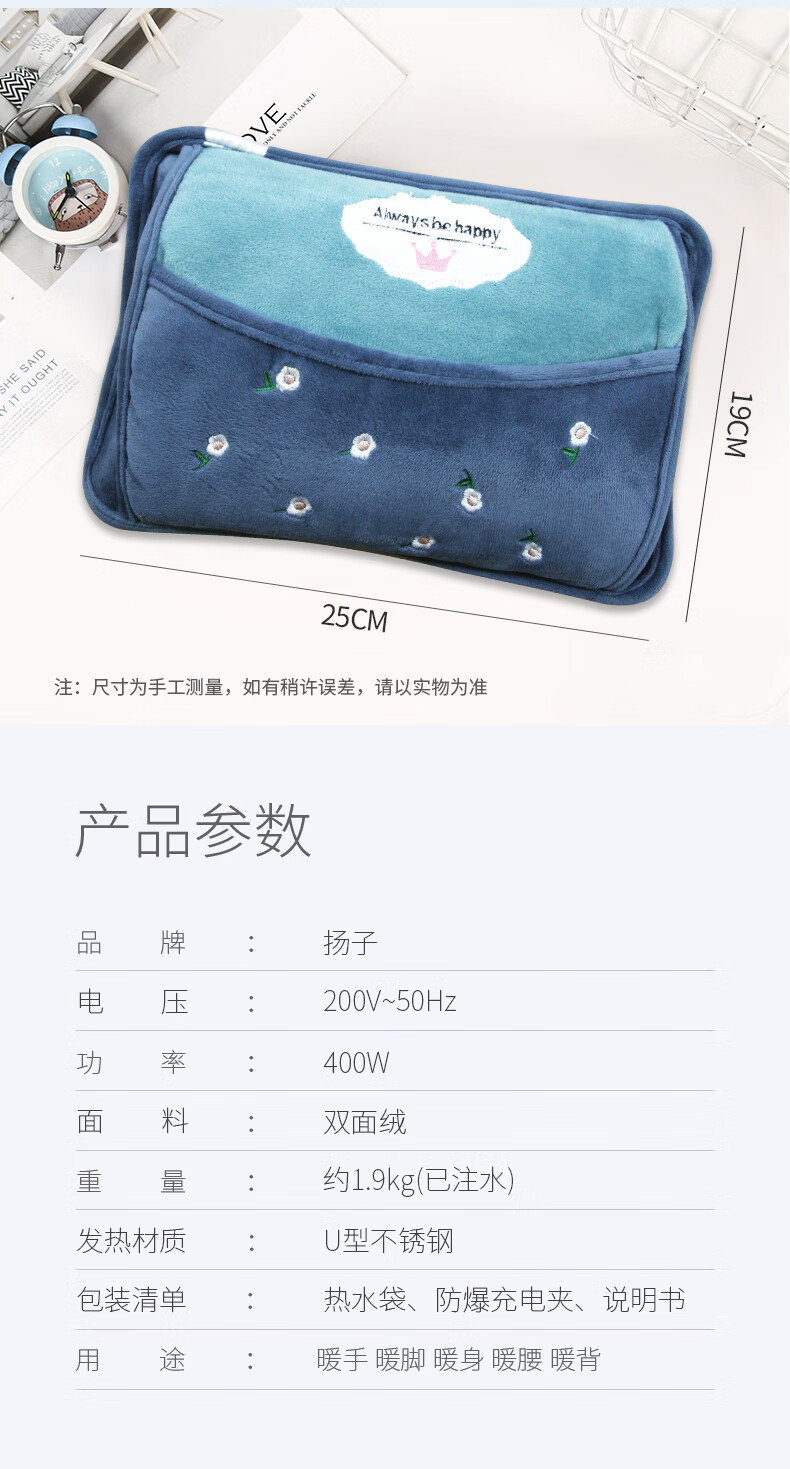 Yangzi hot water bottle rechargeable hand warmer for baby, female hand warmer explosion-proof electric warmer for stomach and quilt, mercerized hot water bottle, special for quilt