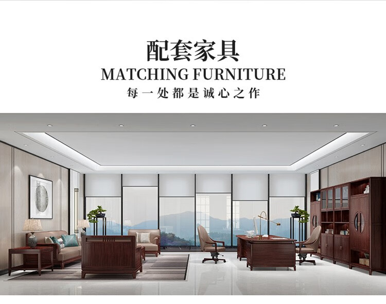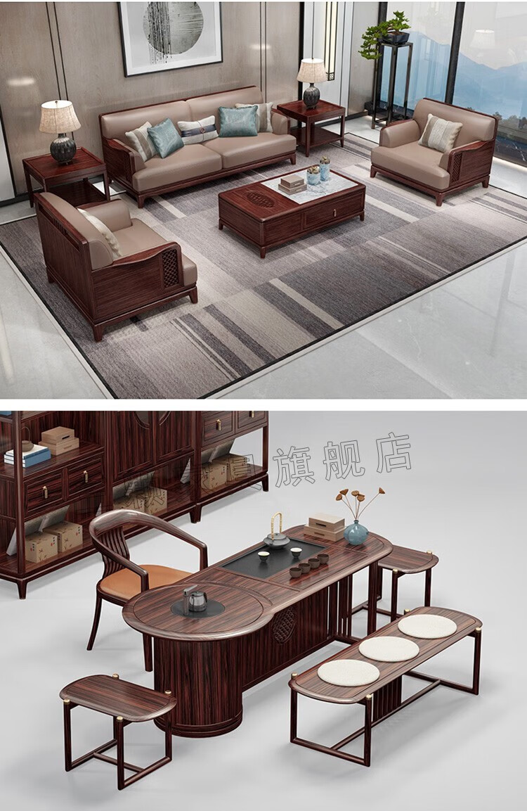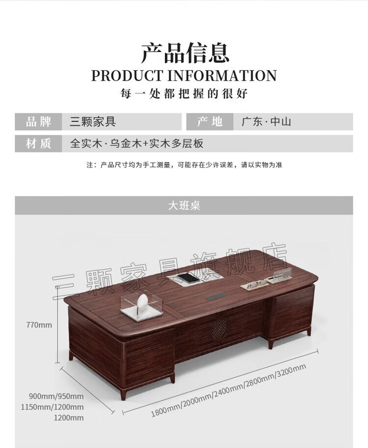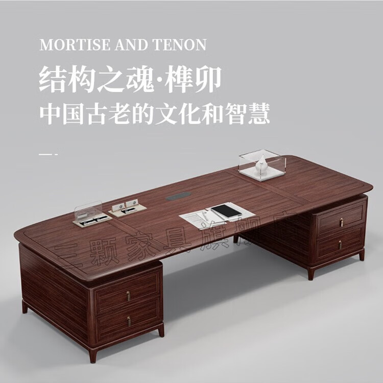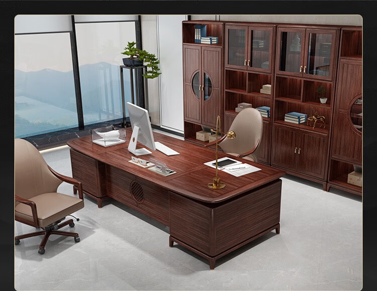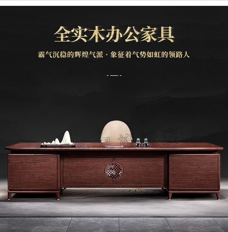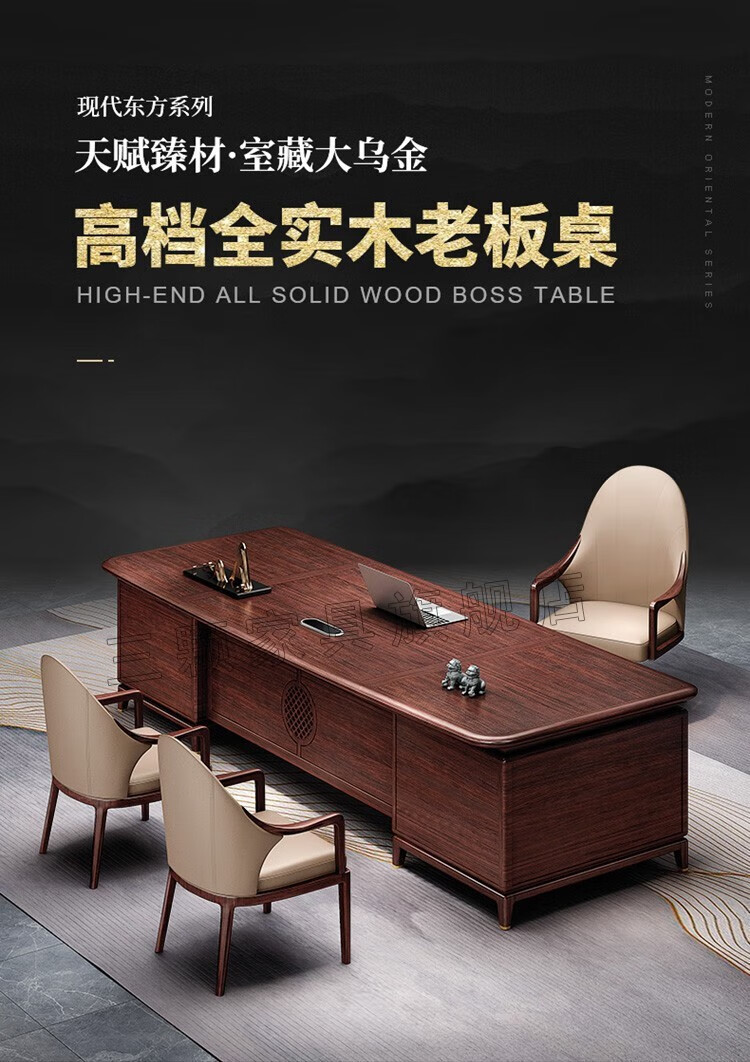 Three Furniture Black Gold Boss Desk President's Desk Executive Desk Solid Wood Office Desk and Chair Combination New Chinese Style Chairman's Desk 2.4 Meter Desk