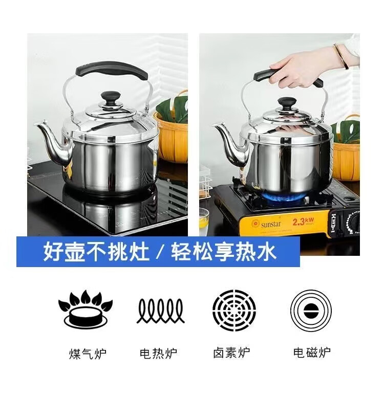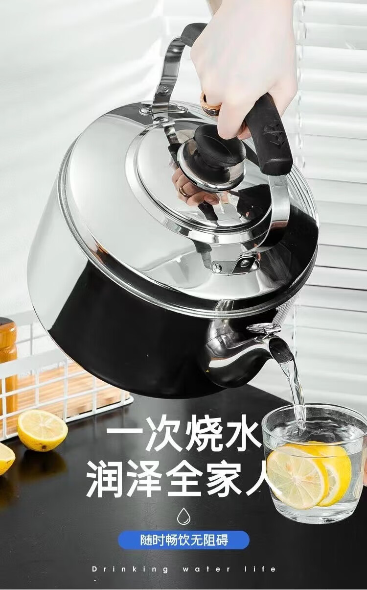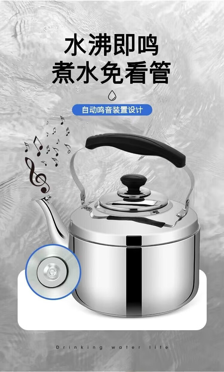 Chu'anbao stainless steel thickened whistle kettle large capacity whistle kettle induction cooker gas stove gas kitchen'anbao 304 material 4L approximately 6Jin Jin is equal to 0.5 kg of water