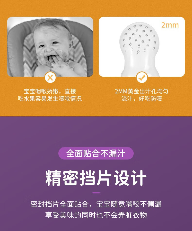 Gomez baby food fruit and vegetable bite bag silicone play baby fruit food supplement Morandi contrasting color push type + gift bite mesh bag + gift storage box
