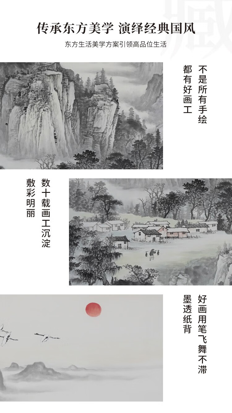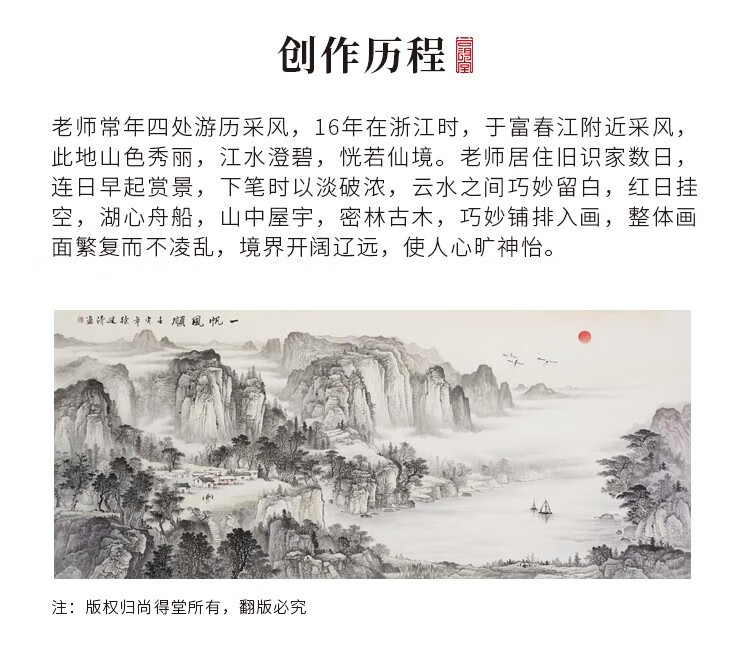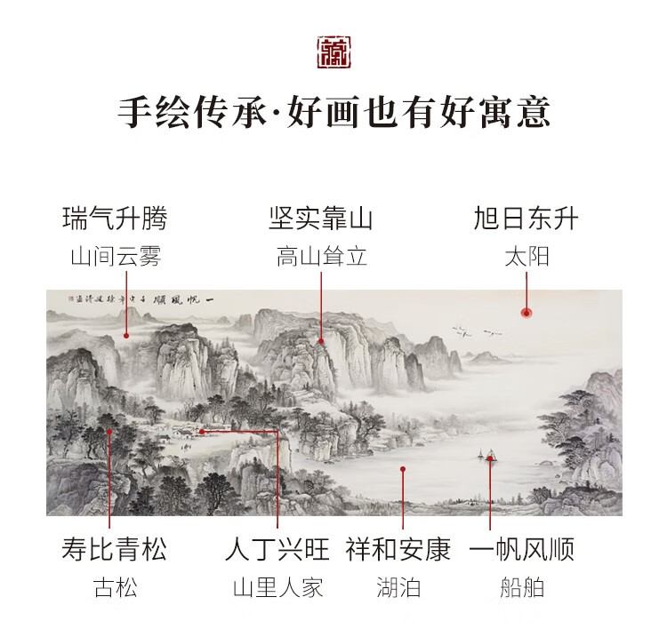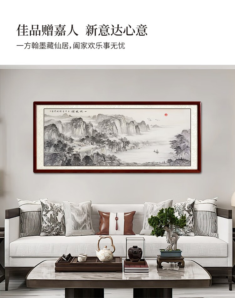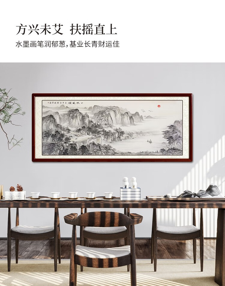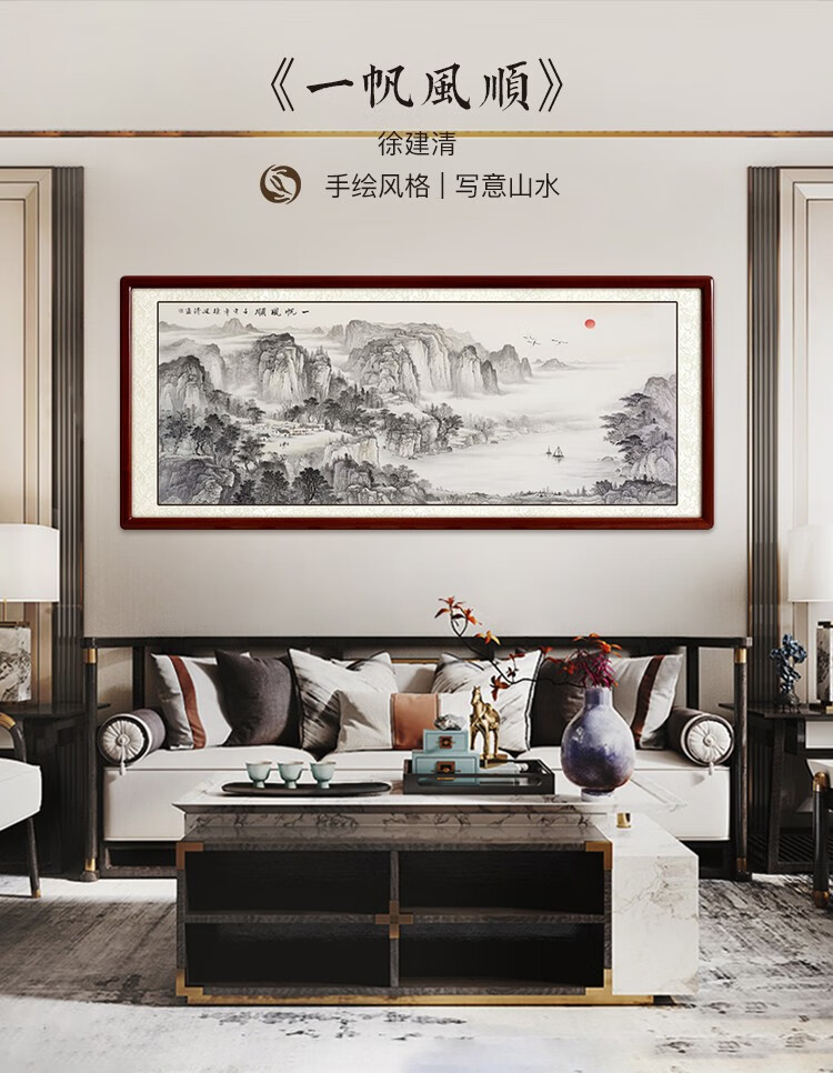 Shangdetang hand-painted Chinese painting landscape painting living room decoration painting office study hanging painting wall painting smooth sailing ink painting Sapele solid wood frame-rounded brown framed 218*88cm
