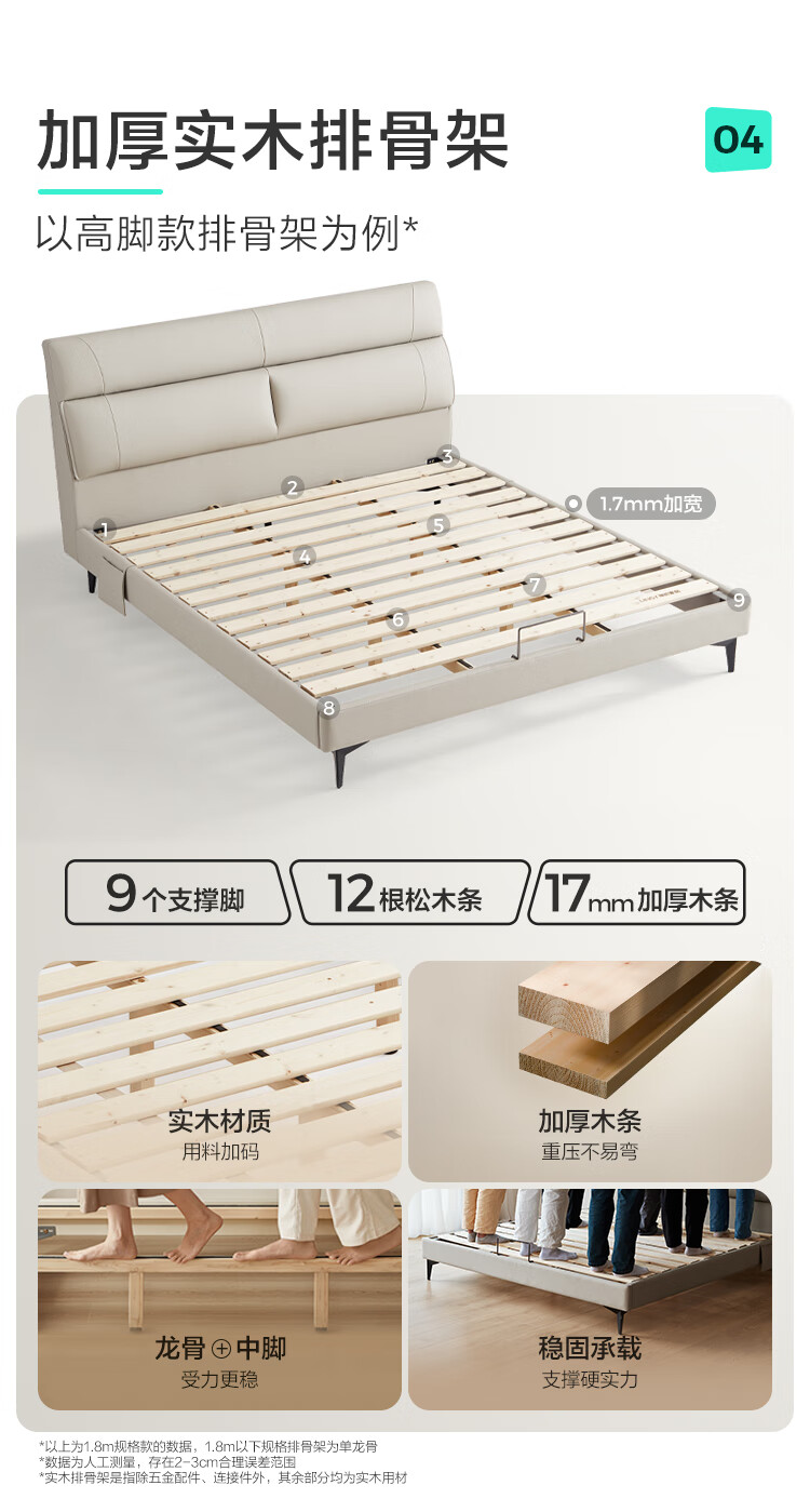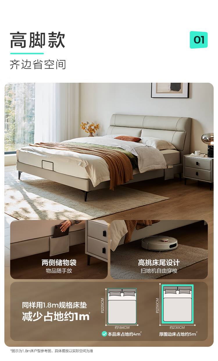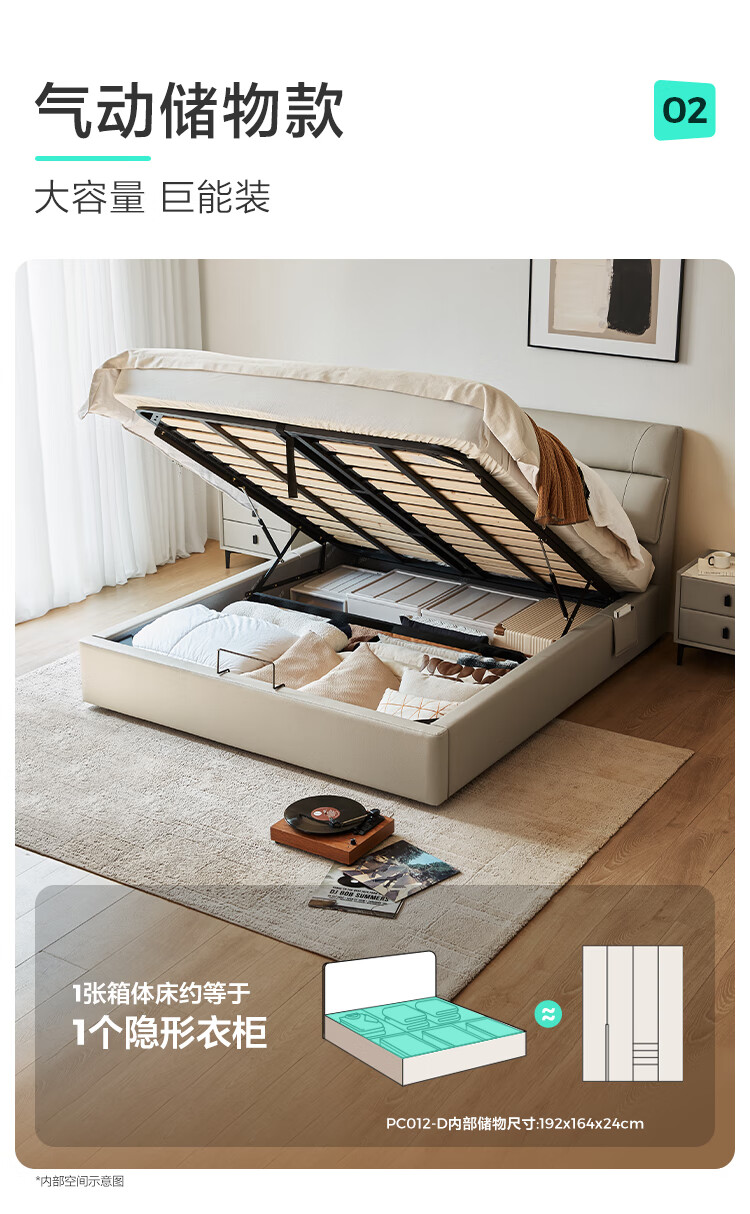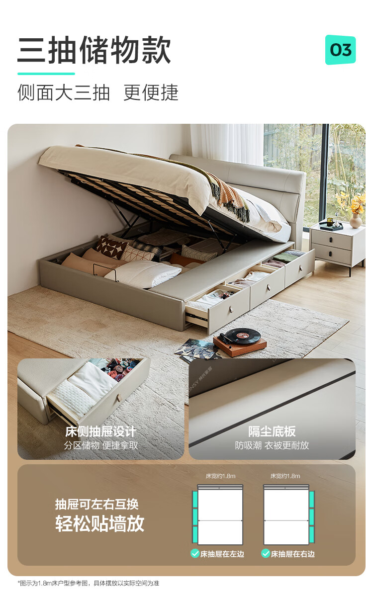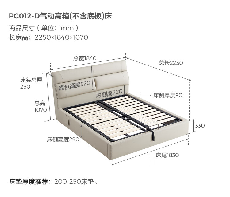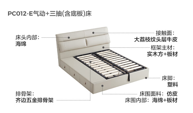 Lin's Home Leather Bed Master Bedroom King Bed Double Bed 1.5m 1.8m High Box Storage Bed Modern Style Simple PC012 Smoke Gray High Bed Optional Spine Protector Mat 1.8mx2m Single Bed