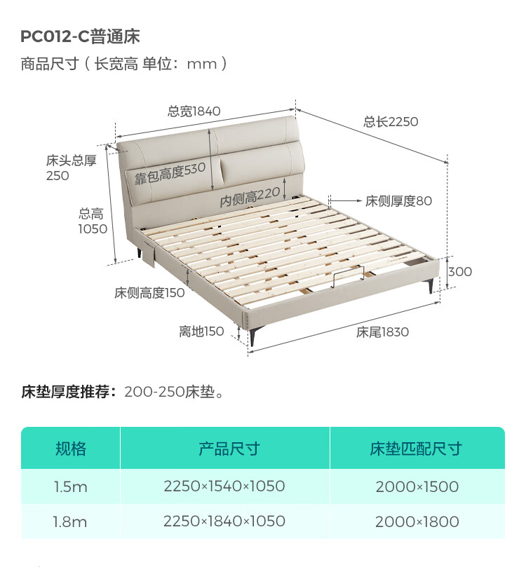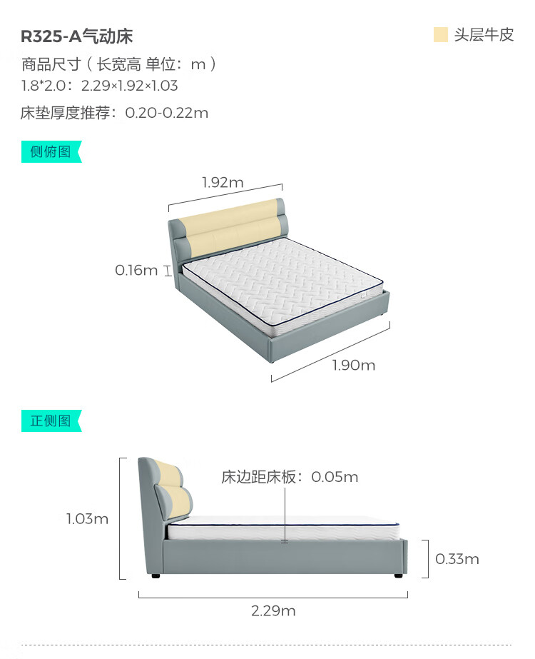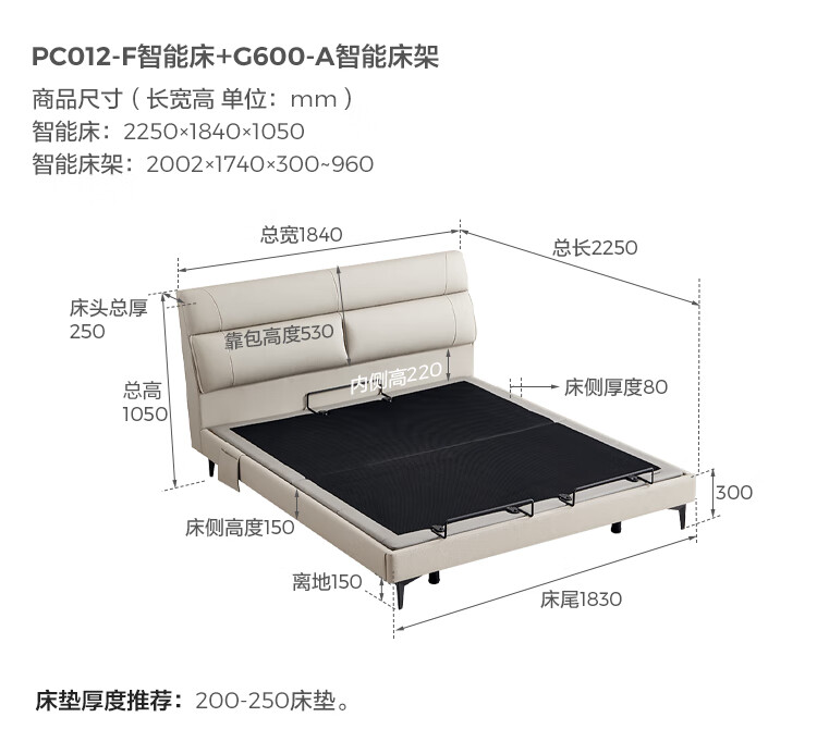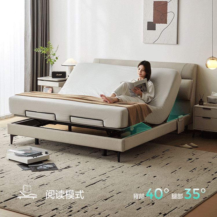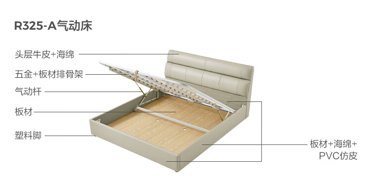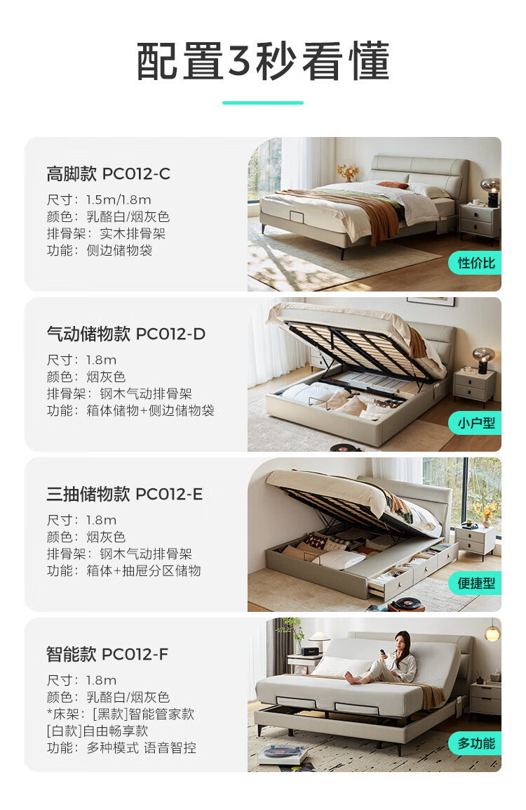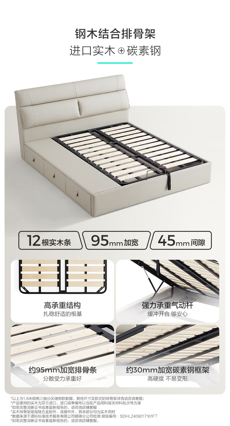 Lin's Home Leather Bed Master Bedroom King Bed Double Bed 1.5m 1.8m High Box Storage Bed Modern Style Simple PC012 Smoke Gray High Bed Optional Spine Protector Mat 1.8mx2m Single Bed