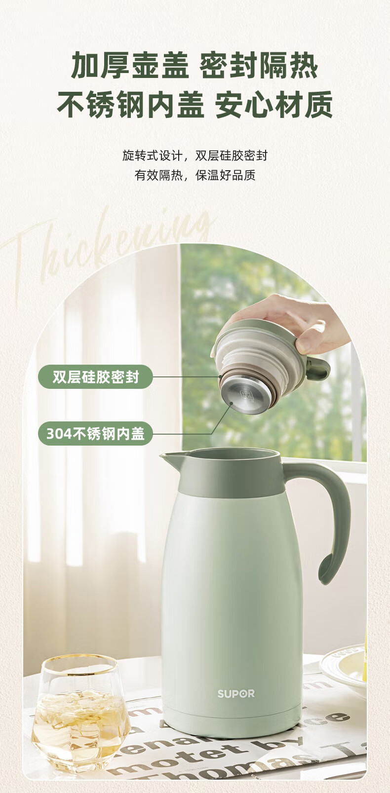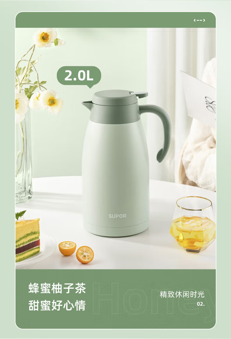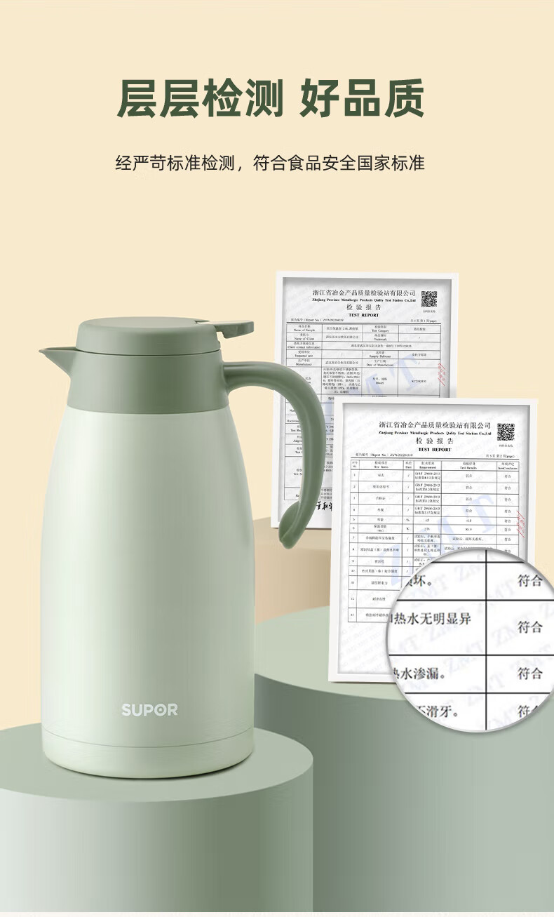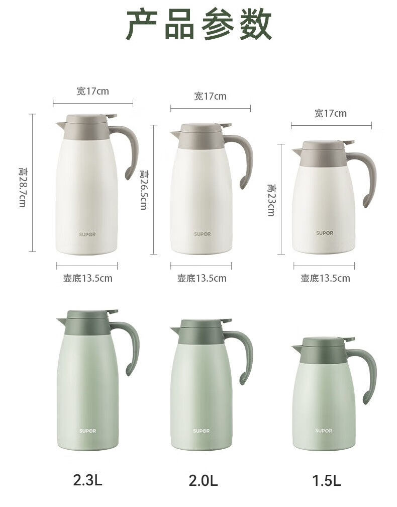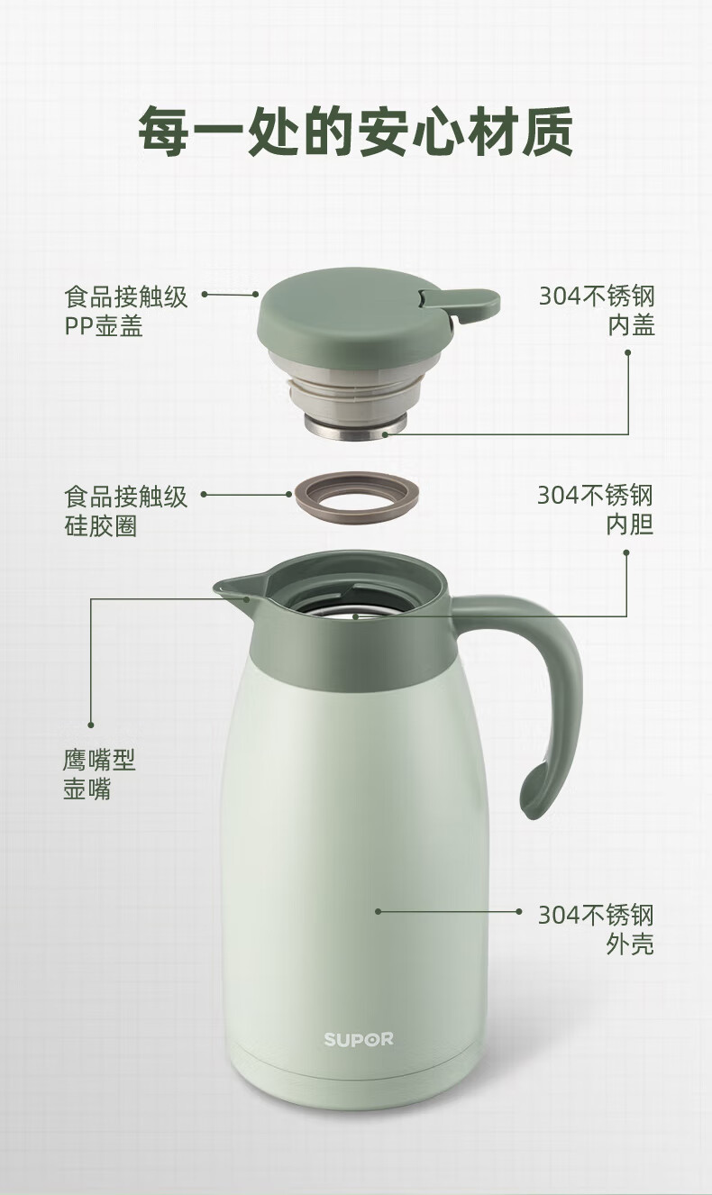 SUPOR thermos kettle household long-lasting thermal insulation large-capacity kettle stainless steel vacuum thermos flask hot water kettle thermos boiling water bottle 1.5L carmine red 1.5L
